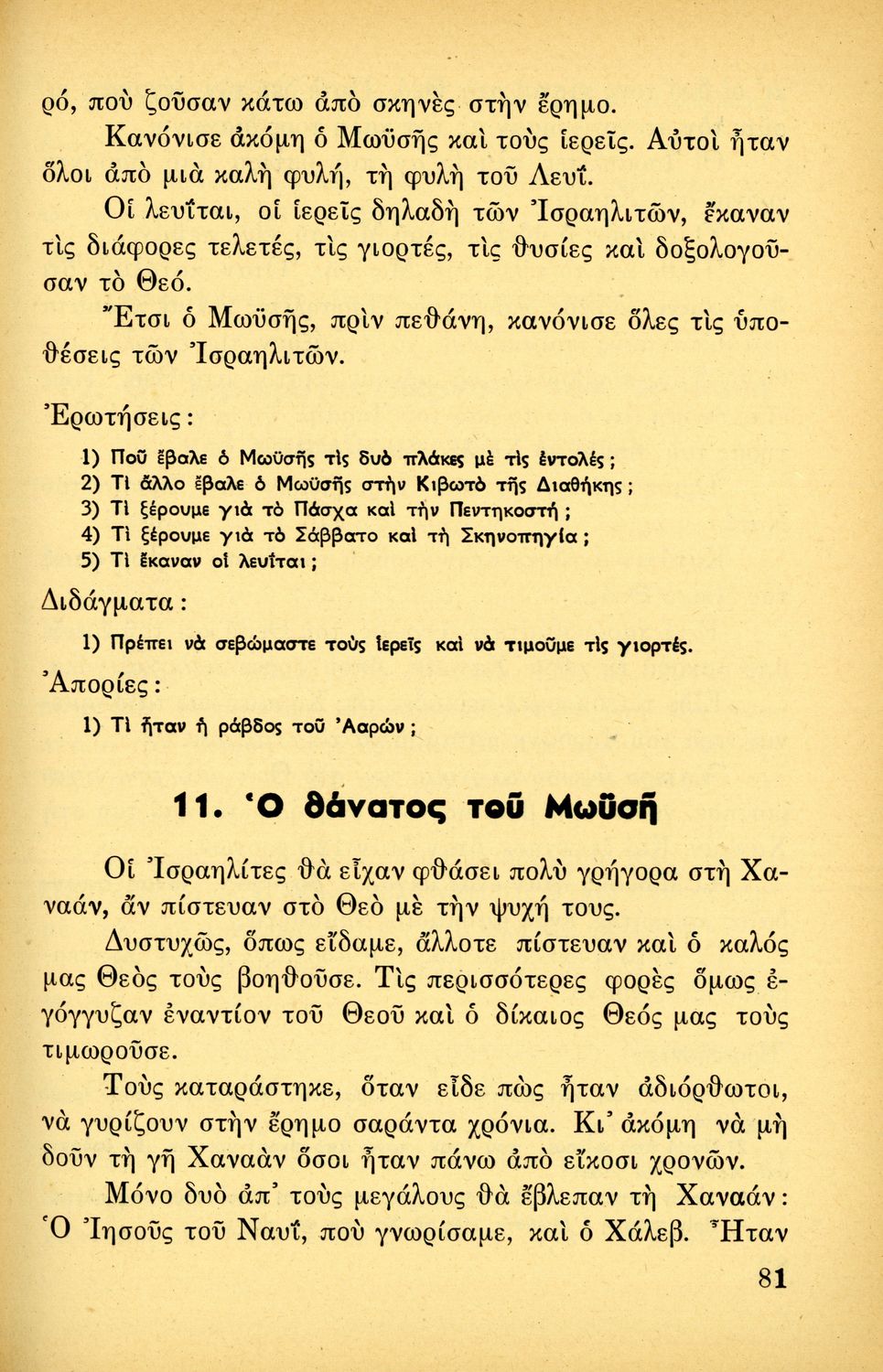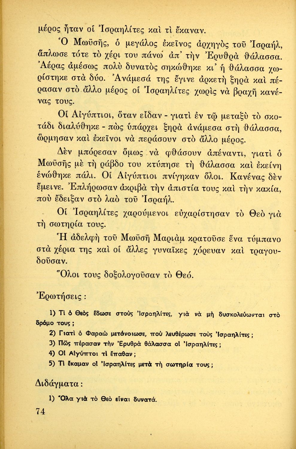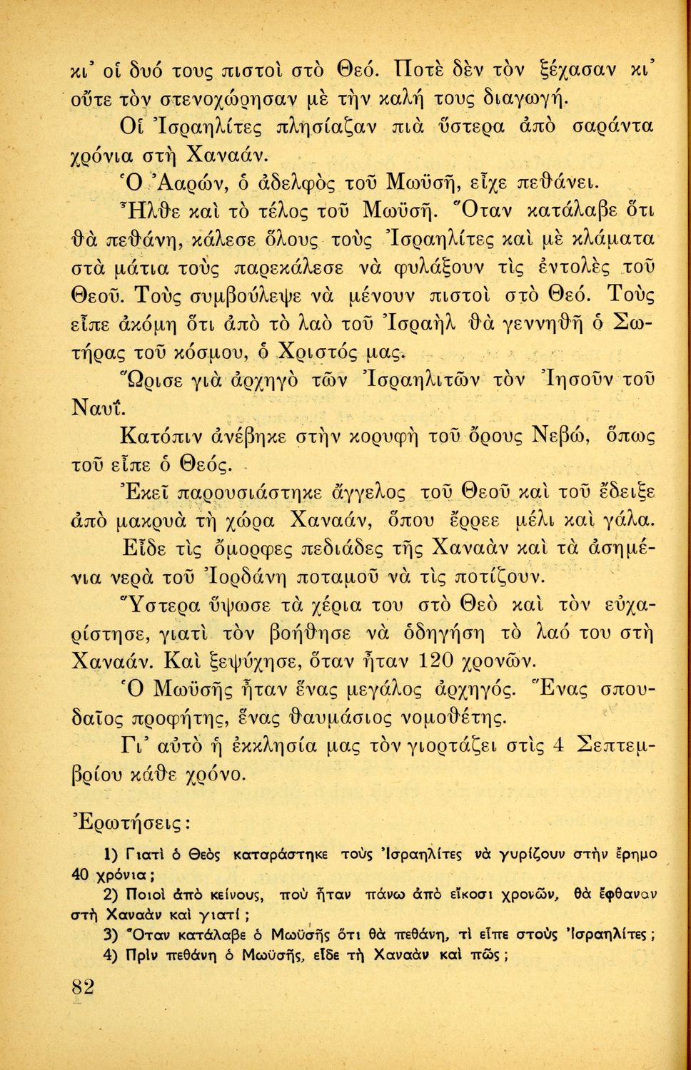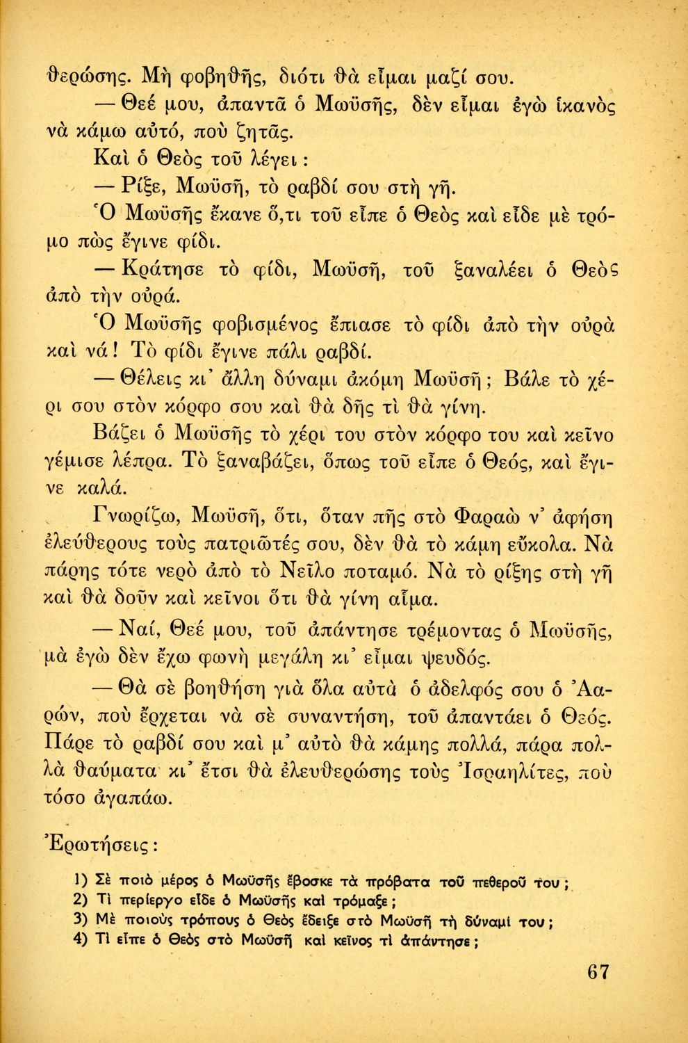 Σχολικό εγχειρίδιο Θρησκευτικών Α΄ Ελληνικού Σχολείου που συνιστά μία εξιστόρηση της Παλαιάς Διαθήκης από τη δημιουργία του κόσμου ως τους Μακκαβαίους.