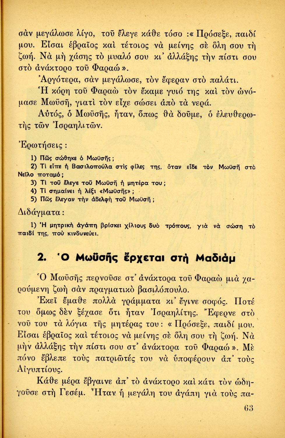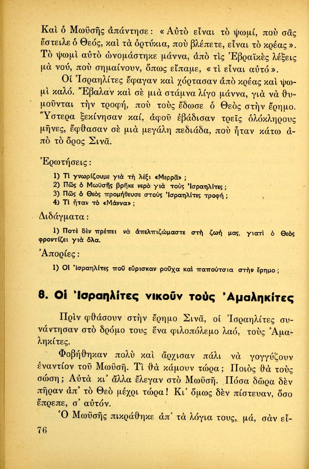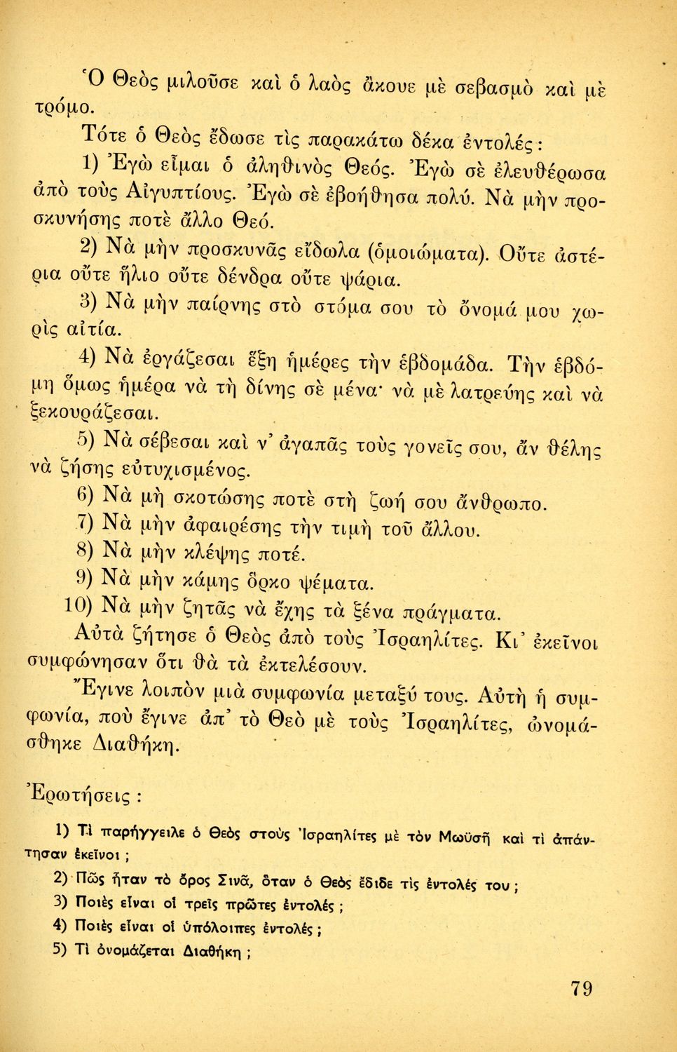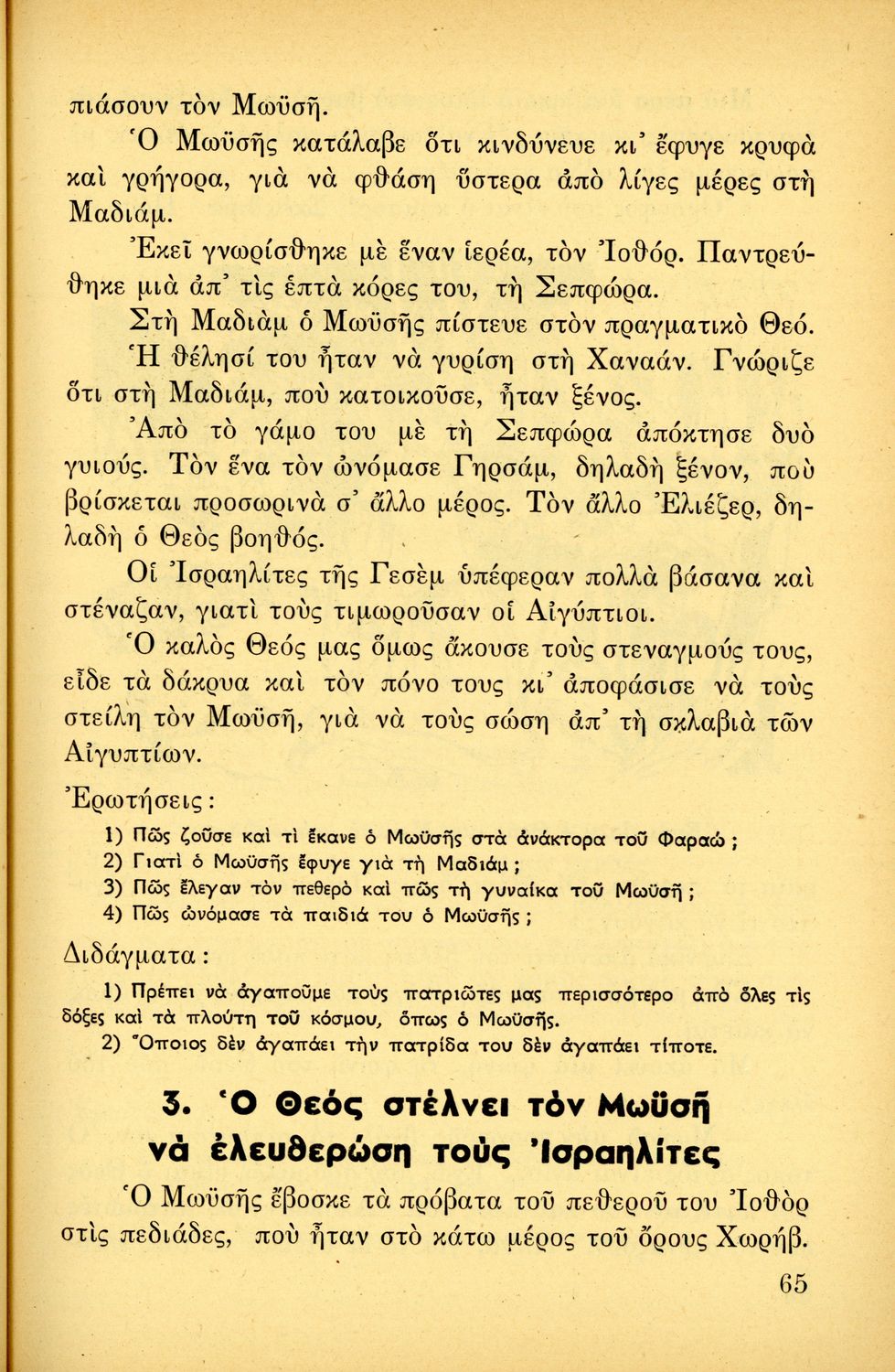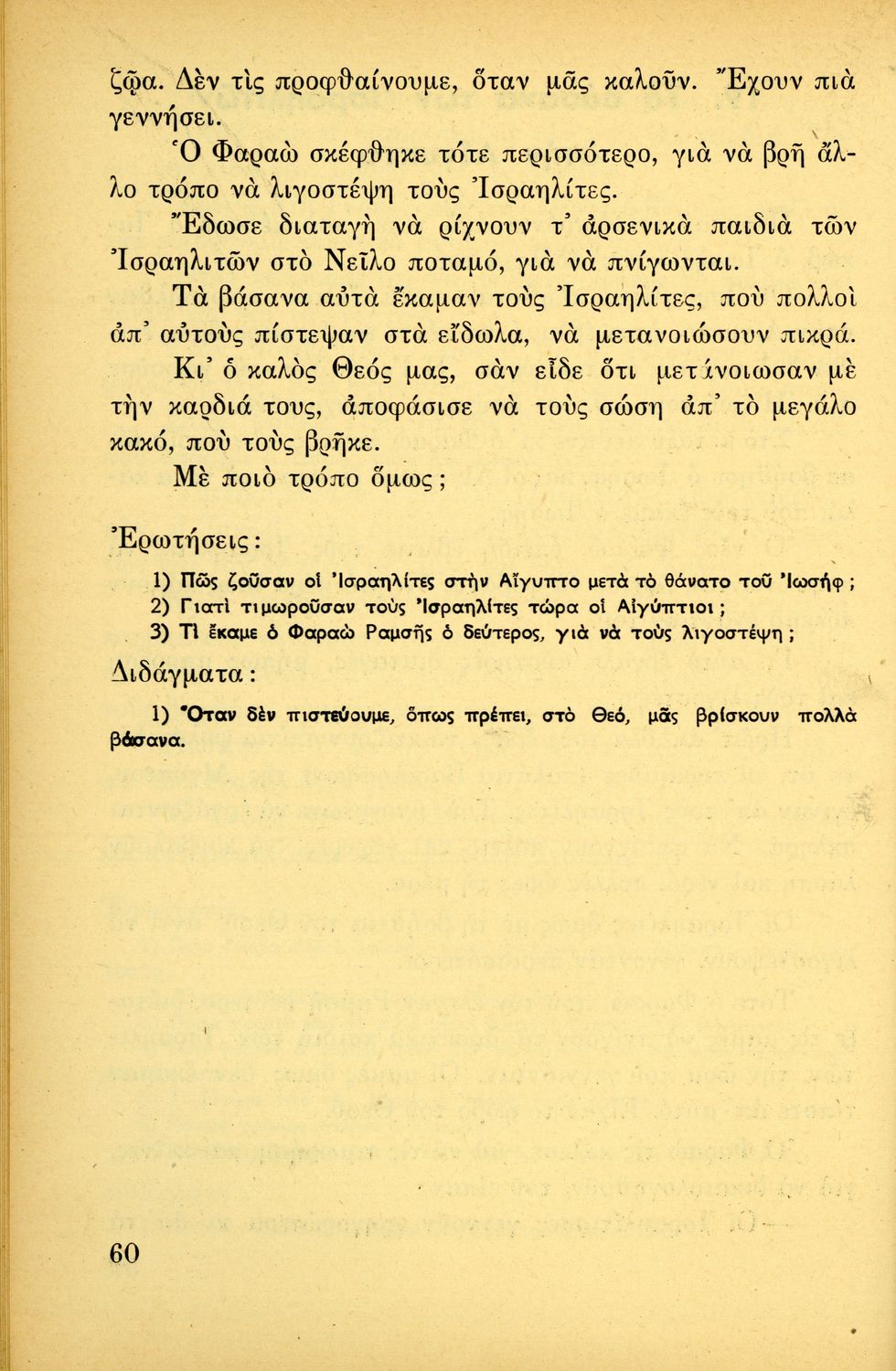 Σχολικό εγχειρίδιο Θρησκευτικών Α΄ Ελληνικού Σχολείου που συνιστά μία εξιστόρηση της Παλαιάς Διαθήκης από τη δημιουργία του κόσμου ως τους Μακκαβαίους.