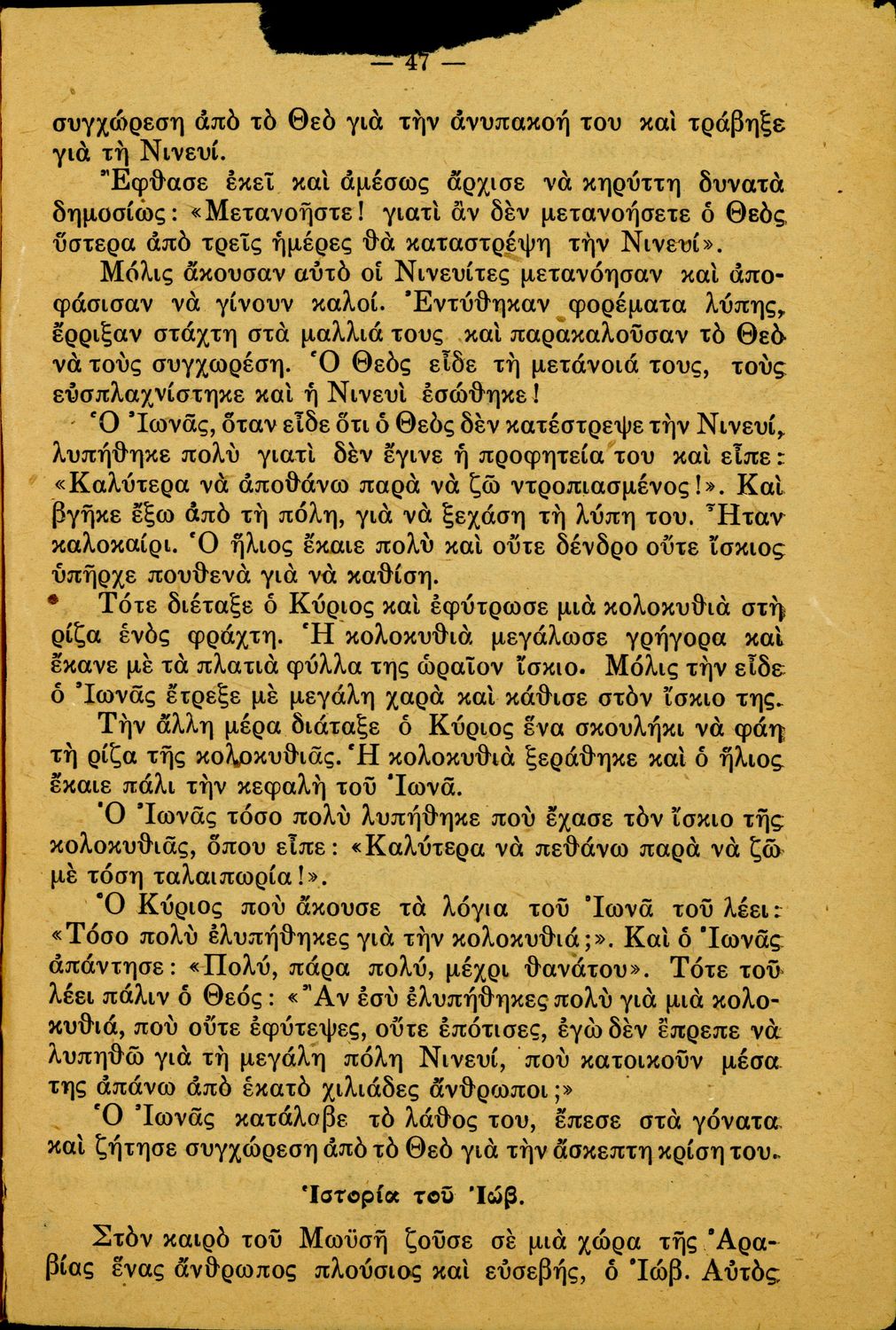 520 ## _aΣχολικό εγχειρίδιο Θρησκευτικών Γ΄ Δημοτικού που συνιστά μία εξιστόρηση της Παλαιάς Διαθήκης από τη δημιουργία του κόσμου ως τους Προφήτες.