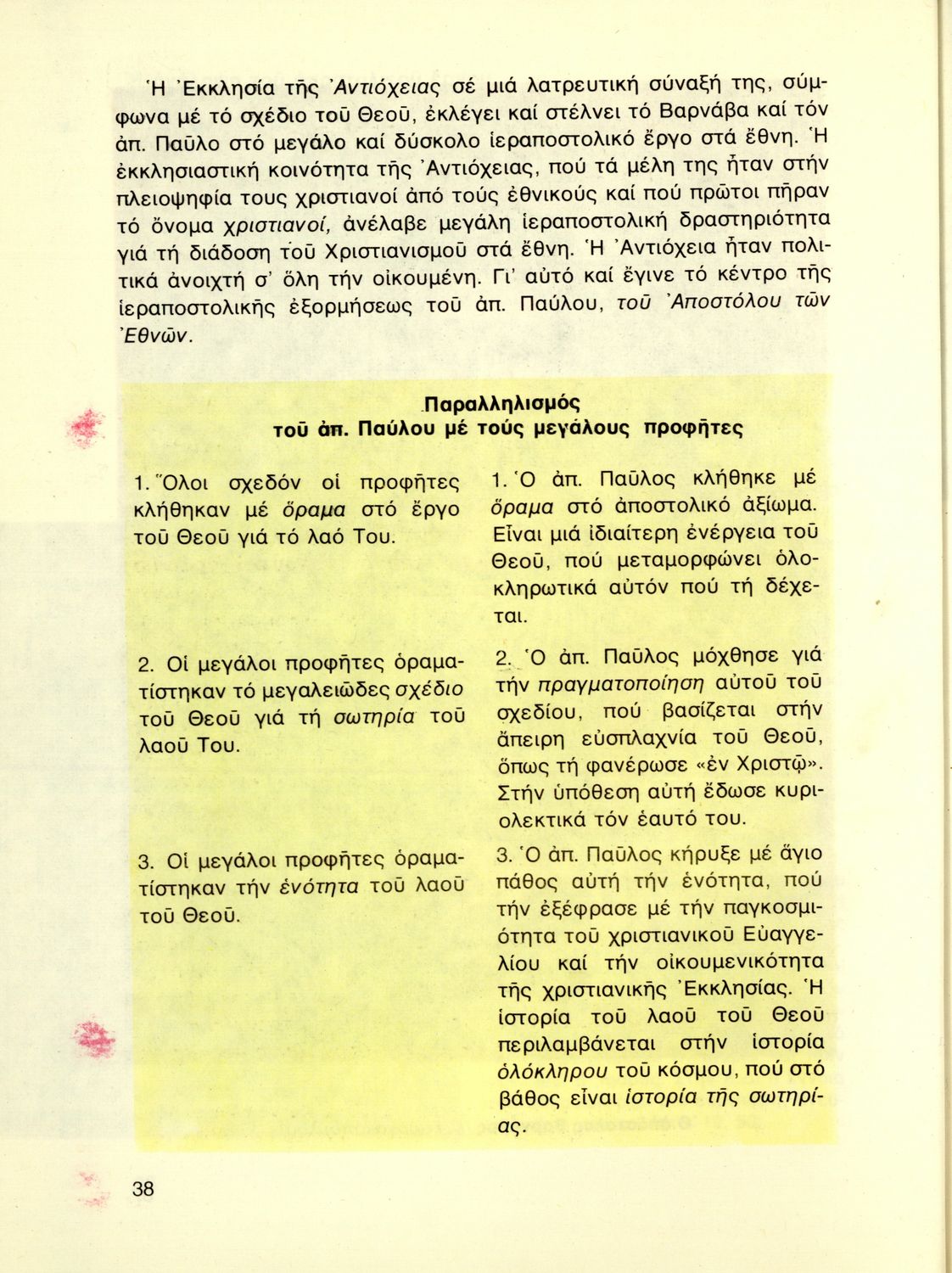 Κωδικός αναγνώρισης: 04-00061 Τίτλος: Ο Λαός του Θεού – Ιστορία της Εκκλησίας Β' Γυμνασίου Συγγραφέας: Μιχάλης Καρδαμάκης, Χρ. Γκότσης, Ι. Κωνσταντινίδης, Κ. Λυκάκης Εικονογράφος: Χρ. Γκότσης, Τάσος Μουσταφέλλος (κοσμήματα) Μέγεθος και υπόστρωμα: Σχολικό εγχειρίδιο, 20εκ., μαλακό εξώφυλλο, 270 σελίδες. Σκίτσα και εικόνες (έγχρωμα) εξώφυλλο (έγχρωμο). |