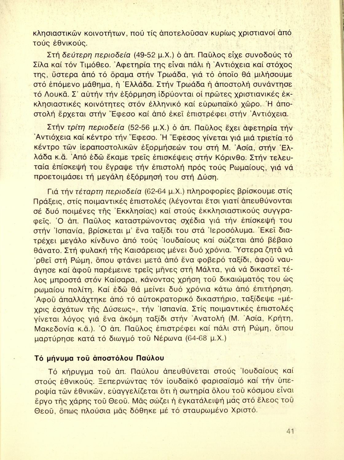 Βαθμίδα εκπαίδευσης: Δευτεροβάθμια Τάξη: Β' Γυμνασίου Μάθημα: Θρησκευτικά Γλώσσα: Δημοτική Παρουσίαση περιεχομένου: Σχολικό εγχειρίδιο Θρησκευτικών για την Β΄ Γυμνασίου που αποτελεί μια γενική επισκόπηση της ιστορία της χριστιανικής εκκλησίας από την εποχή των Αποστόλων ως την ίδρυση της Εκκλησίας της Ελλάδας. |