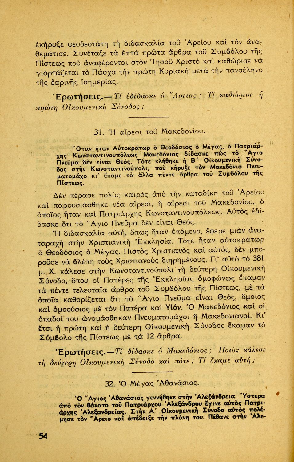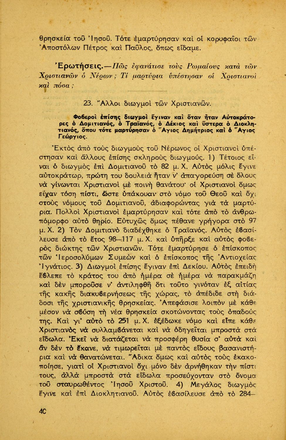 Σχολικό εγχειρίδιο Θρησκευτικών για την Δ' Γυμνασίου παλαιού τύπου που περιέχει την ιστορία της ορθόδοξης Εκκλησίας από την ίδρυσή της μέχρι την δημιουργία της Εκκλησίας της Ελλάδας.