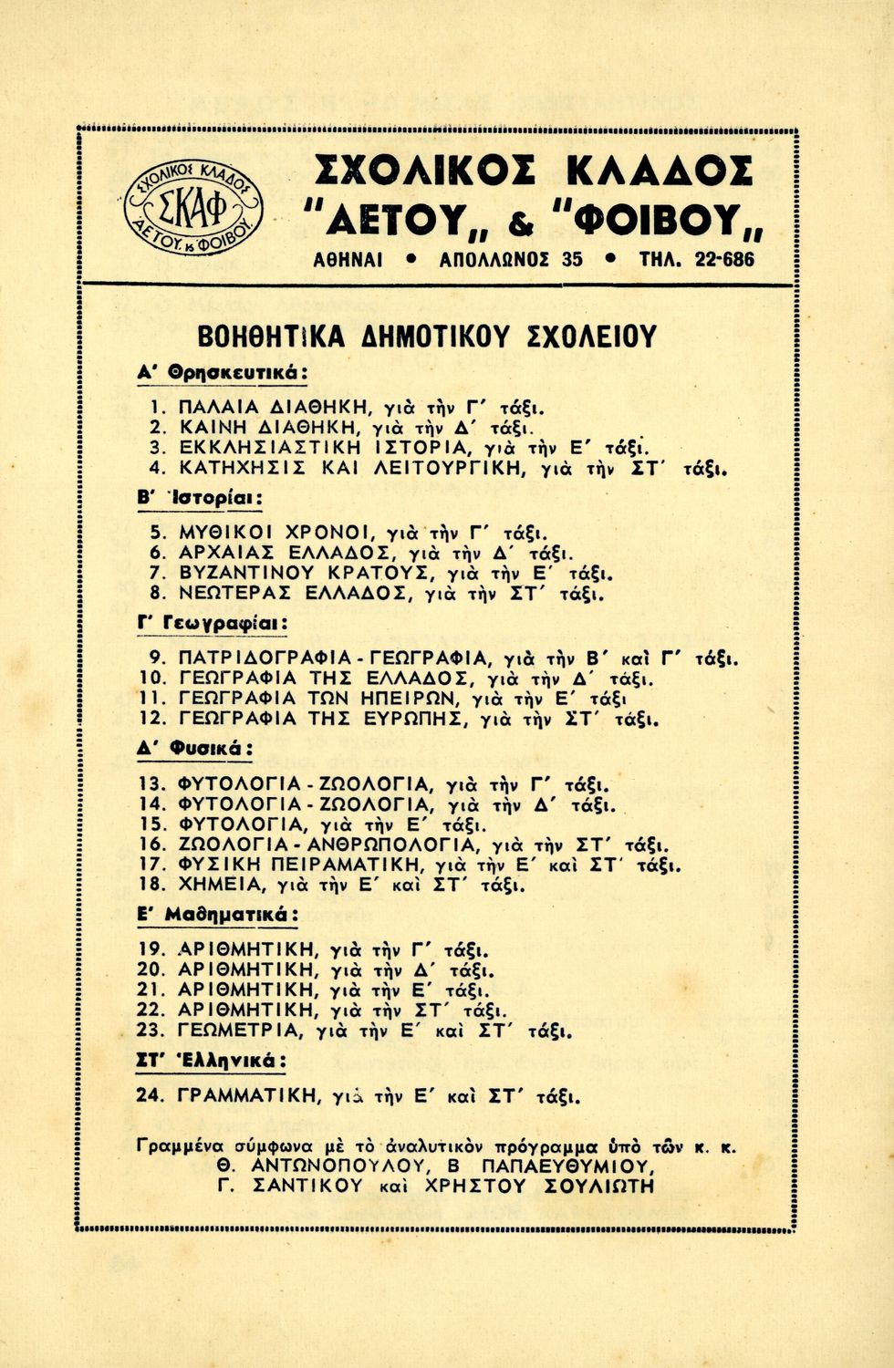 Εκδότης: Σχολικός κλάδος "Αετός" και "Φοίβος" Έτος έκδοσης: 1949 Τόπος έκδοσης: Αθήνα |