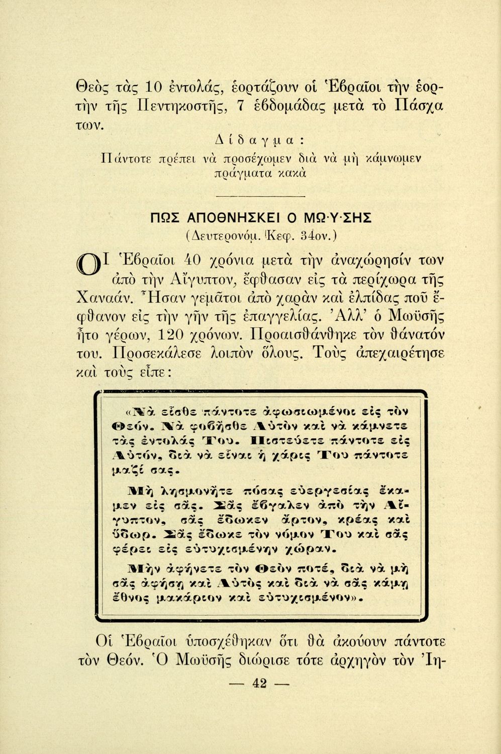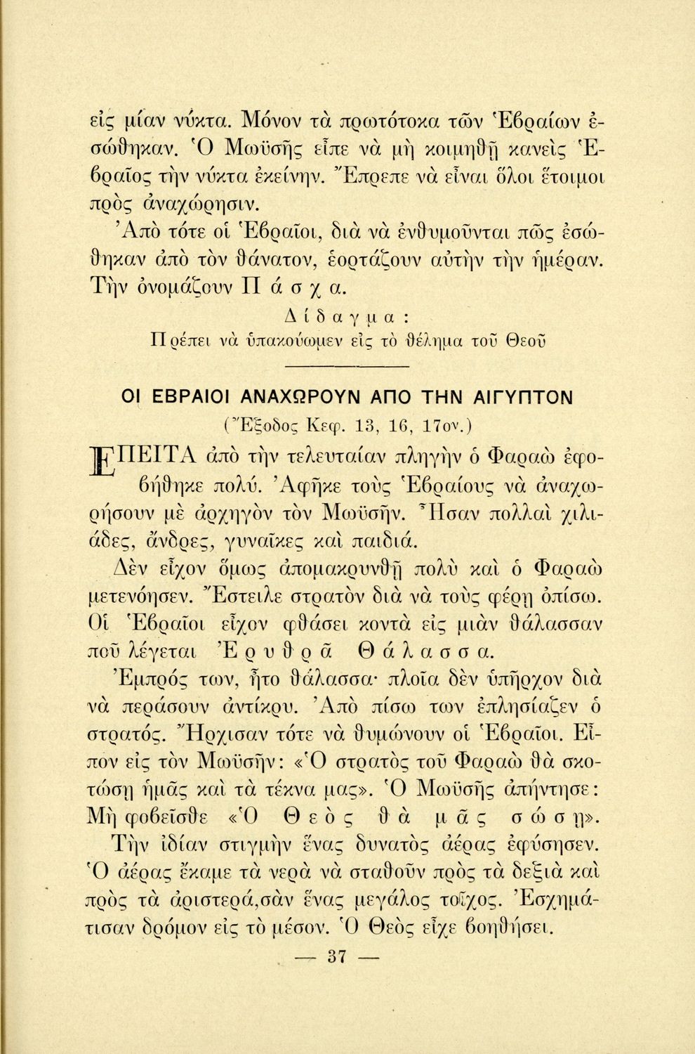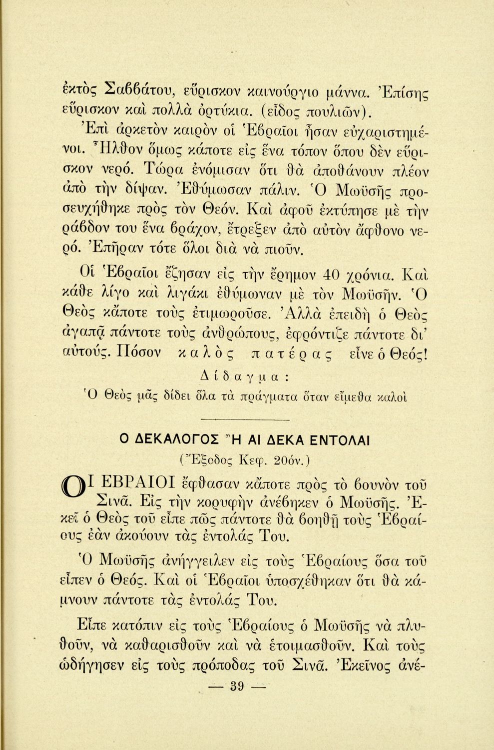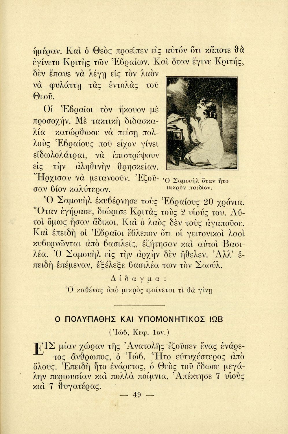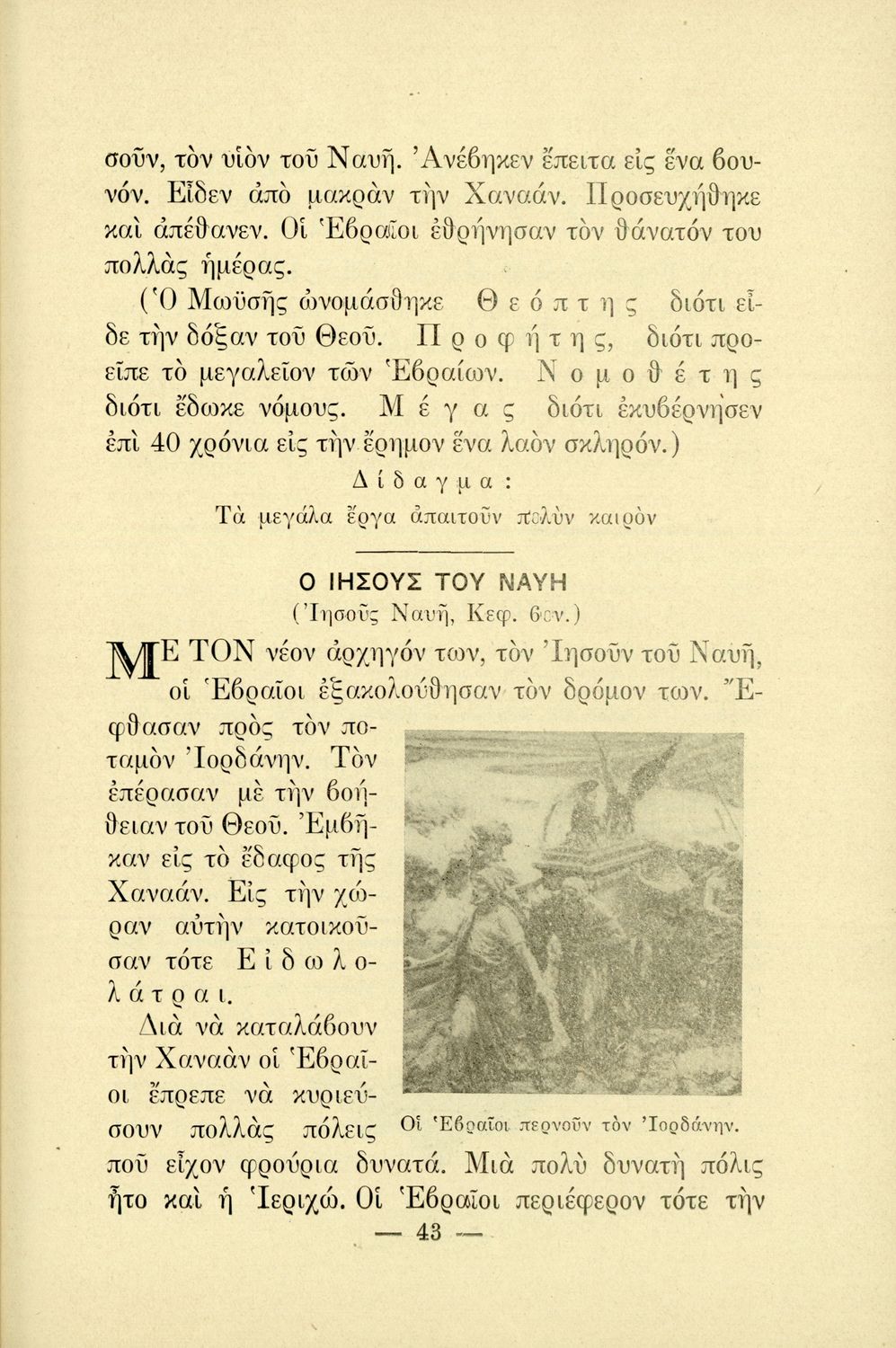 Σχολικό εγχειρίδιο Θρησκευτικών για τα Δημοτικά και Ελληνικά Σχολεία που περιλαμβάνει την ιστορία της Παλαιάς και της Καινής Διαθήκης από την δημιουργία του κόσμου μέχρι και την ανάληψη του Ιησού Χριστού.
