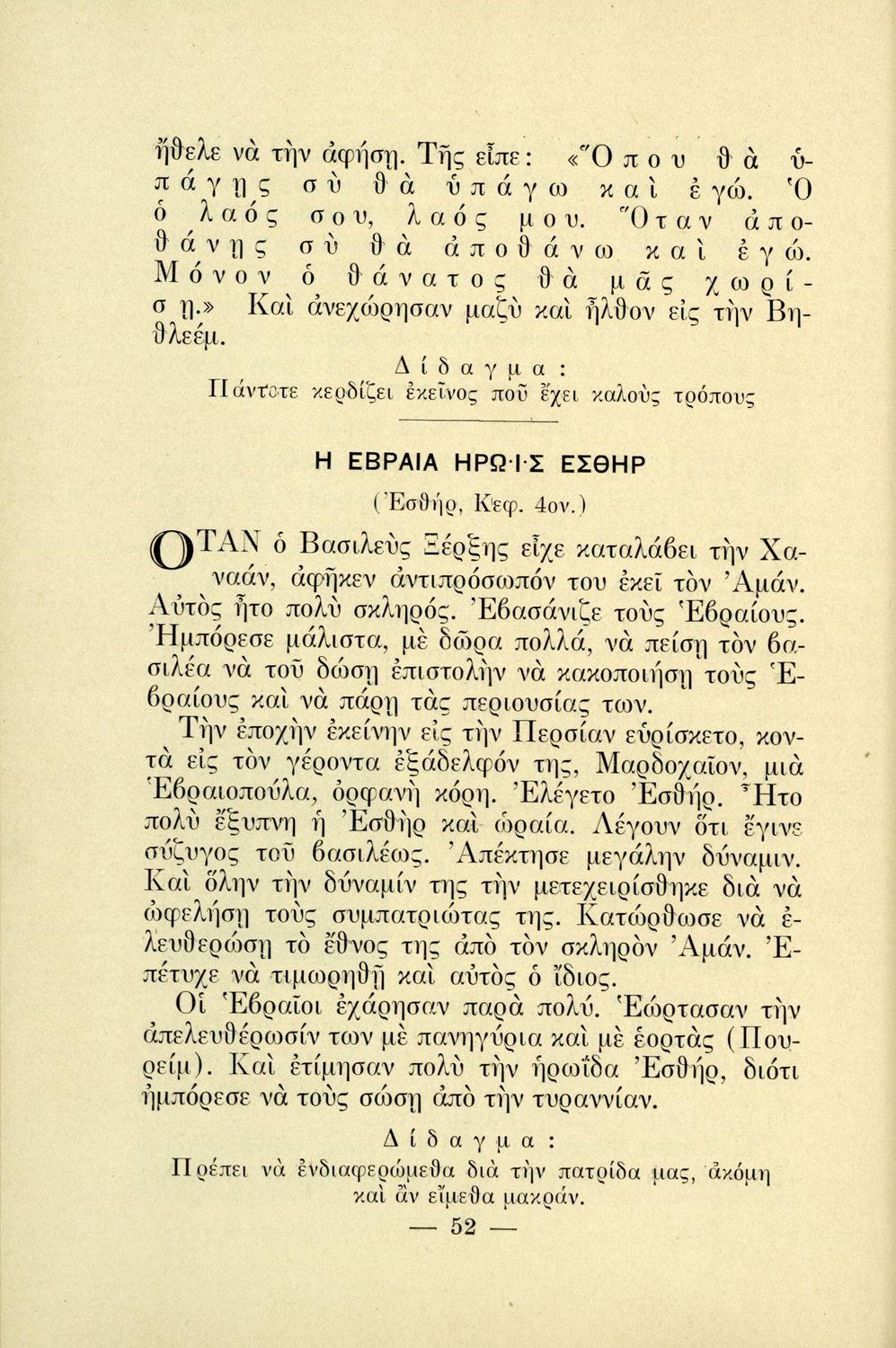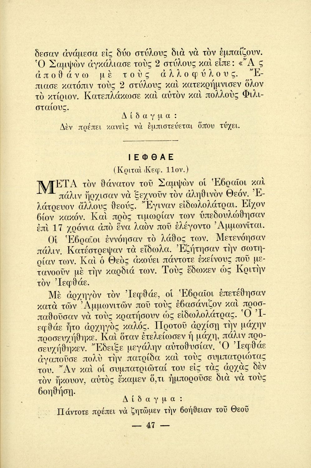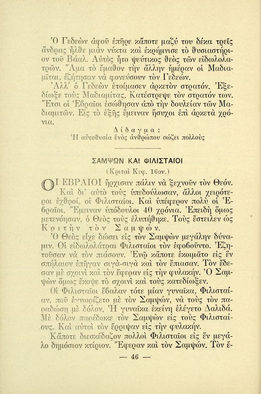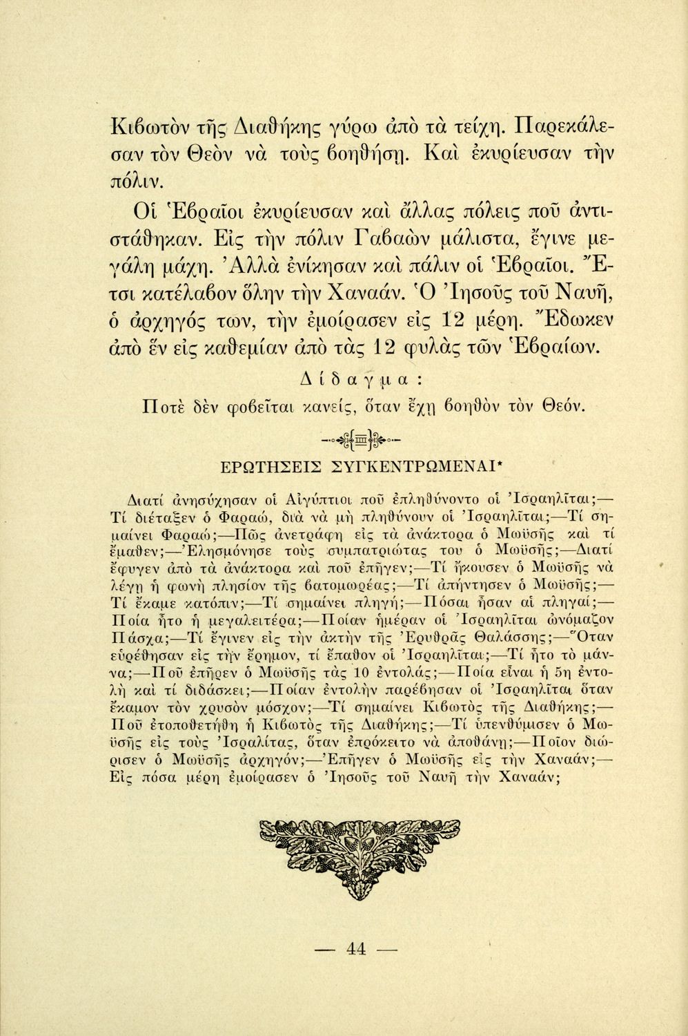 Σχολικό εγχειρίδιο Θρησκευτικών για τα Δημοτικά και Ελληνικά Σχολεία που περιλαμβάνει την ιστορία της Παλαιάς και της Καινής Διαθήκης από την δημιουργία του κόσμου μέχρι και την ανάληψη του Ιησού Χριστού.