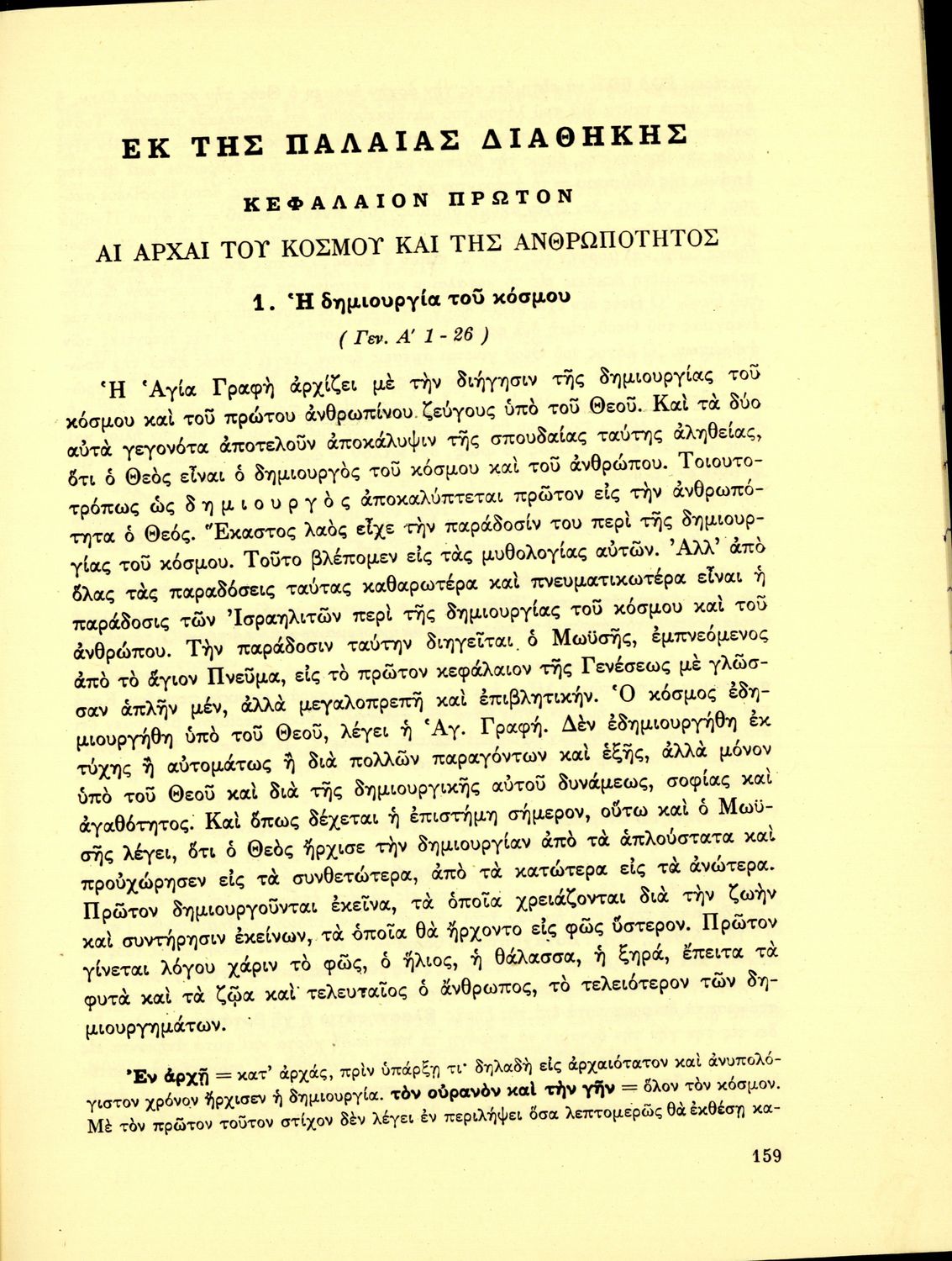 Σχολικό εγχειρίδιο Θρησκευτικών που περιλαμβάνει εισαγωγικά σχόλια στα βιβλία της Παλαιάς και Καινής Διαθήκης, περικοπές, ερμηνευτικές και πραγματολογικές σημειώσεις και πίνακα με τα κυριότερα ονόματα.