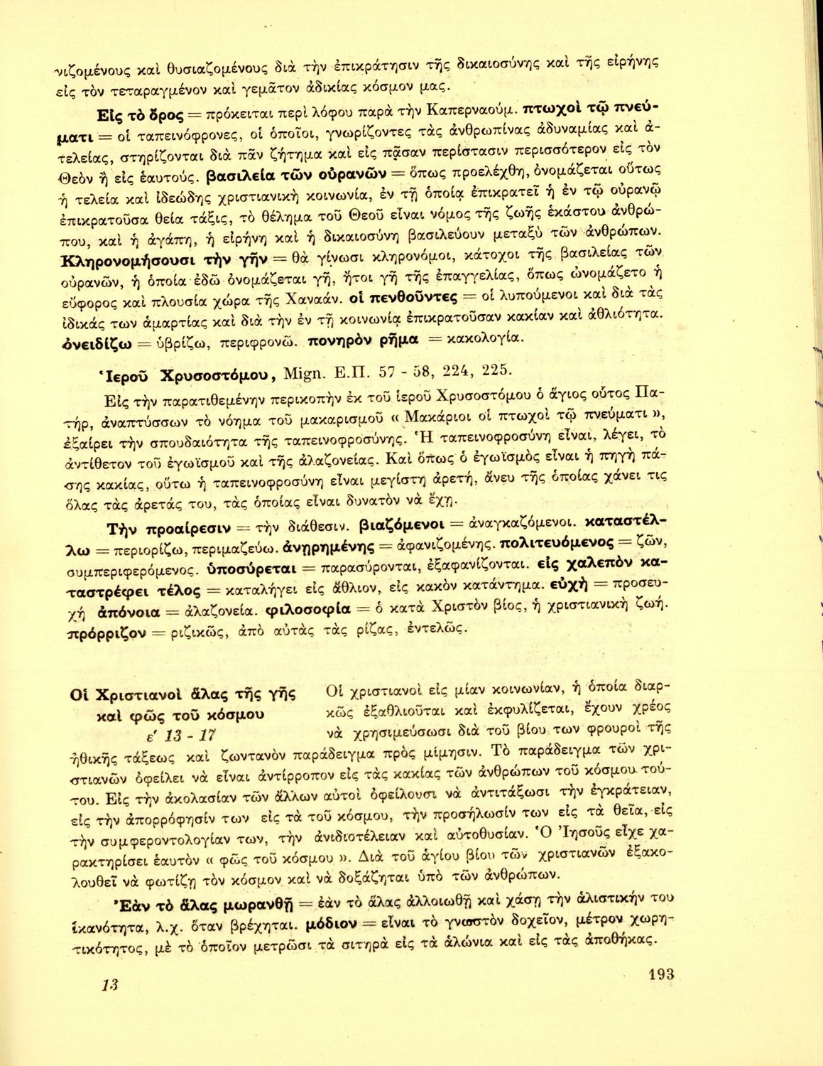 Βαθμίδα εκπαίδευσης: Δευτεροβάθμια Μάθημα: Θρησκευτικά Γλώσσα: Απλή καθαρεύουσα Παρουσίαση περιεχομένου: Σχολικό εγχειρίδιο Θρησκευτικών που περιλαμβάνει εισαγωγικά σχόλια στα βιβλία της Παλαιάς και Καινής Διαθήκης, περικοπές, ερμηνευτικές και πραγματολογικές σημειώσεις και πίνακα με τα κυριότερα ονόματα. |