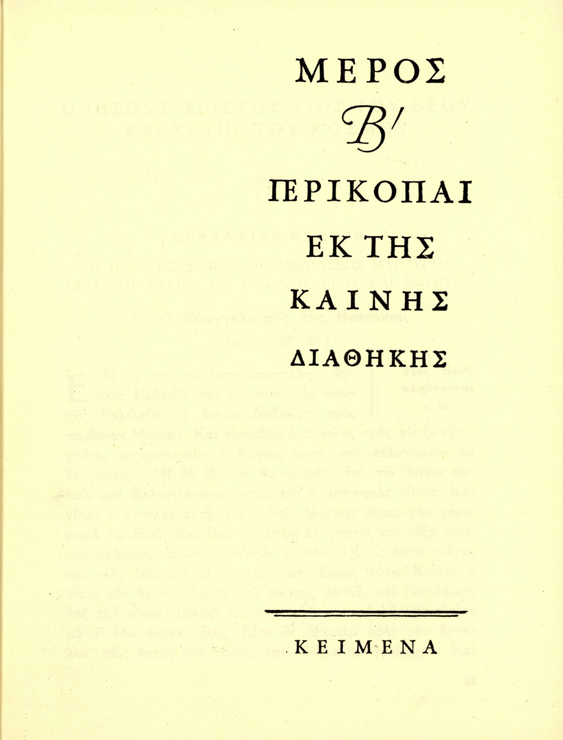Σχολικό εγχειρίδιο Θρησκευτικών που περιλαμβάνει εισαγωγικά σχόλια στα βιβλία της Παλαιάς και Καινής Διαθήκης, περικοπές, ερμηνευτικές και πραγματολογικές σημειώσεις και πίνακα με τα κυριότερα ονόματα.