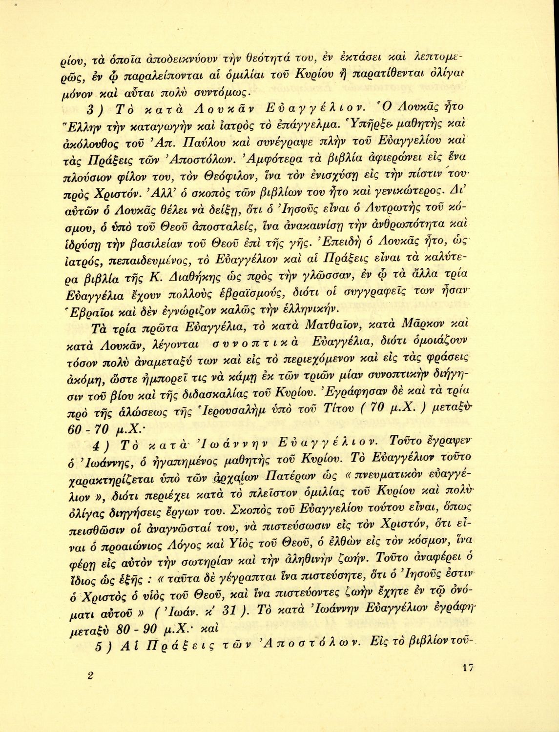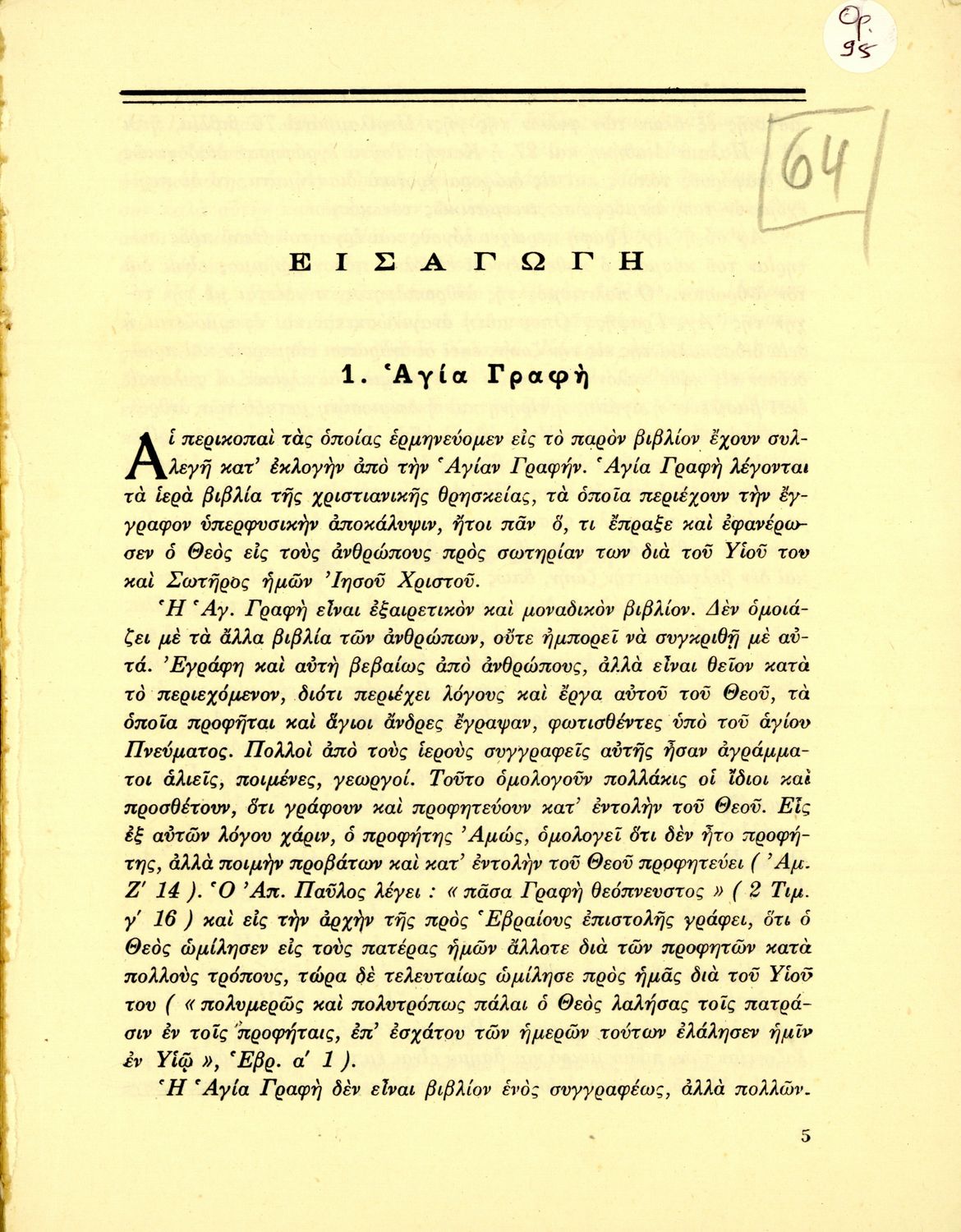 520 ## _aΣχολικό εγχειρίδιο Θρησκευτικών που περιλαμβάνει εισαγωγικά σχόλια στα βιβλία της Παλαιάς και Καινής Διαθήκης, περικοπές, ερμηνευτικές και πραγματολογικές σημειώσεις και πίνακα με τα κυριότερα ονόματα.