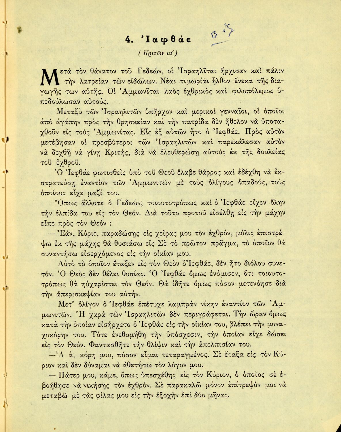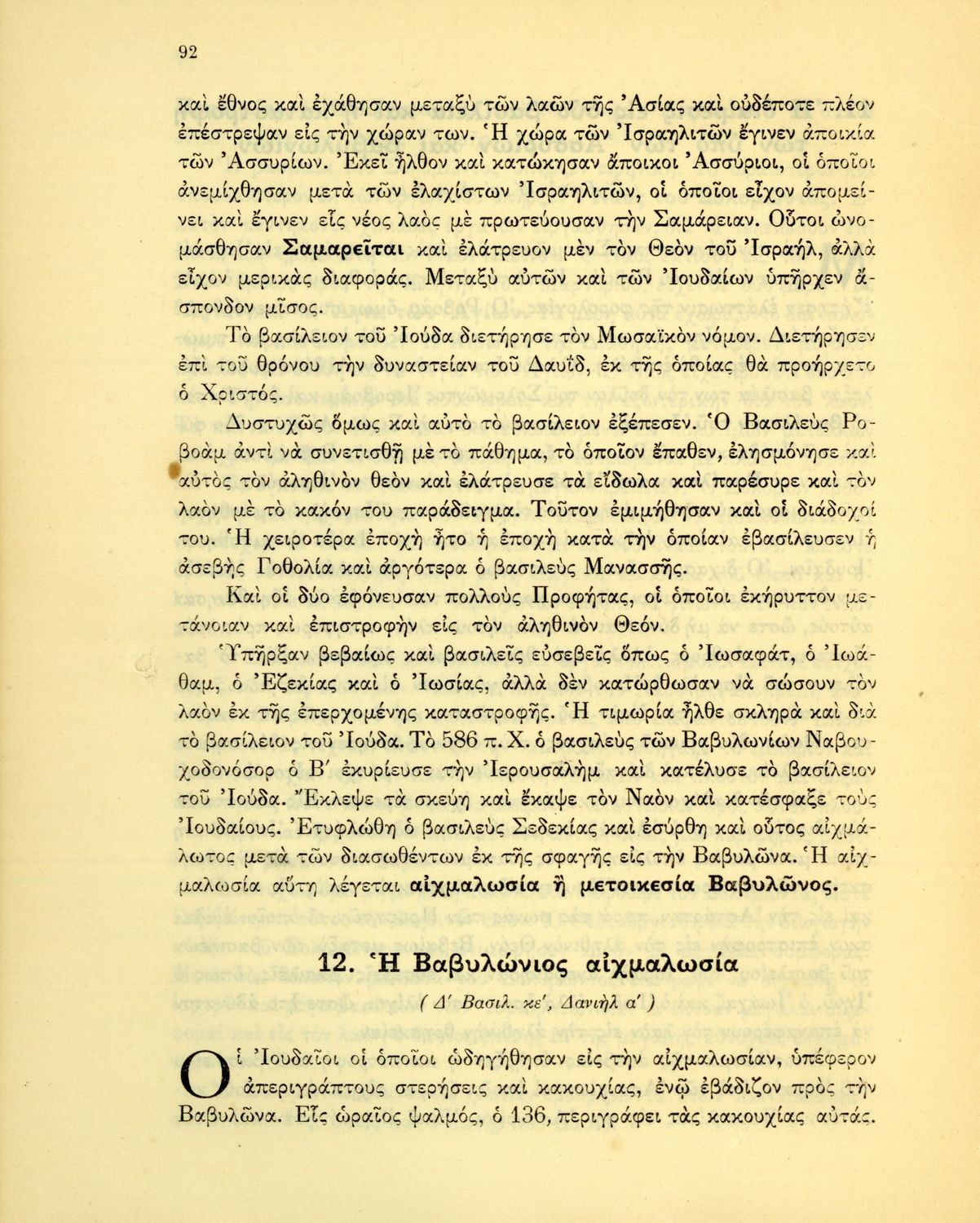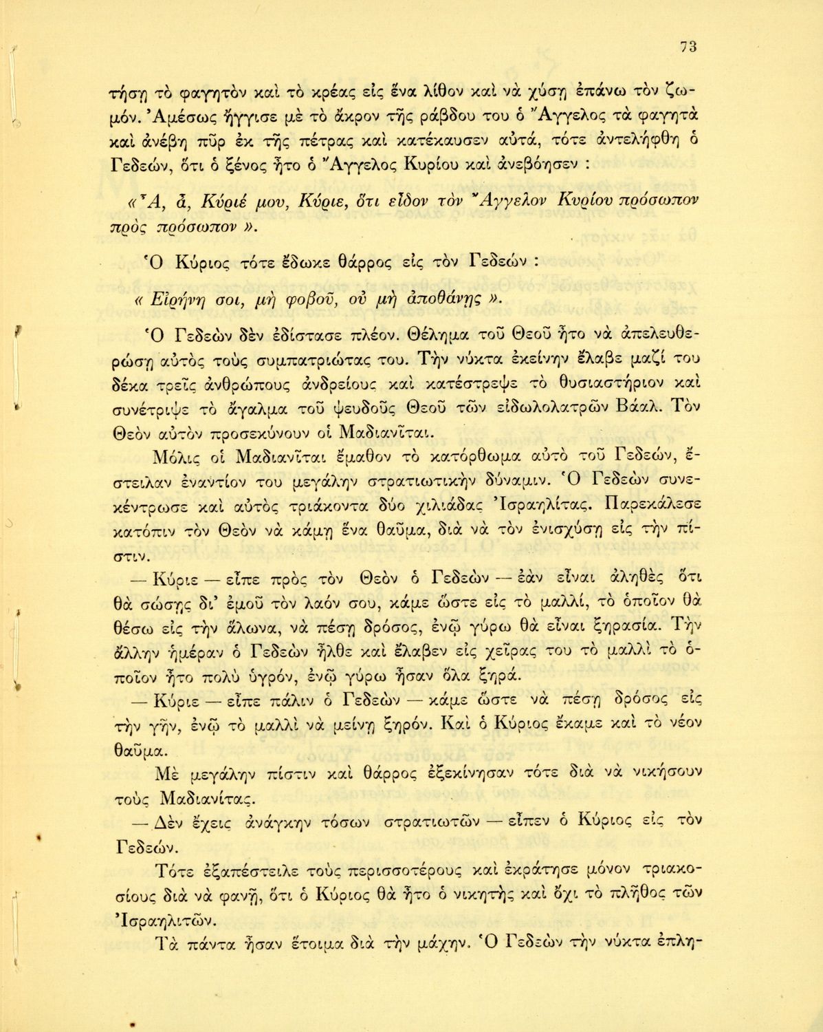 Βαθμίδα εκπαίδευσης: Δευτεροβάθμια Τάξη: Α' Γυμνασίου Μάθημα: Θρησκευτικά Γλώσσα: Απλή καθαρεύουσα Παρουσίαση περιεχομένου: Σχολικό εγχειρίδιο Θρησκευτικών Α΄ Γυμνασίου που περιλαμβάνει εισαγωγή στην Αγία Γραφή, και συνιστά μία εξιστόρηση της Παλαιάς Διαθήκης από τη δημιουργία του κόσμου ως τους Προφήτες. |