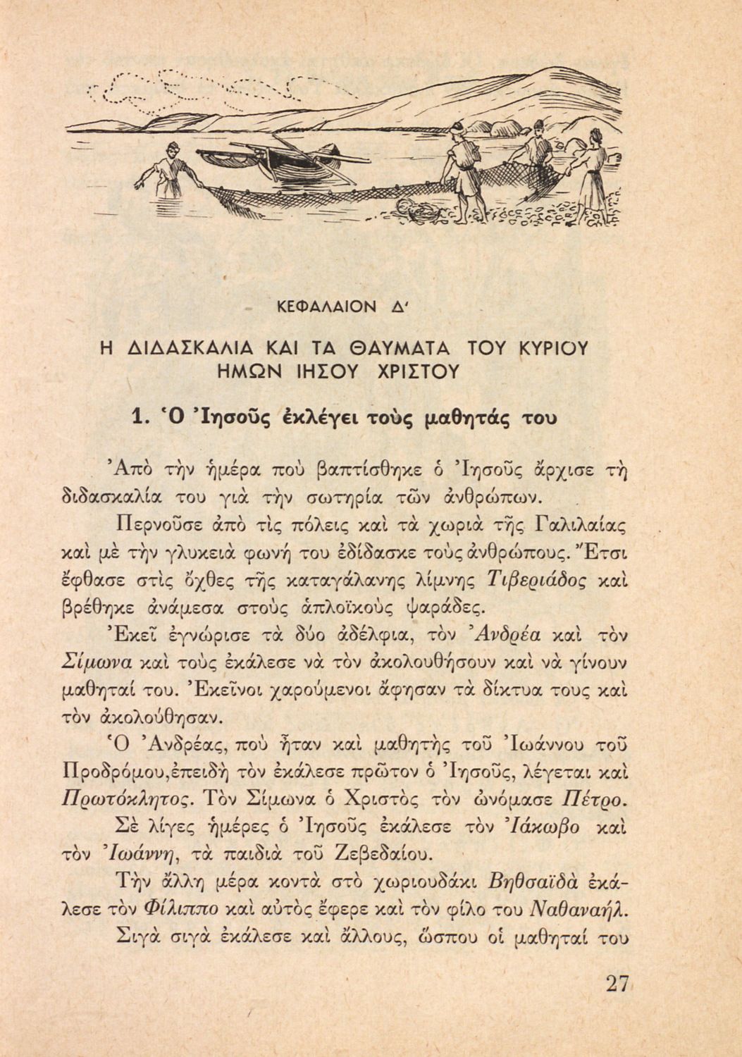 Σχολικό εγχειρίδιο Θρησκευτικών για την Γ΄ Γυμνασίου, τα Διδασκαλεία και τα Ανώτερα Παρθεναγωγεία που περιέχει περικοπές από τα βιβλία της Καινής Διαθήκης και ερμηνευτικές σημειώσεις.