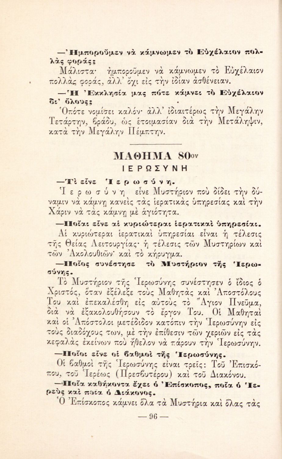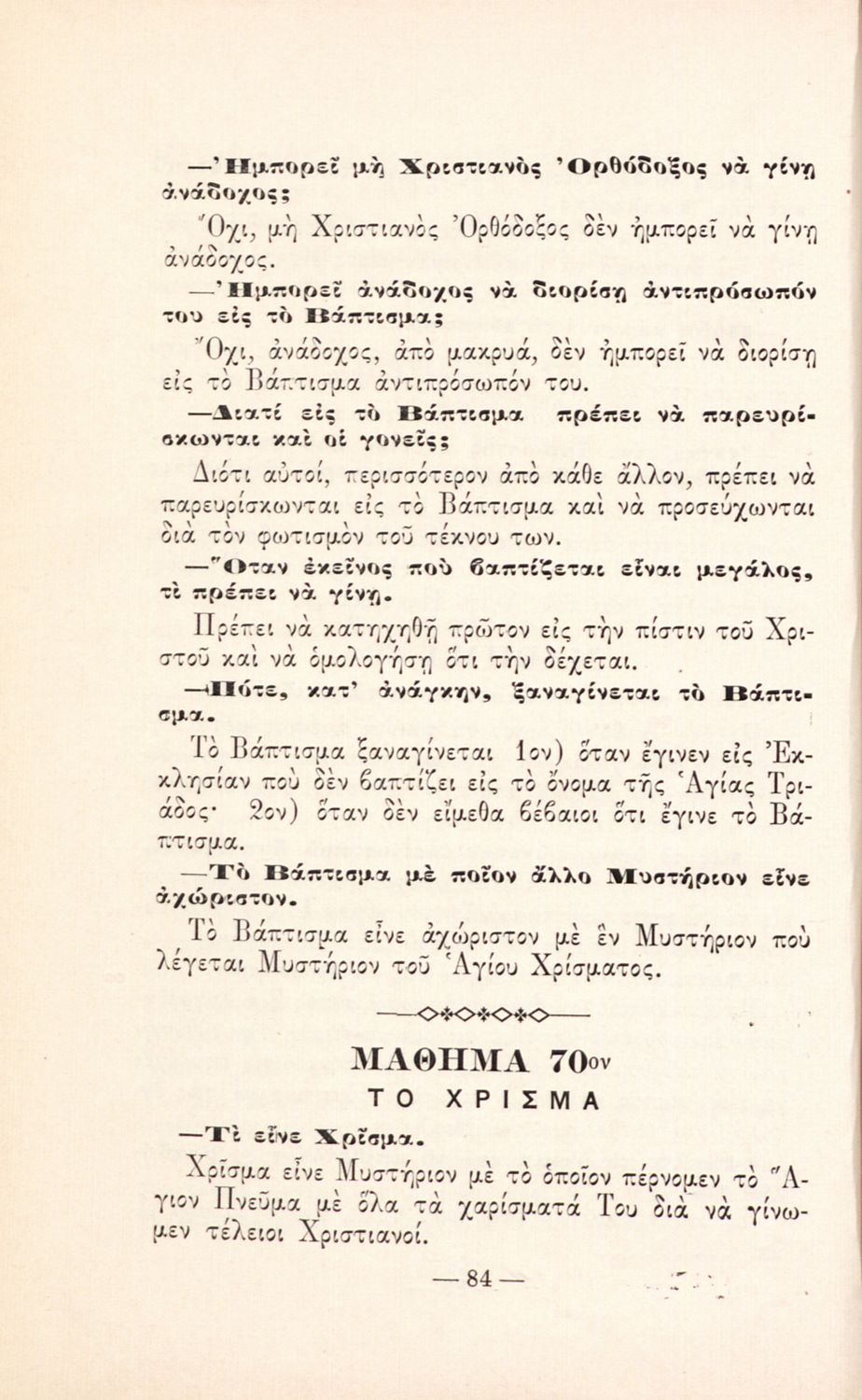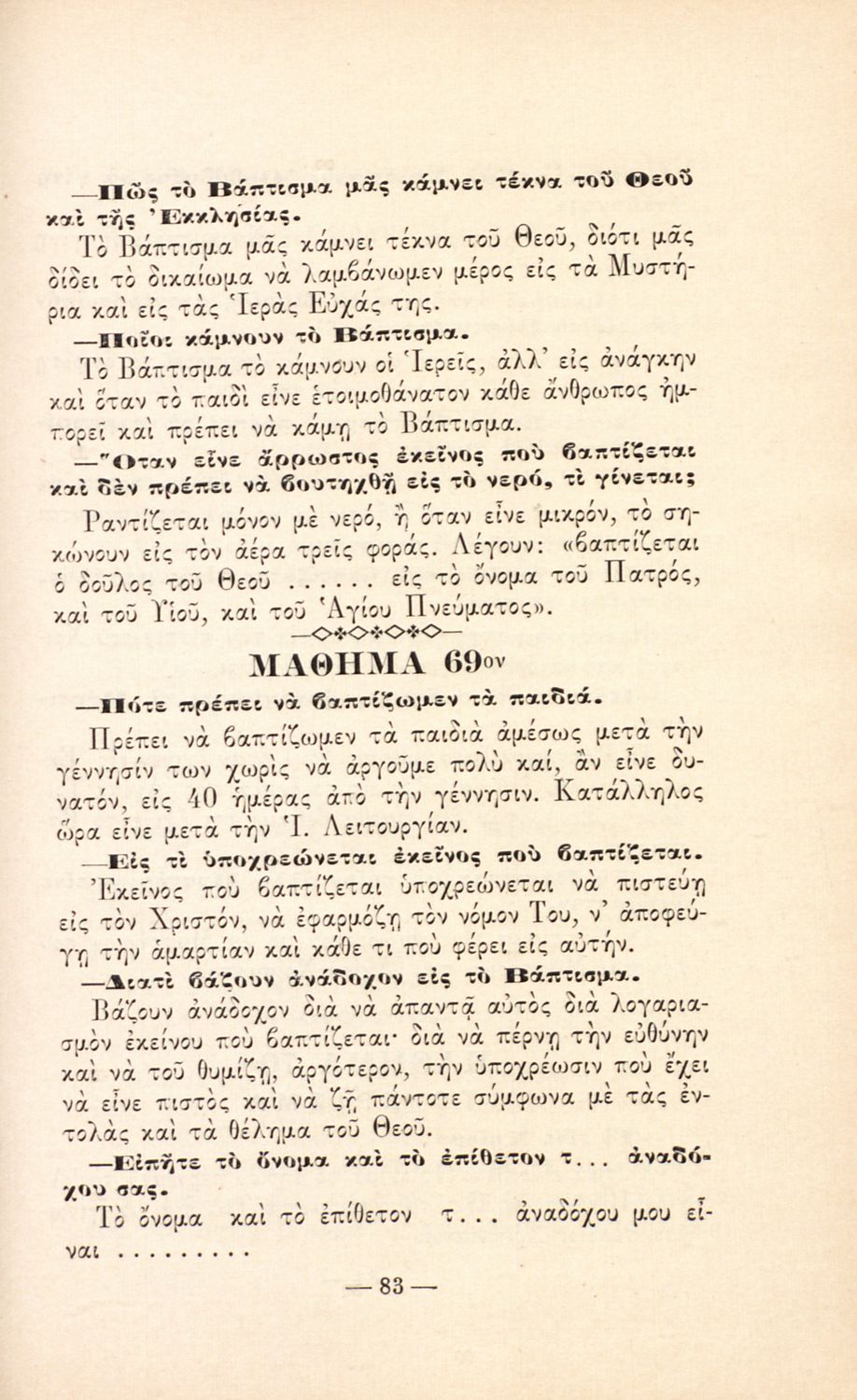 Σχολικό εγχειρίδιο Θρησκευτικών για τους μαθητές του Δημοτικού που, στη βάση ερωταποκρίσεων, αποσκοπεί στη διδασκαλία της χριστιανικής κατήχησης. Περιέχει και προσευχές.