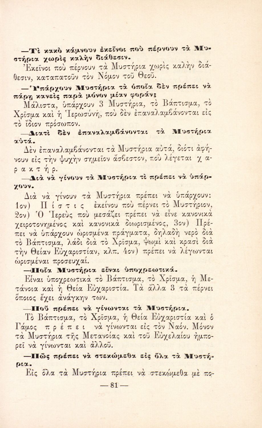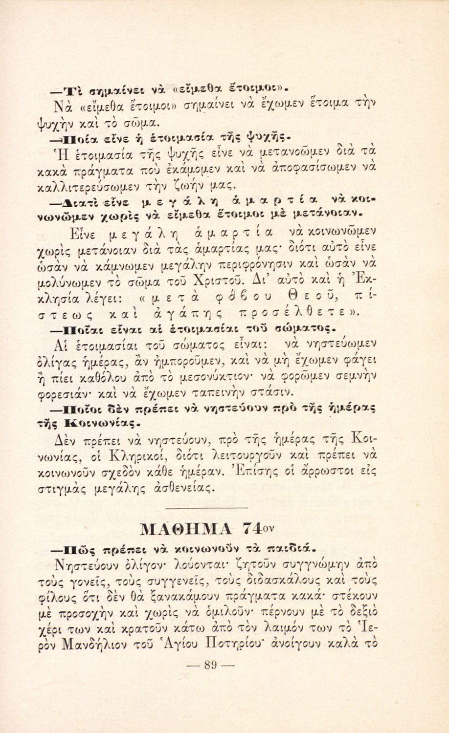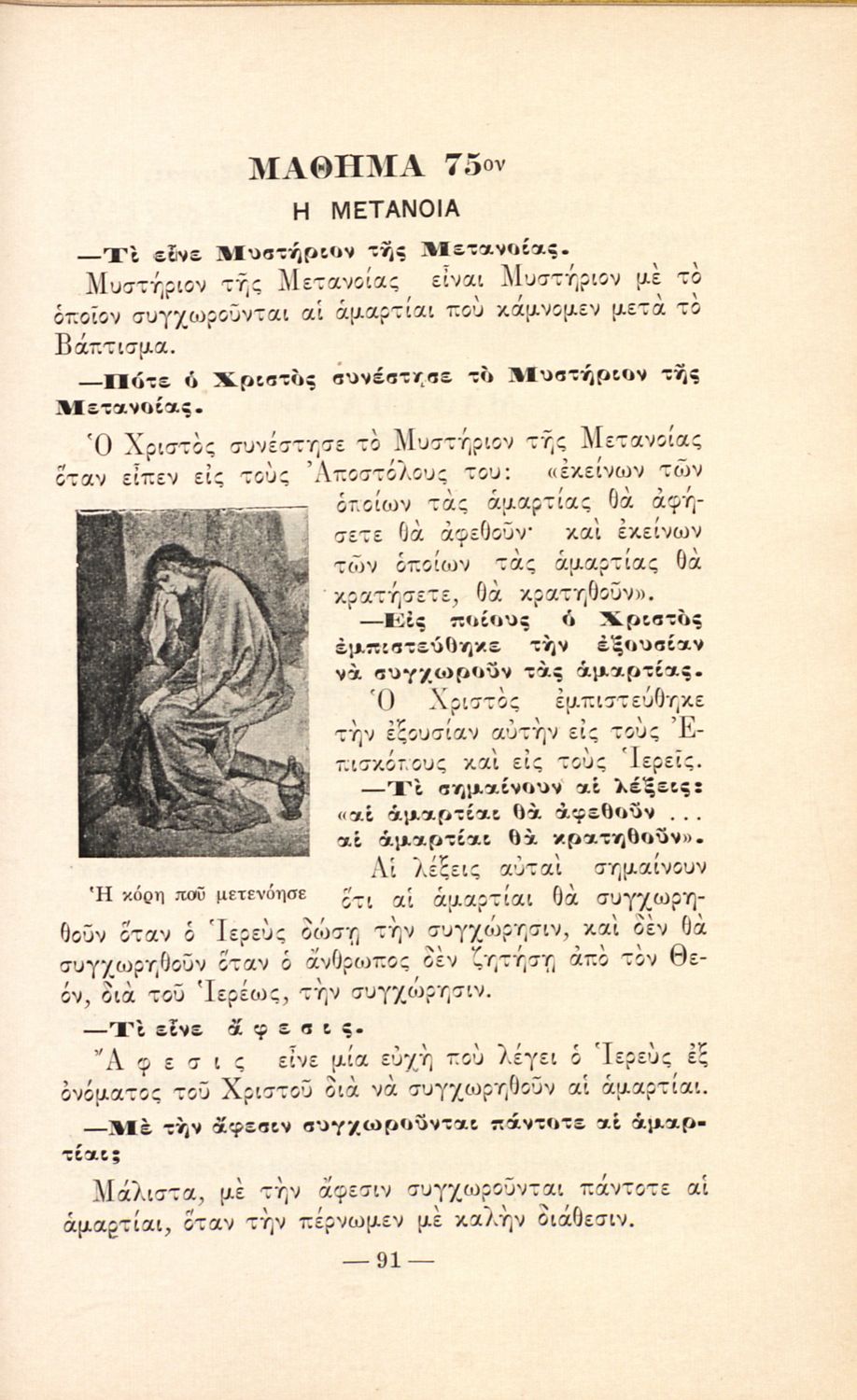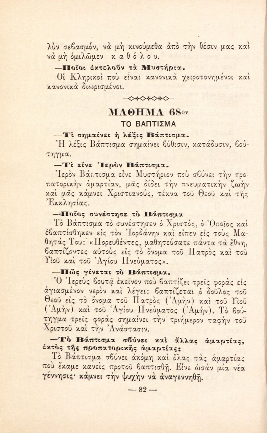 Σχολικό εγχειρίδιο Θρησκευτικών για τους μαθητές του Δημοτικού που, στη βάση ερωταποκρίσεων, αποσκοπεί στη διδασκαλία της χριστιανικής κατήχησης. Περιέχει και προσευχές.