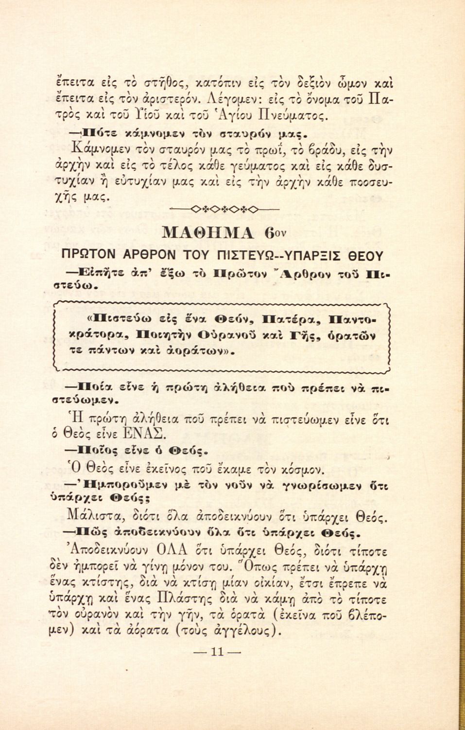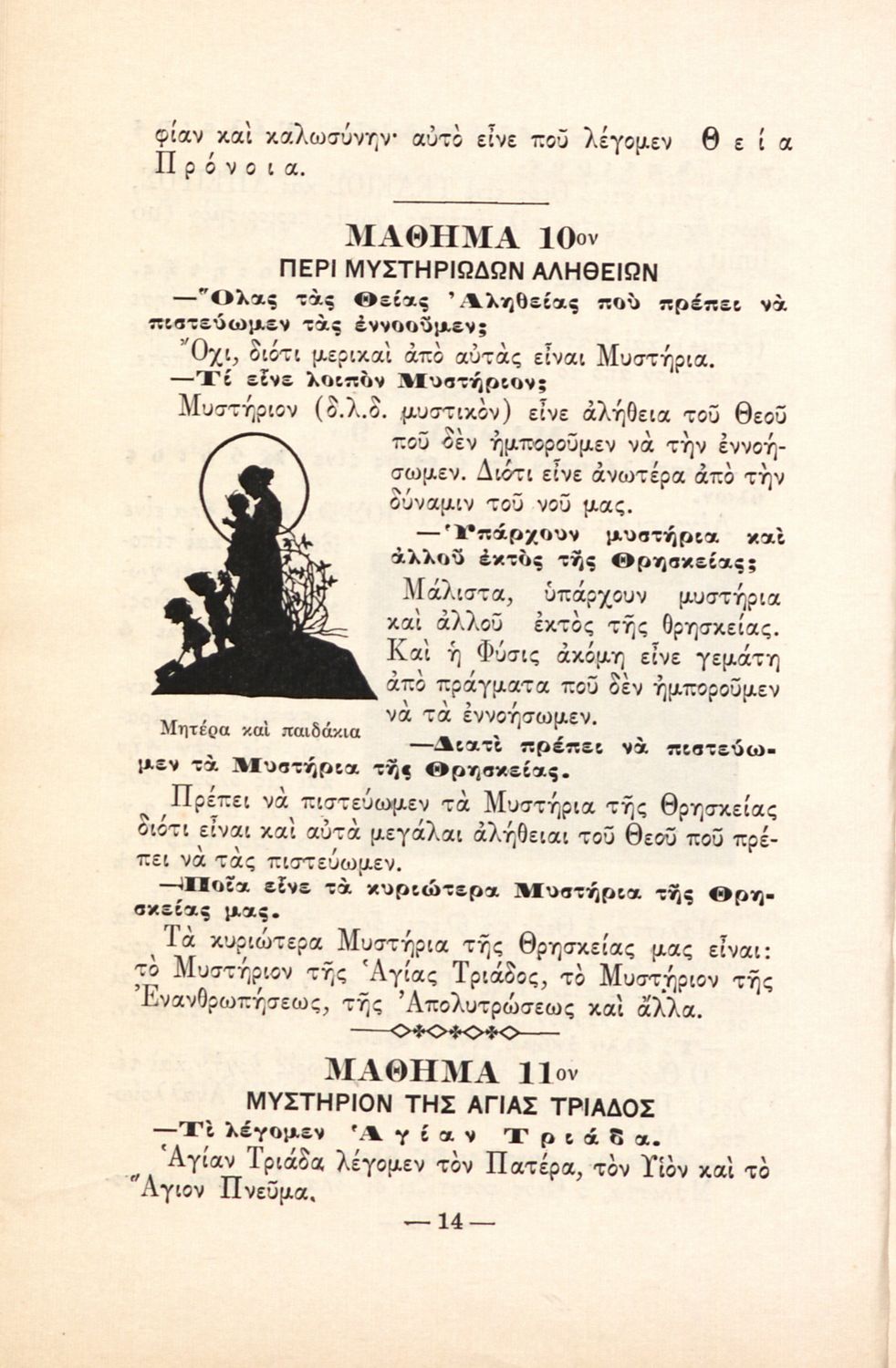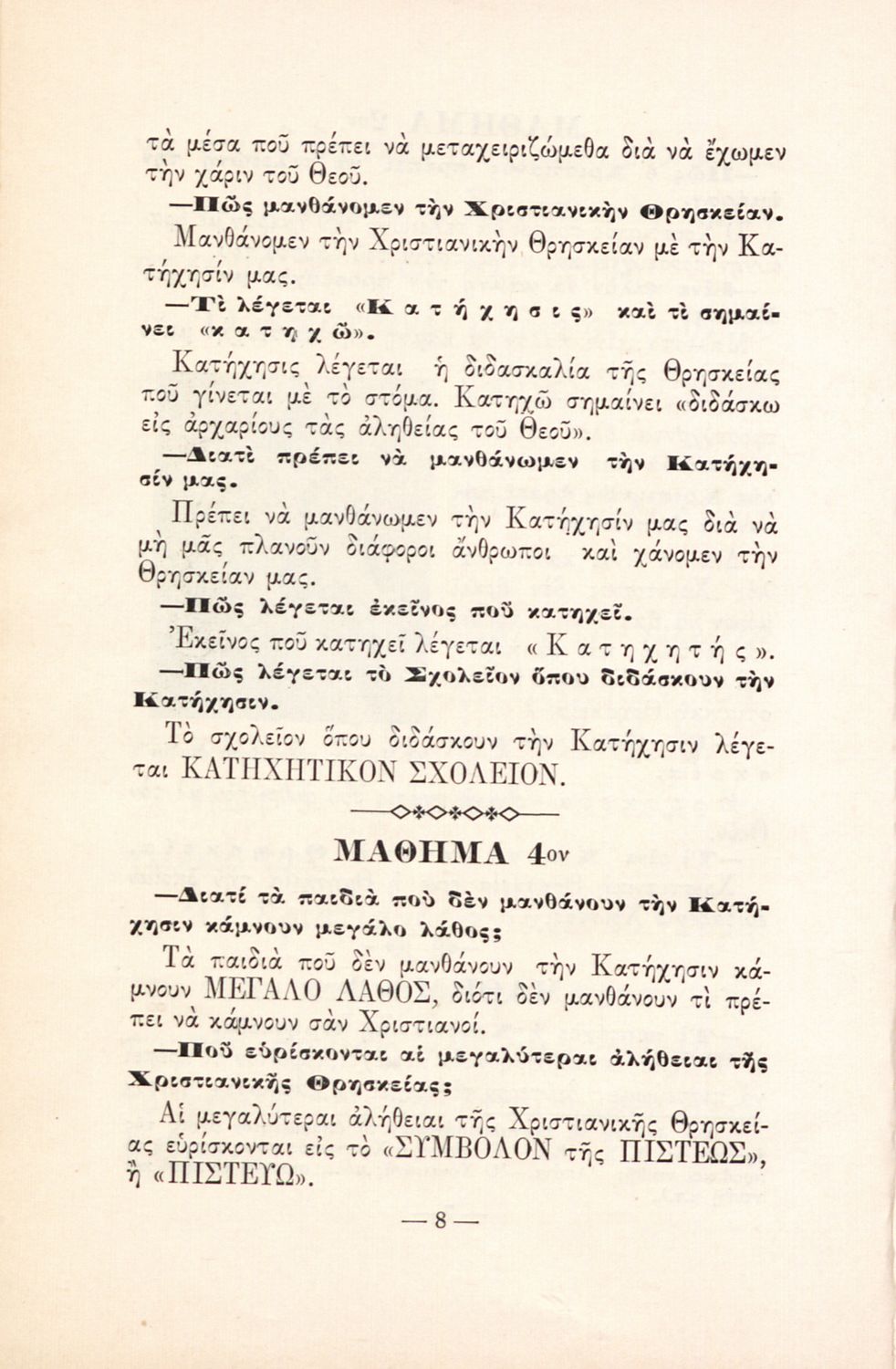 Σχολικό εγχειρίδιο Θρησκευτικών για τους μαθητές του Δημοτικού που, στη βάση ερωταποκρίσεων, αποσκοπεί στη διδασκαλία της χριστιανικής κατήχησης. Περιέχει και προσευχές.