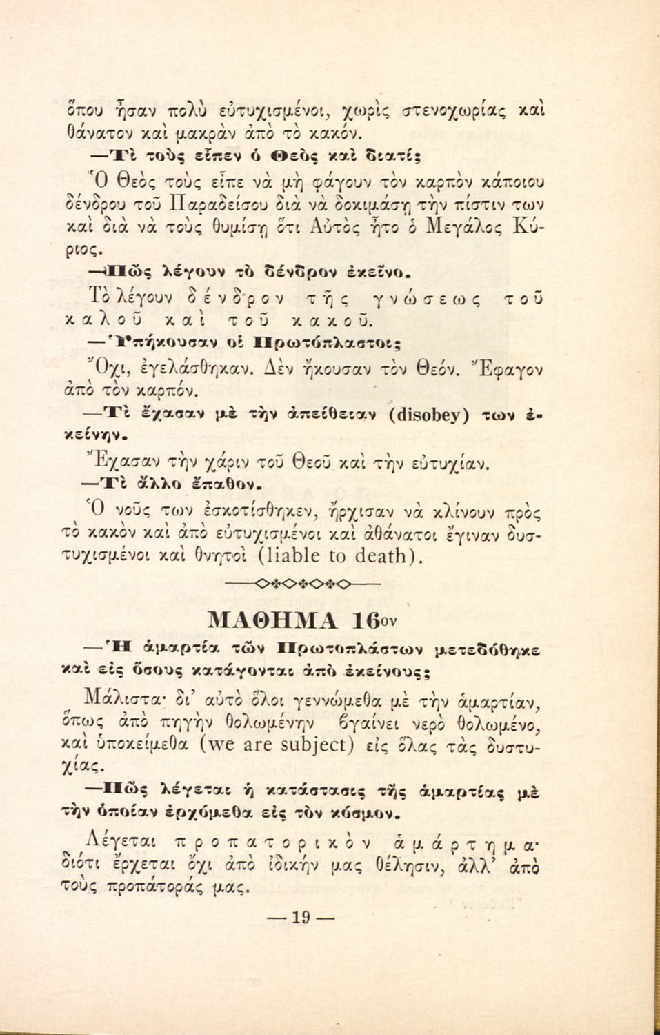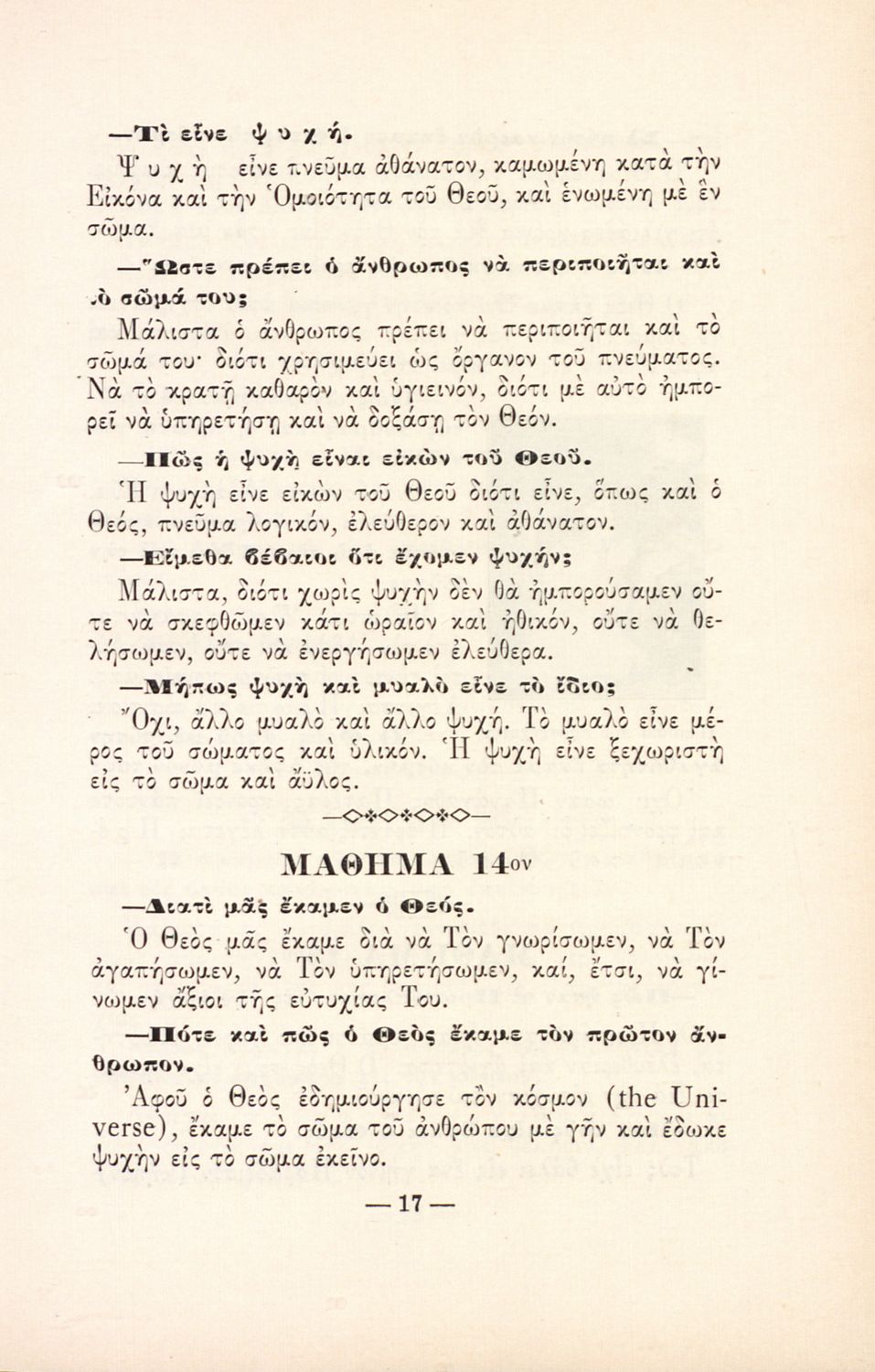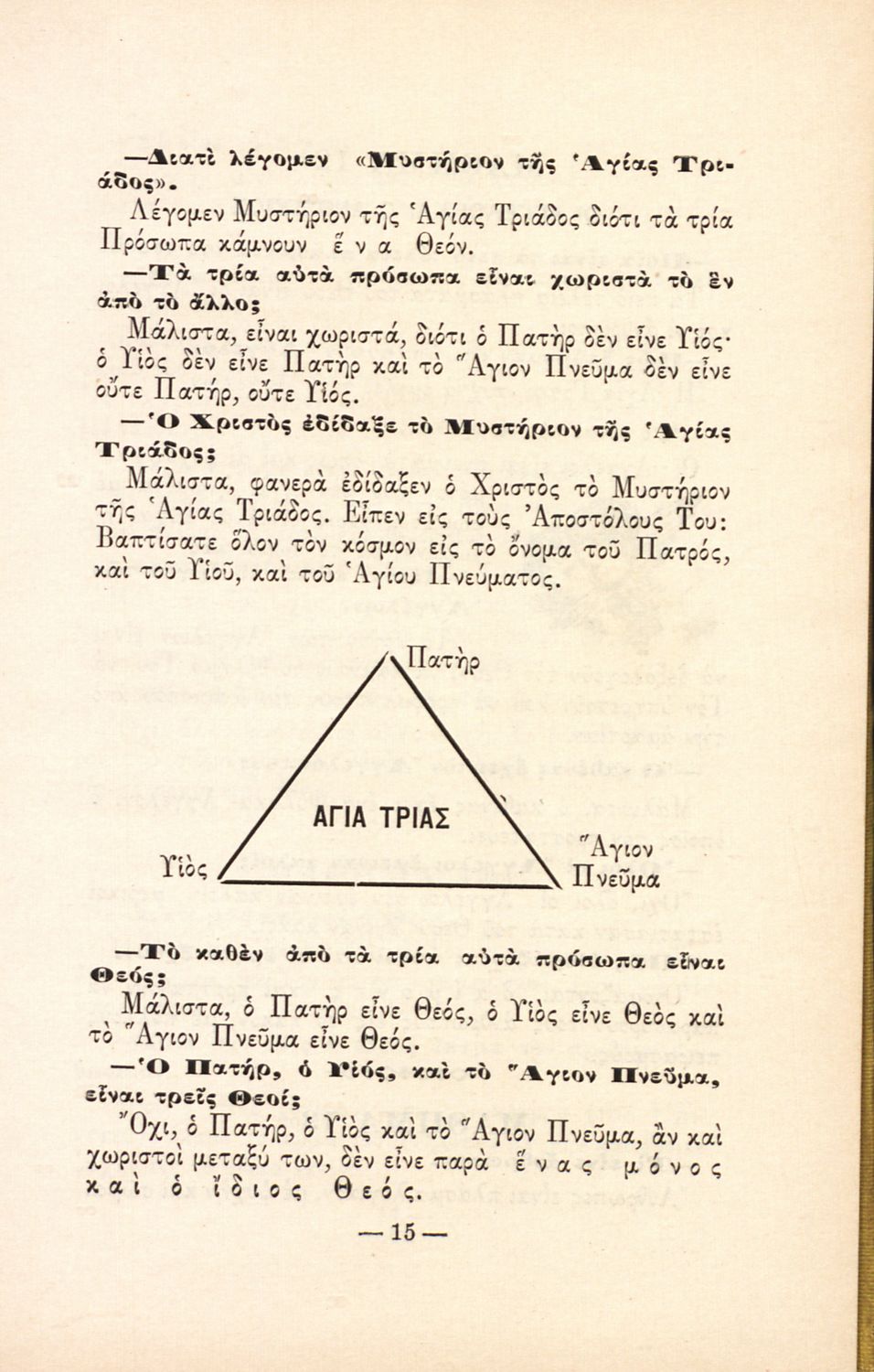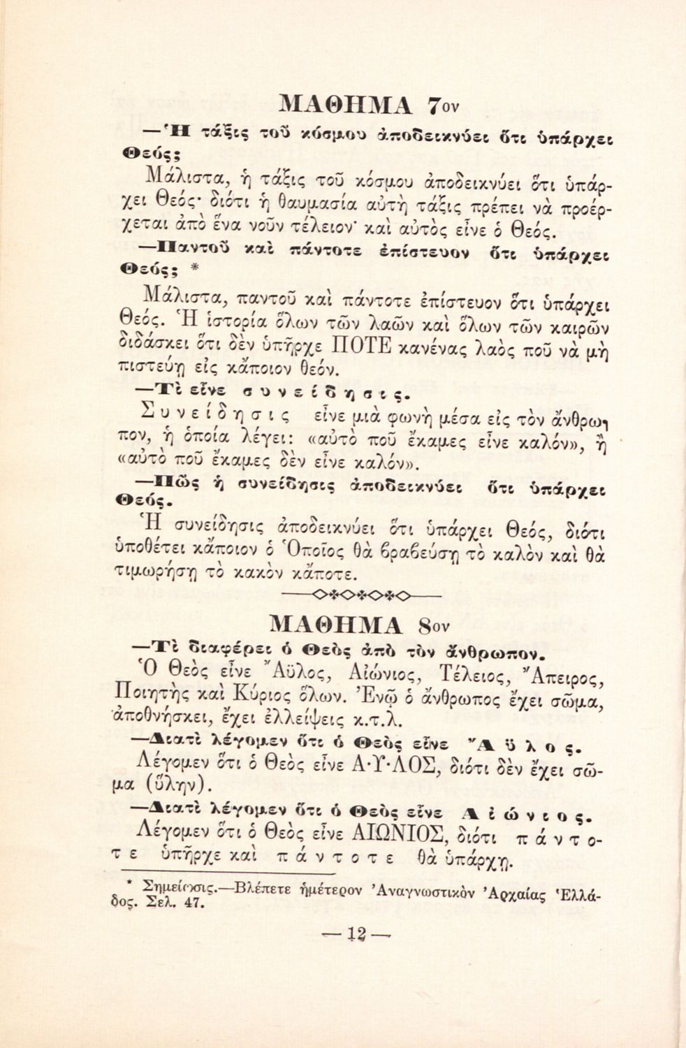 Σχολικό εγχειρίδιο Θρησκευτικών για τους μαθητές του Δημοτικού που, στη βάση ερωταποκρίσεων, αποσκοπεί στη διδασκαλία της χριστιανικής κατήχησης. Περιέχει και προσευχές.