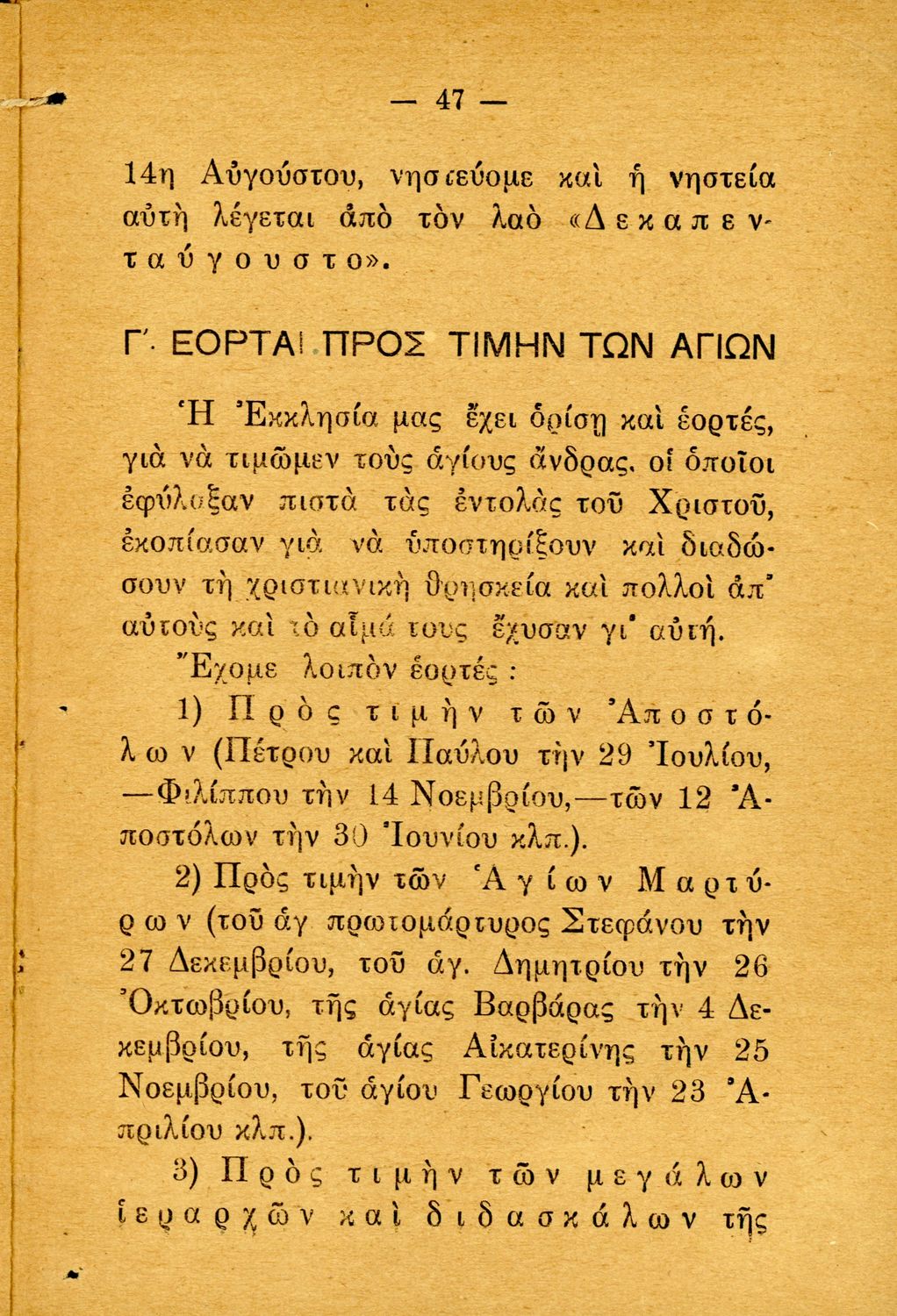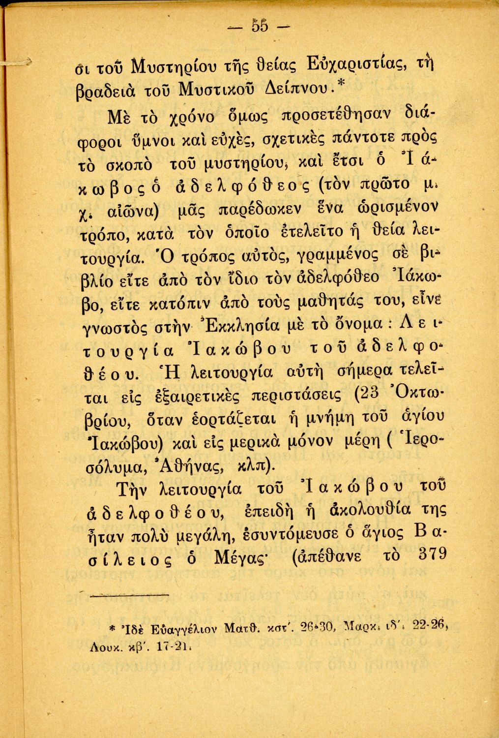 Κωδικός αναγνώρισης: 04-00071 Τίτλος: Λειτουργική διά τα Δημοτικά Σχολεία Συγγραφέας: Δημ. Ι. Κουϊμουτσόπουλος Μέγεθος και υπόστρωμα: Μαθητικό βοήθημα, 17εκ., σκληρό εξώφυλλο, 80 σελίδες. Σκίτσα (ασπρόμαυρα). |