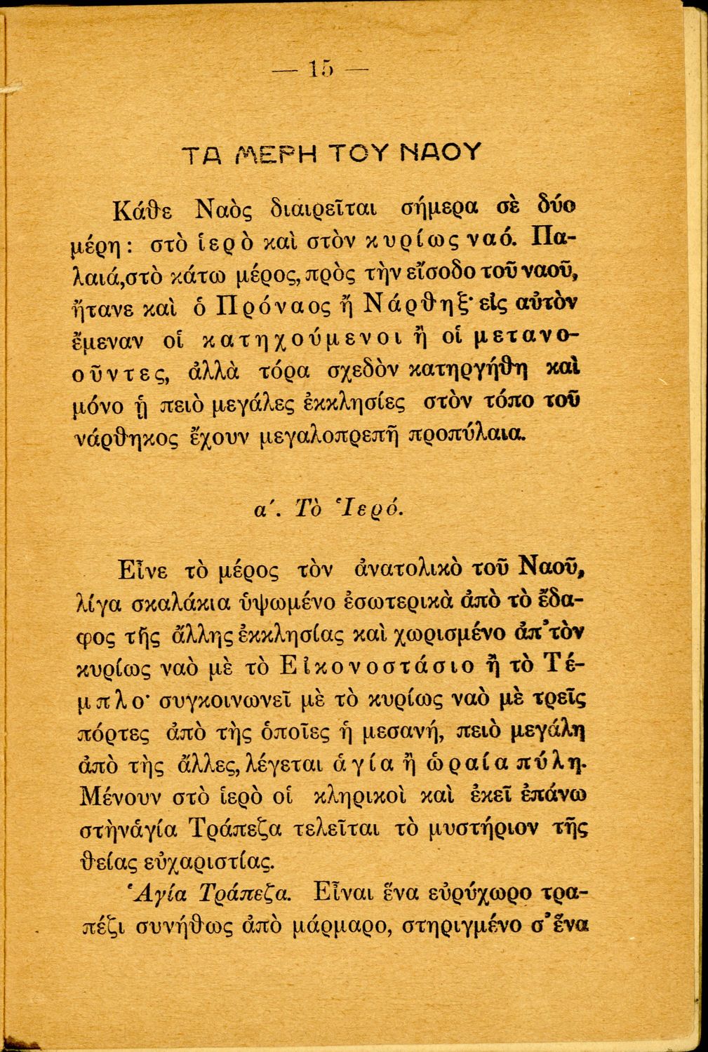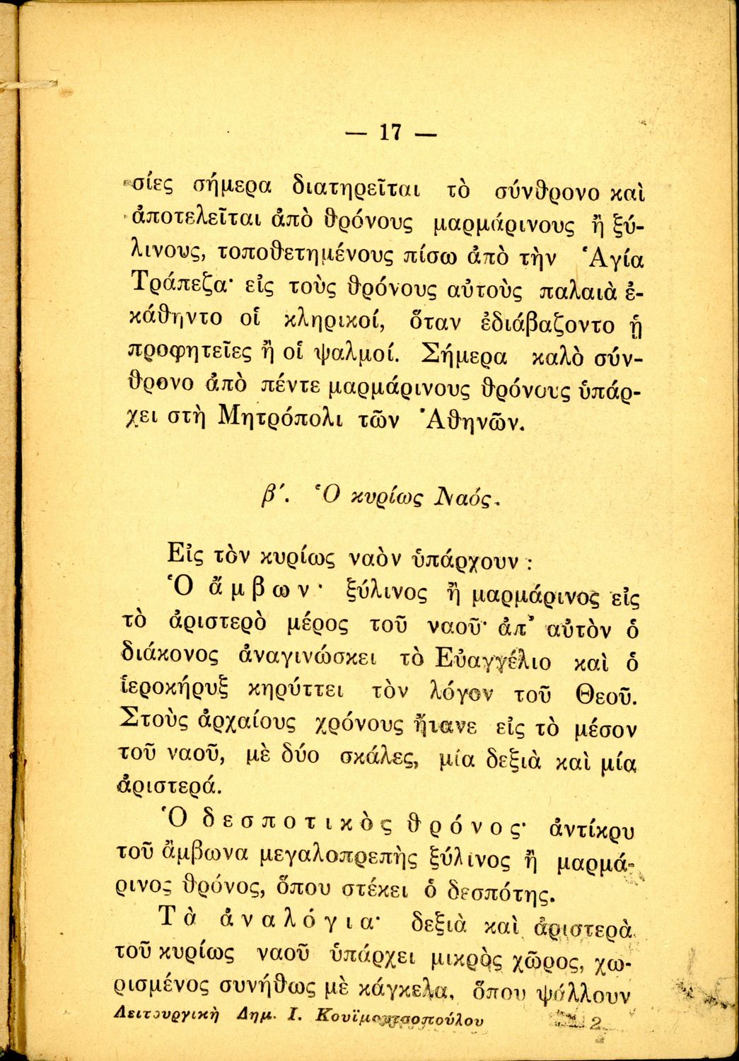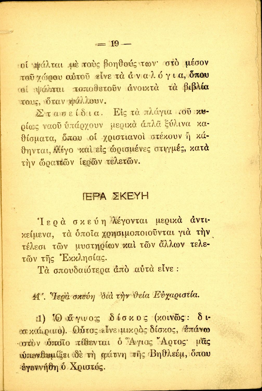 Κωδικός αναγνώρισης: 04-00071 Τίτλος: Λειτουργική διά τα Δημοτικά Σχολεία Συγγραφέας: Δημ. Ι. Κουϊμουτσόπουλος Μέγεθος και υπόστρωμα: Μαθητικό βοήθημα, 17εκ., σκληρό εξώφυλλο, 80 σελίδες. Σκίτσα (ασπρόμαυρα). |