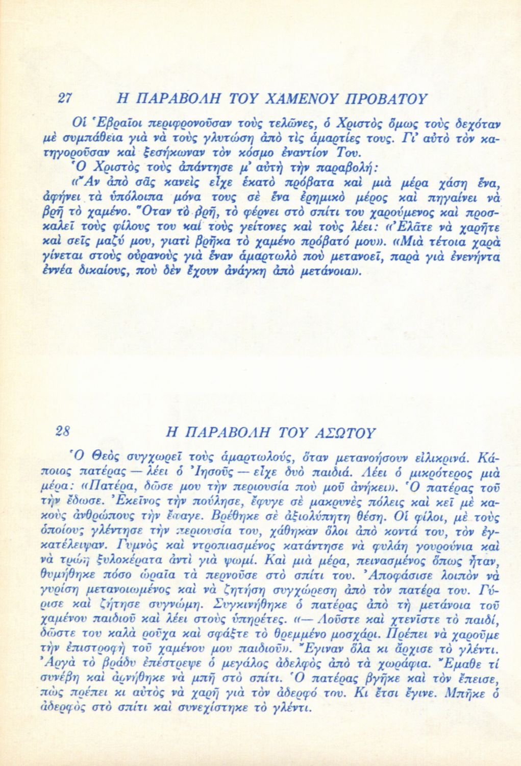 Σχολικό εγχειρίδιο Θρησκευτικών για τα Ελληνικά Σχολεία και τα Παρθεναγωγεία που αποτελεί μια εξιστόρηση της Καινής Διαθήκης από την γέννηση του Ιησού Χριστού ως το έργο των Αποστόλων