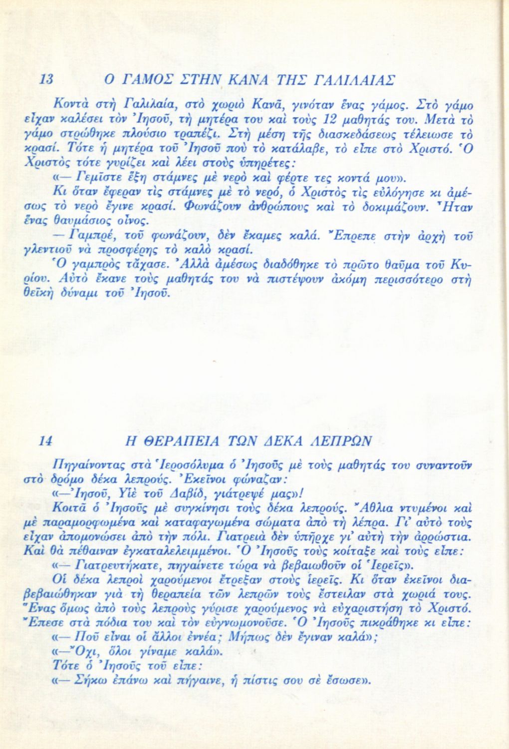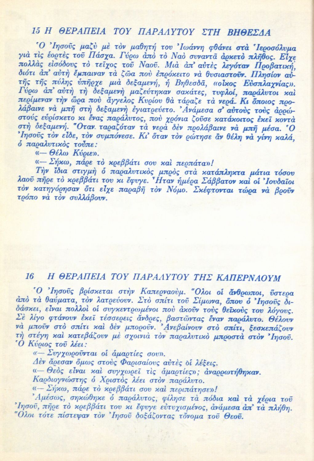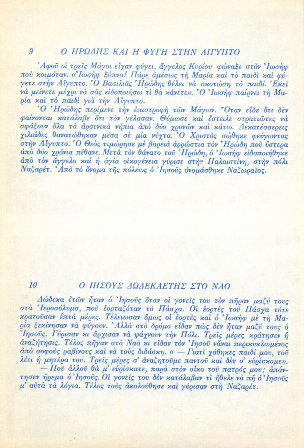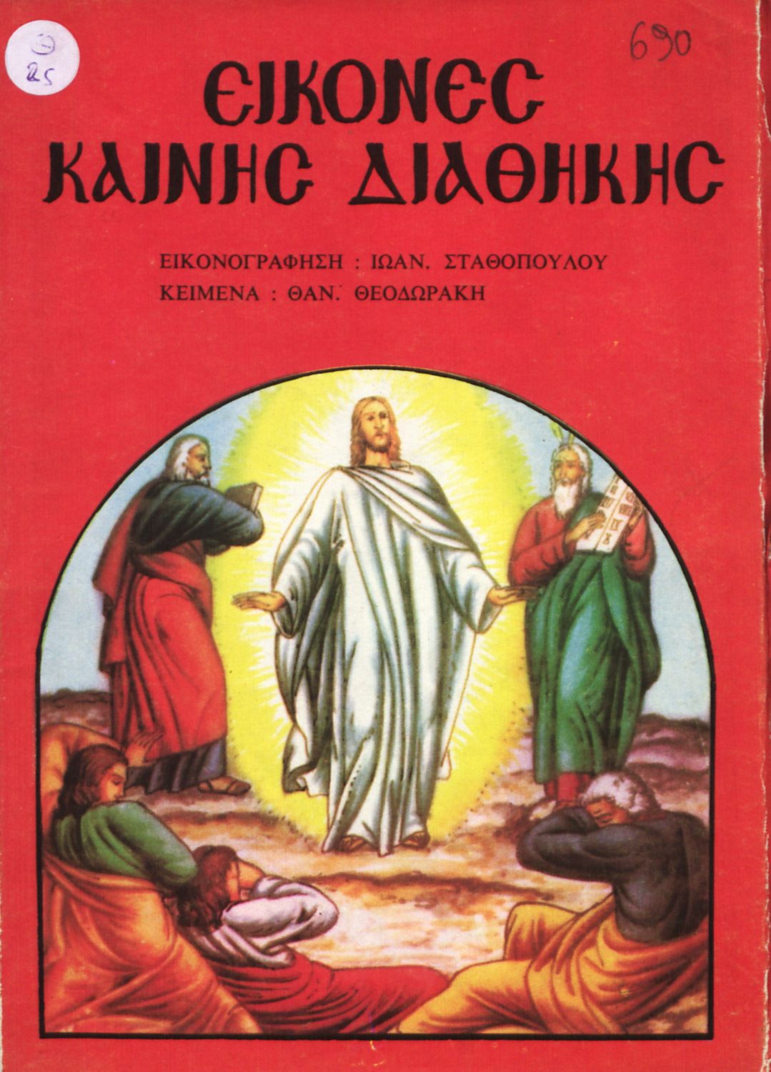 Βαθμίδα εκπαίδευσης: Πρωτοβάθμια Μάθημα: Θρησκευτικά Γλώσσα: Δημοτική με στοιχεία καθαρεύουσας Παρουσίαση περιεχομένου: Μαθητικό βοήθημα Θρησκευτικών που παρουσιάζει την ιστορία της Καινής Διαθήκης μέσα από εικόνες και σύντομα κείμενα. |