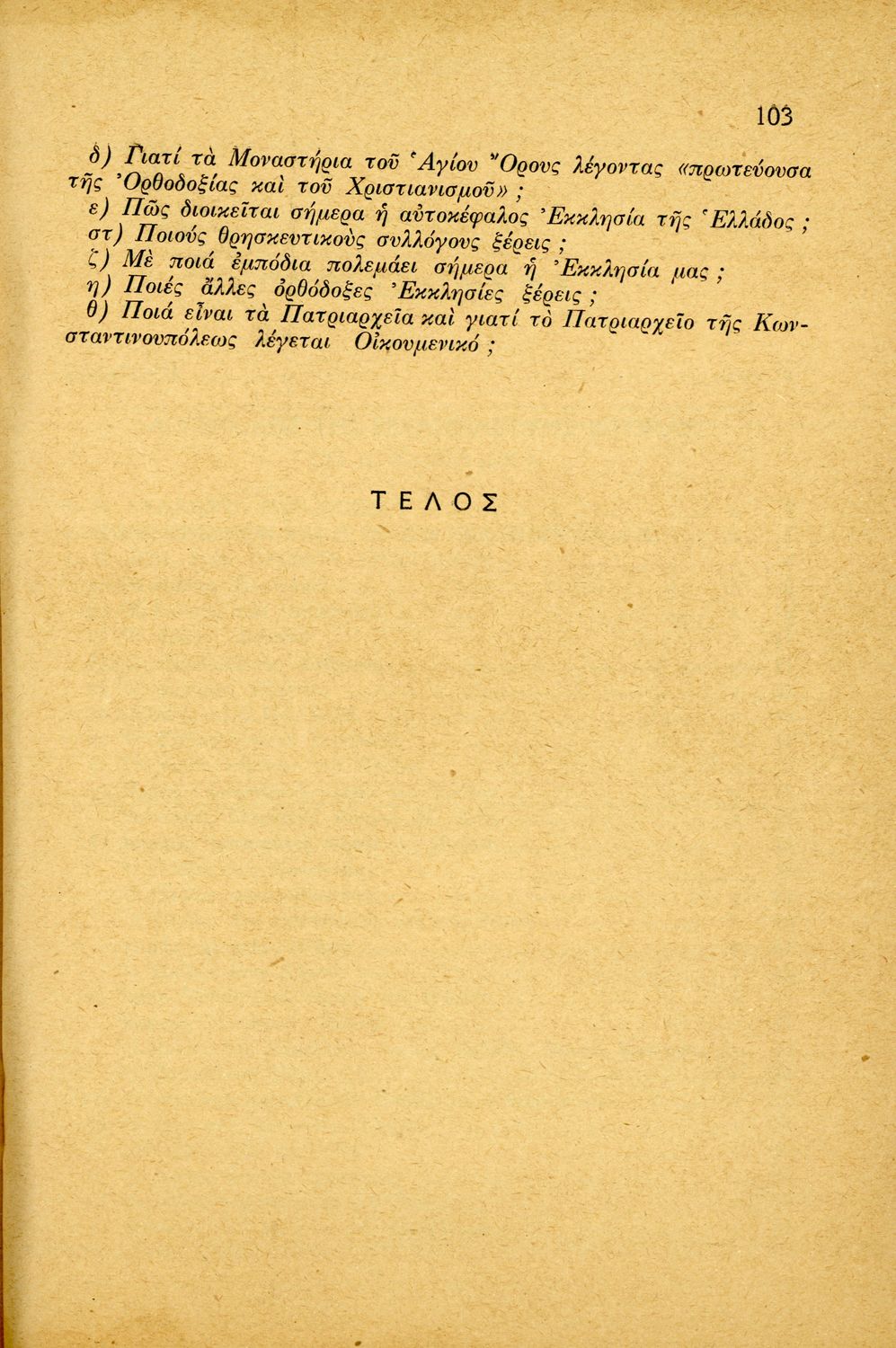 Βαθμίδα εκπαίδευσης: Πρωτοβάθμια Τάξη: Ε' Δημοτικού Μάθημα: Θρησκευτικά Γλώσσα: Δημοτική με στοιχεία καθαρεύουσας Παρουσίαση περιεχομένου: Μαθητικό βοήθημα Θρησκευτικών Ε΄ Δημοτικού που αποτελεί μια ιστορική επισκόπηση της Ορθόδοξης Εκκλησίας από την ίδρυσή της μέχρι την ίδρυση της Εκκλησίας της Ελλάδας. |