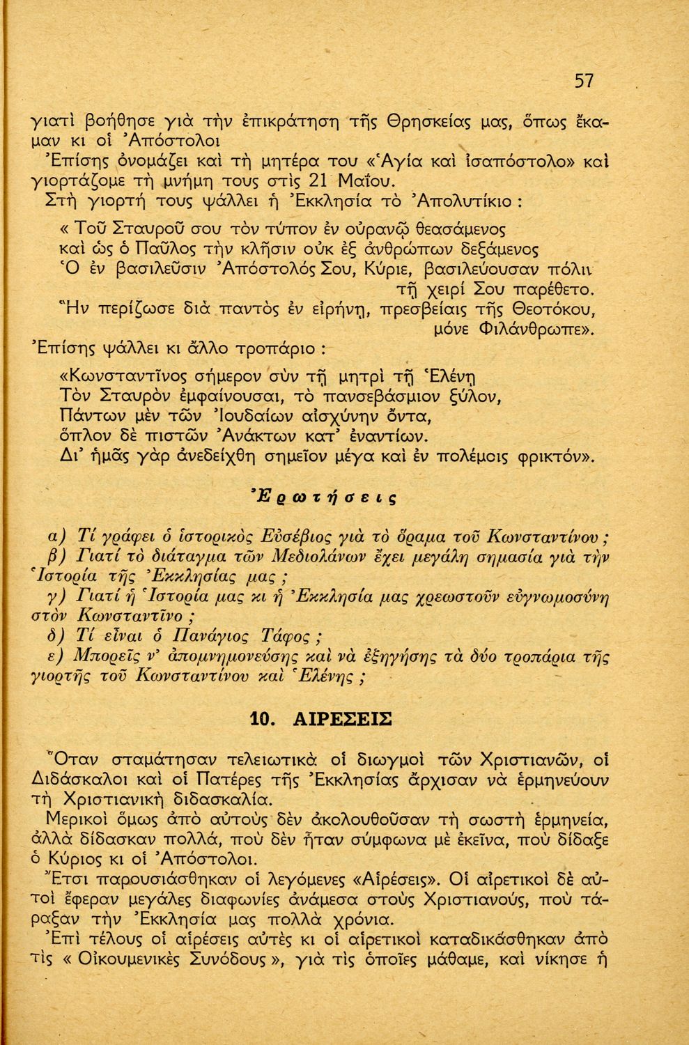 Σχολικό εγχειρίδιο Θρησκευτικών Ε΄ Δημοτικού που περιέχει την ιστορία της Ορθόδοξης Εκκλησίας από την ίδρυσή της μέχρι την δημιουργία της Εκκλησίας της Ελλάδας.