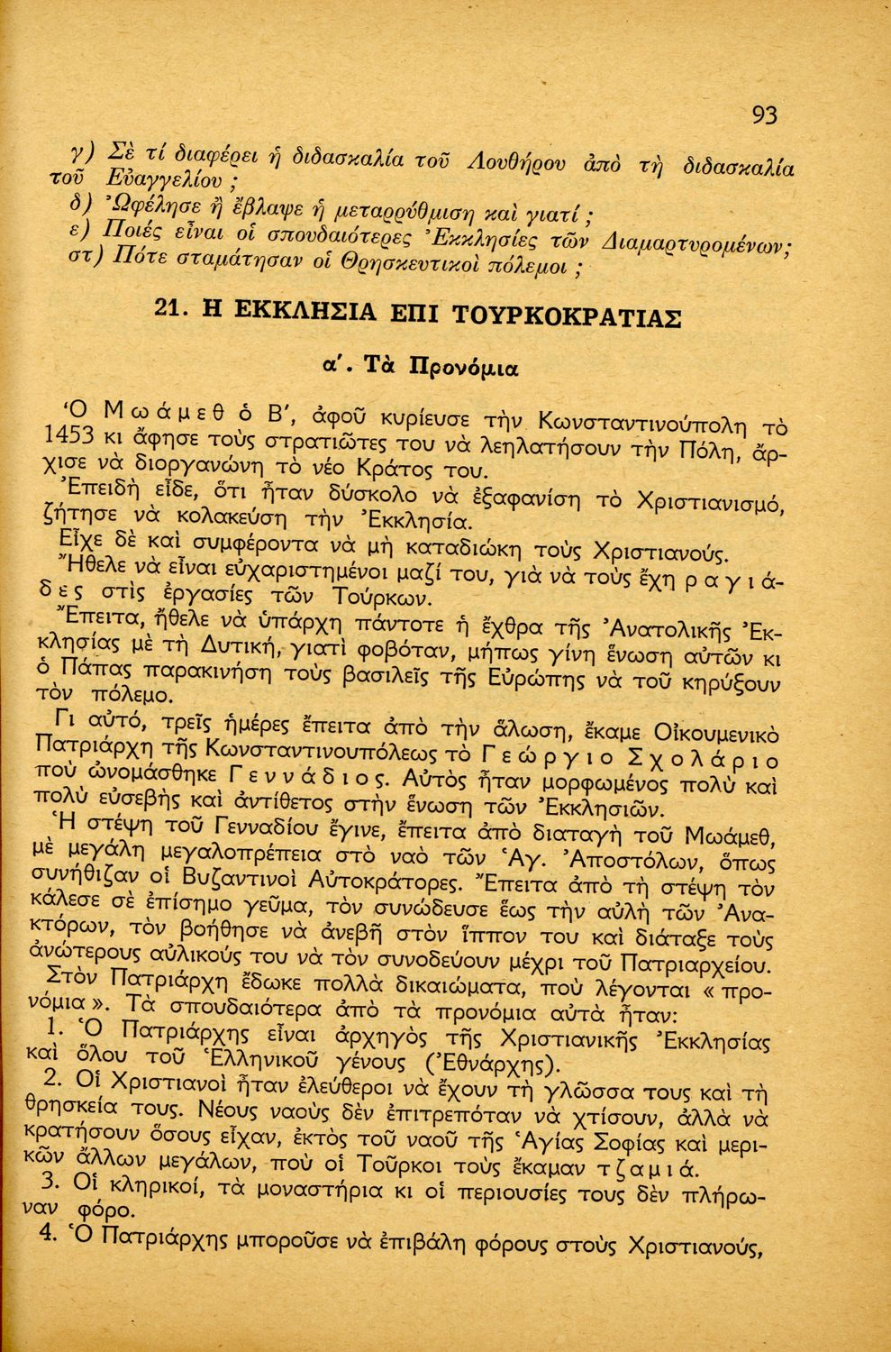 Βαθμίδα εκπαίδευσης: Πρωτοβάθμια Τάξη: Ε' Δημοτικού Μάθημα: Θρησκευτικά Γλώσσα: Δημοτική με στοιχεία καθαρεύουσας Παρουσίαση περιεχομένου: Μαθητικό βοήθημα Θρησκευτικών Ε΄ Δημοτικού που αποτελεί μια ιστορική επισκόπηση της Ορθόδοξης Εκκλησίας από την ίδρυσή της μέχρι την ίδρυση της Εκκλησίας της Ελλάδας. |