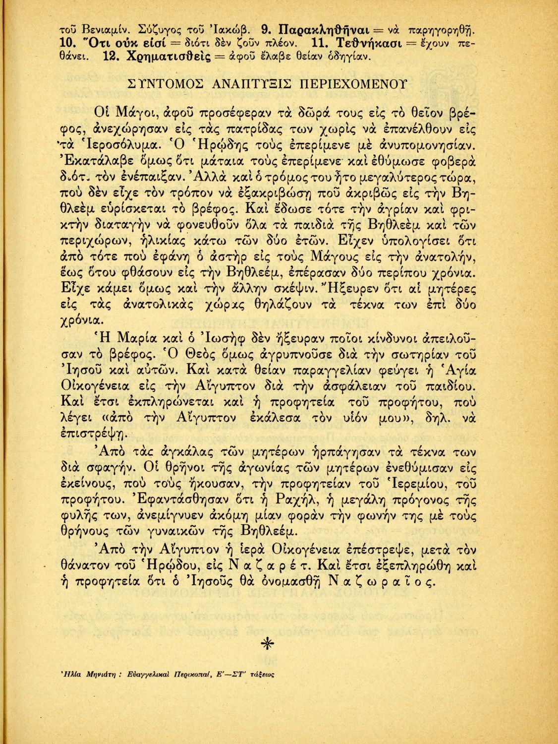Μαθητικό βοήθημα Θρησκευτικών για τις Ε΄ και ΣΤ΄ Δημοτικού που περιλαμβάνει εισαγωγικά σχόλια στα βιβλία της Παλαιάς και Καινής Διαθήκης, βιογραφικά σημειώματα των ευαγγελιστών περικοπές, και ερμηνευτικές και πραγματολογικές σημειώσεις.