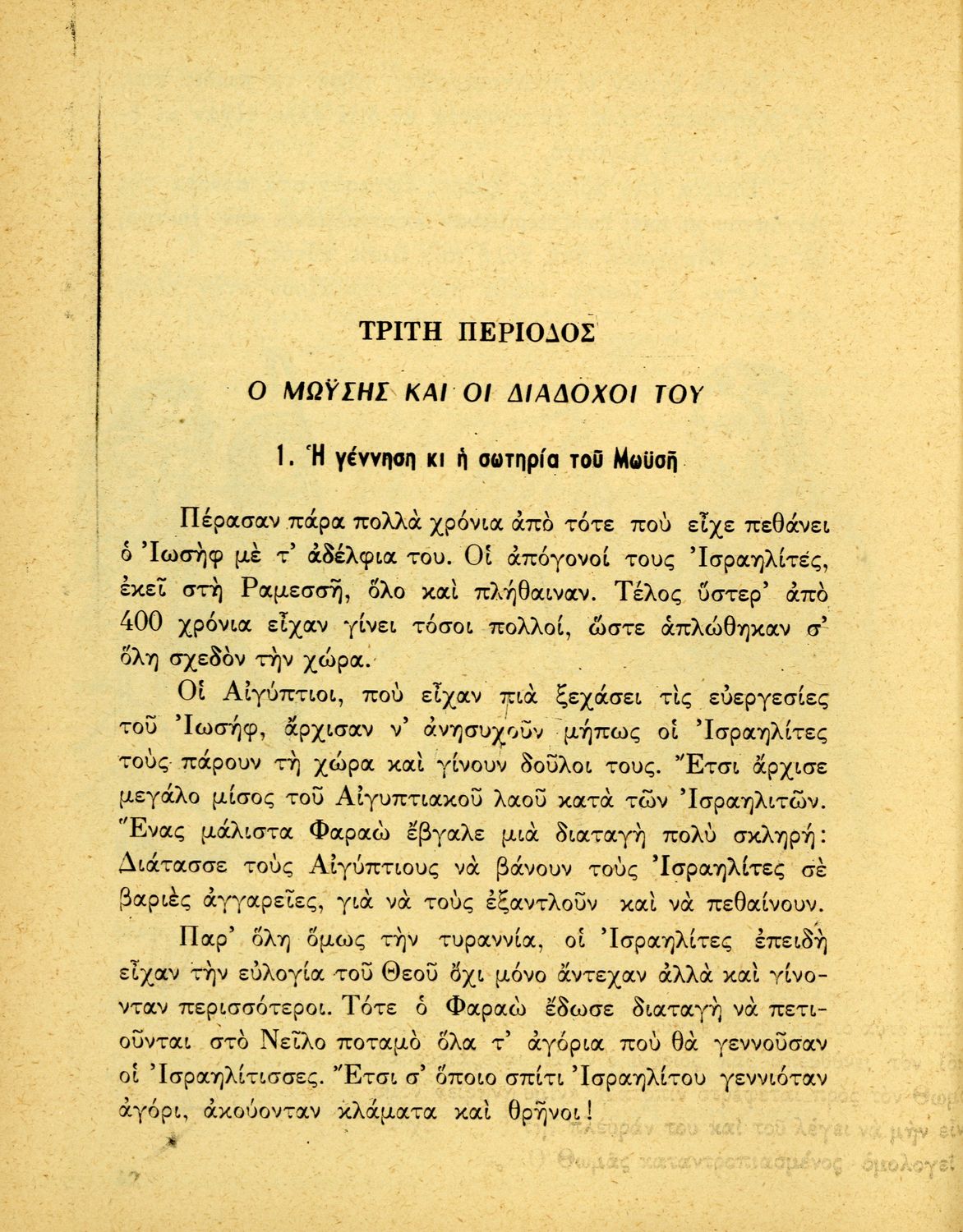 Σχολικό εγχειρίδιο Θρησκευτικών για την Γ΄ Δημοτικού. Περιέχει ιστορίες από την Παλαιά Διαθήκη. Ο Αντ. Μαθάς υπήρξε θεολόγος και ο Λάζ. Γαβαλάς παιδαγωγός.