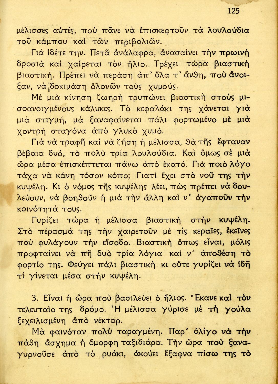 Αναγνωστικό Γ΄ Δημοτικού που περιλαμβάνει ποιήματα και πεζά εμπνευσμένα από τη ζωή της υπαίθρου, την οικογενειακή και κοινωνική ζωή και το εθνικό παρελθόν. Αποτυπώνει τις ιδεολογικές προκείμενες του μεταξικού ...