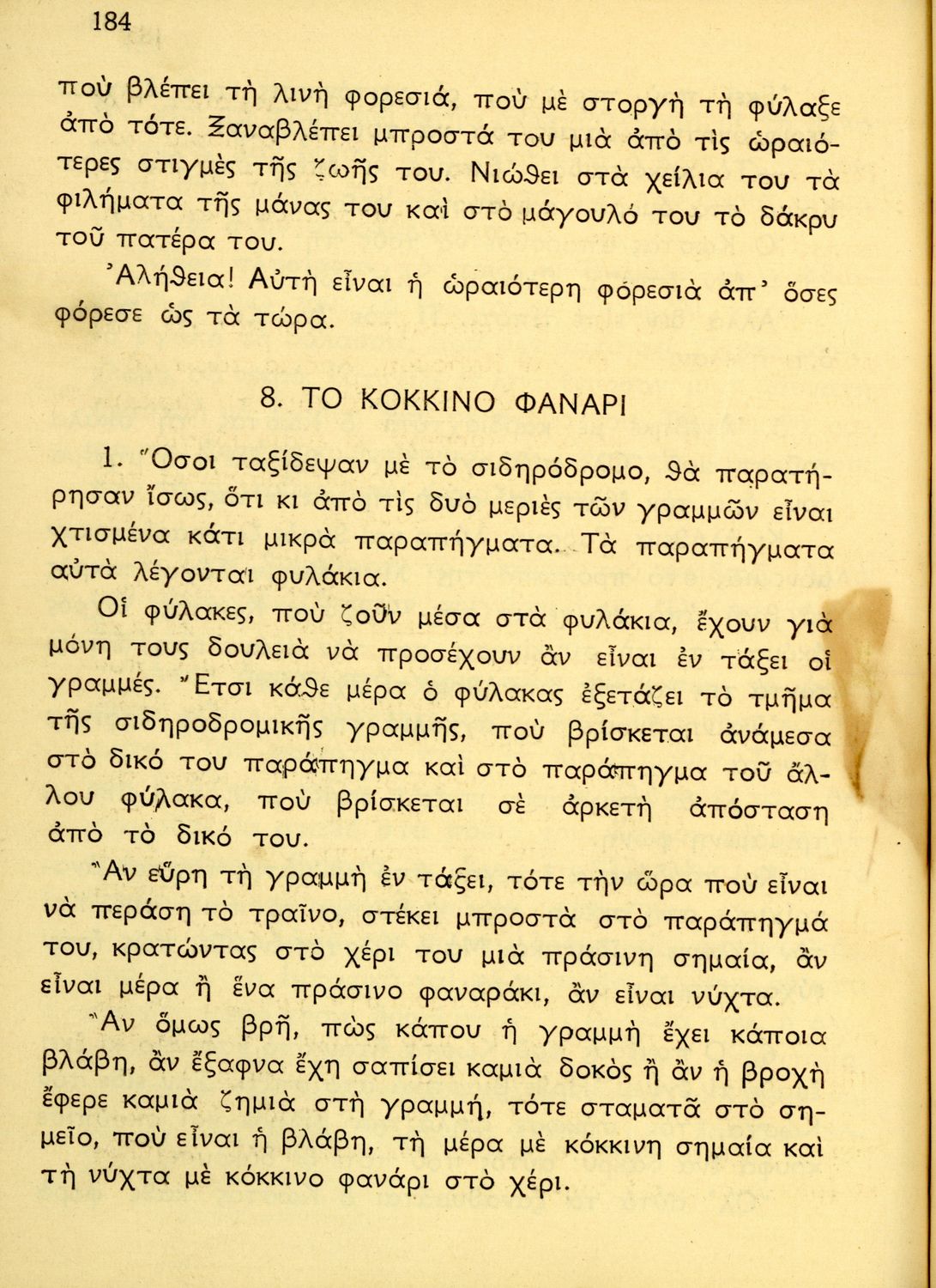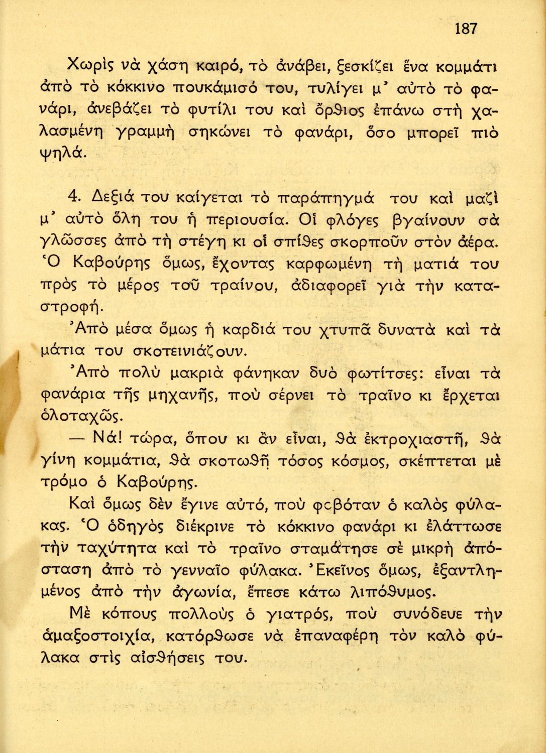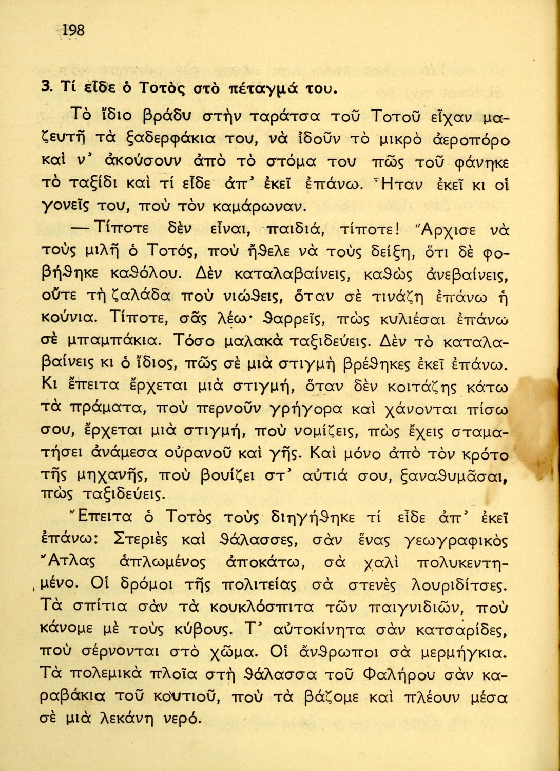 Αναγνωστικό Δ΄ Δημοτικού που περιλαμβάνει θέματα από την θρησκευτική, οικογενειακή και σχολική ζωή του παιδιού, την ελληνική μυθολογία και ιστορία και τη ζωή των ζώων.