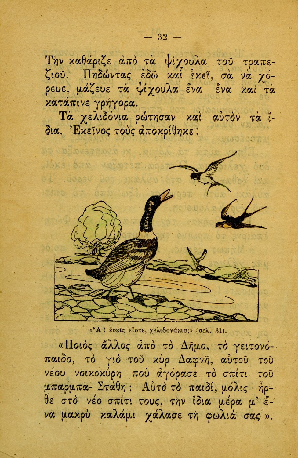 Κωδικός αναγνώρισης: 04-00084 Τίτλος: Πουλιά και παιδιά. Αλφαβητάριο μέρος β΄ Συγγραφέας: Δημοσθένης Μ. Ανδρεάδης Εικονογράφος: Φωκ. Δημητριάδης Μέγεθος και υπόστρωμα: Σχολικό εγχειρίδιο, σκληρό εξώφυλλο, 86 σελίδες. Σκίτσα (ασπρόμαυρα). |