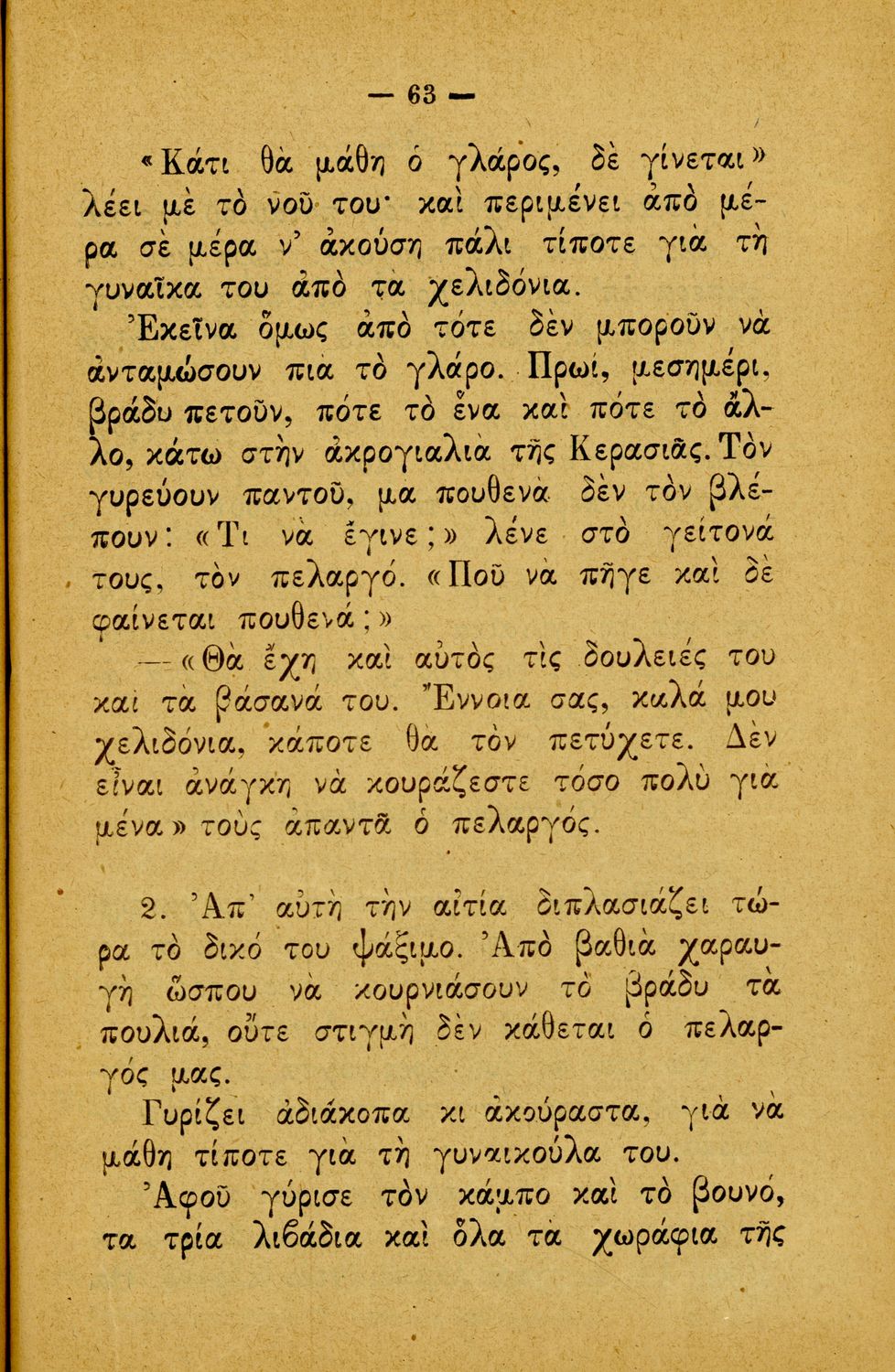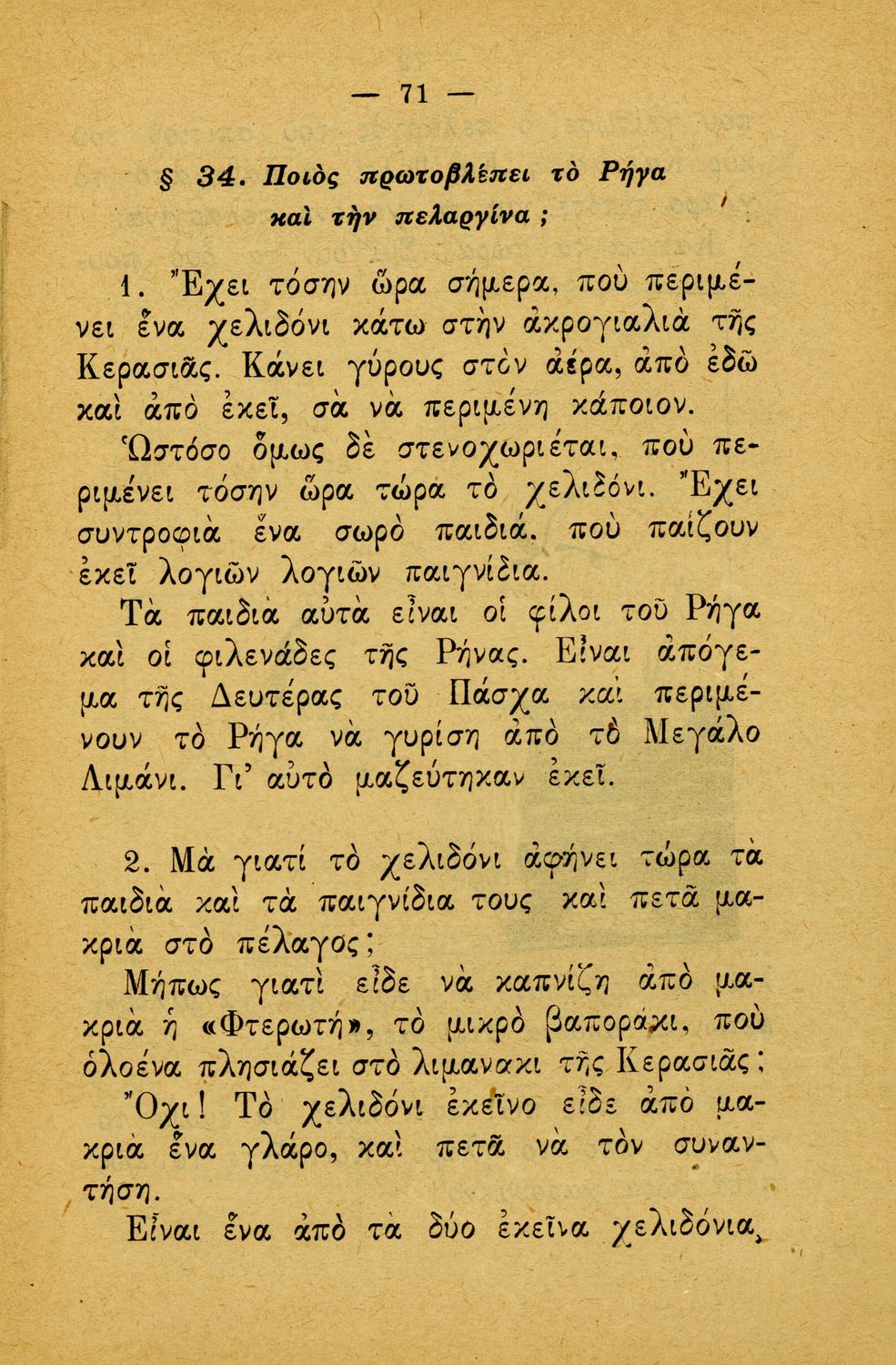 Αναγνωστικό Α΄ Δημοτικού που περιέχει μικρές αφηγηματικές ιστορίες και ποιήματα του Πάλλη και του Πολέμη με ηθικοπλαστικό περιεχόμενο.