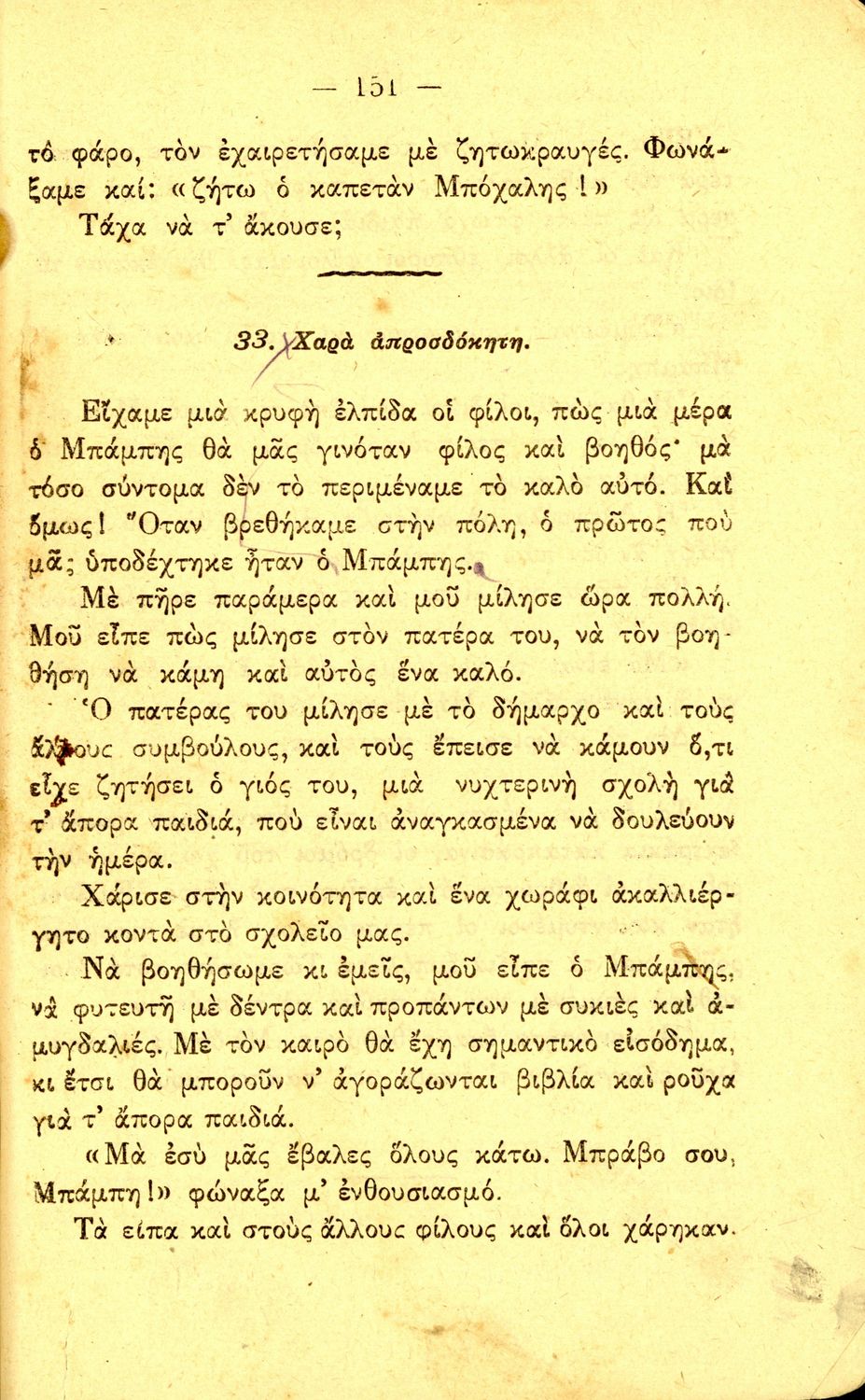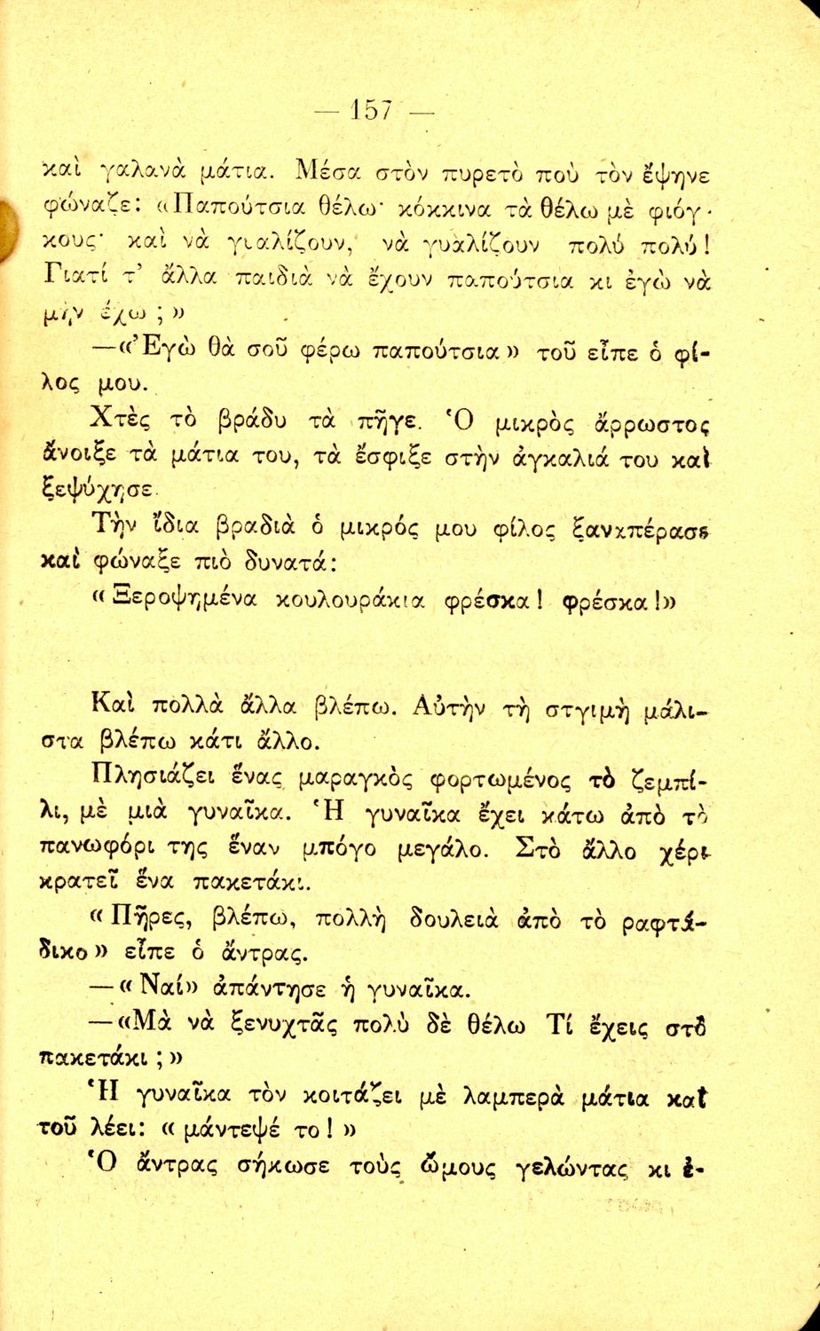 520 ## _aΑναγνωστικό Γ΄ Δημοτικού που περιλαμβάνει διηγήματα εμπνευσμένα από την οικογενειακή ζωή, την ελληνική ύπαιθρο, τις διαπροσωπικές σχέσεις και τα επαγγέλματα και τις ασχολίες των ανθρώπων. Περιέχει και 6 τραγούδια με τις παρτιτούρες τους.