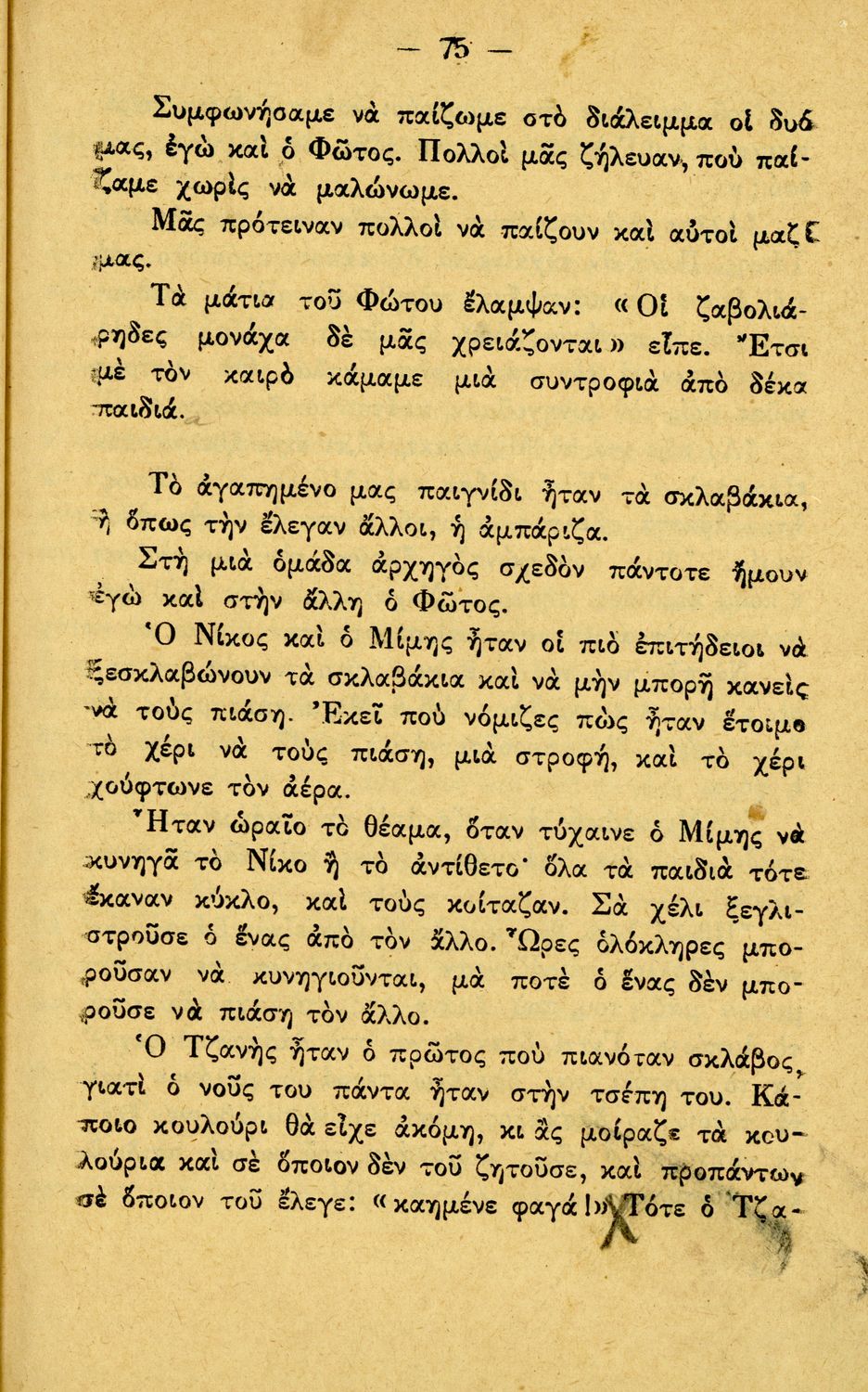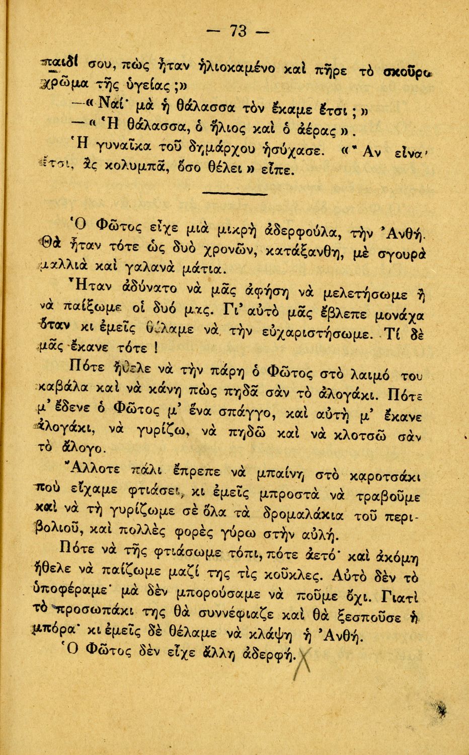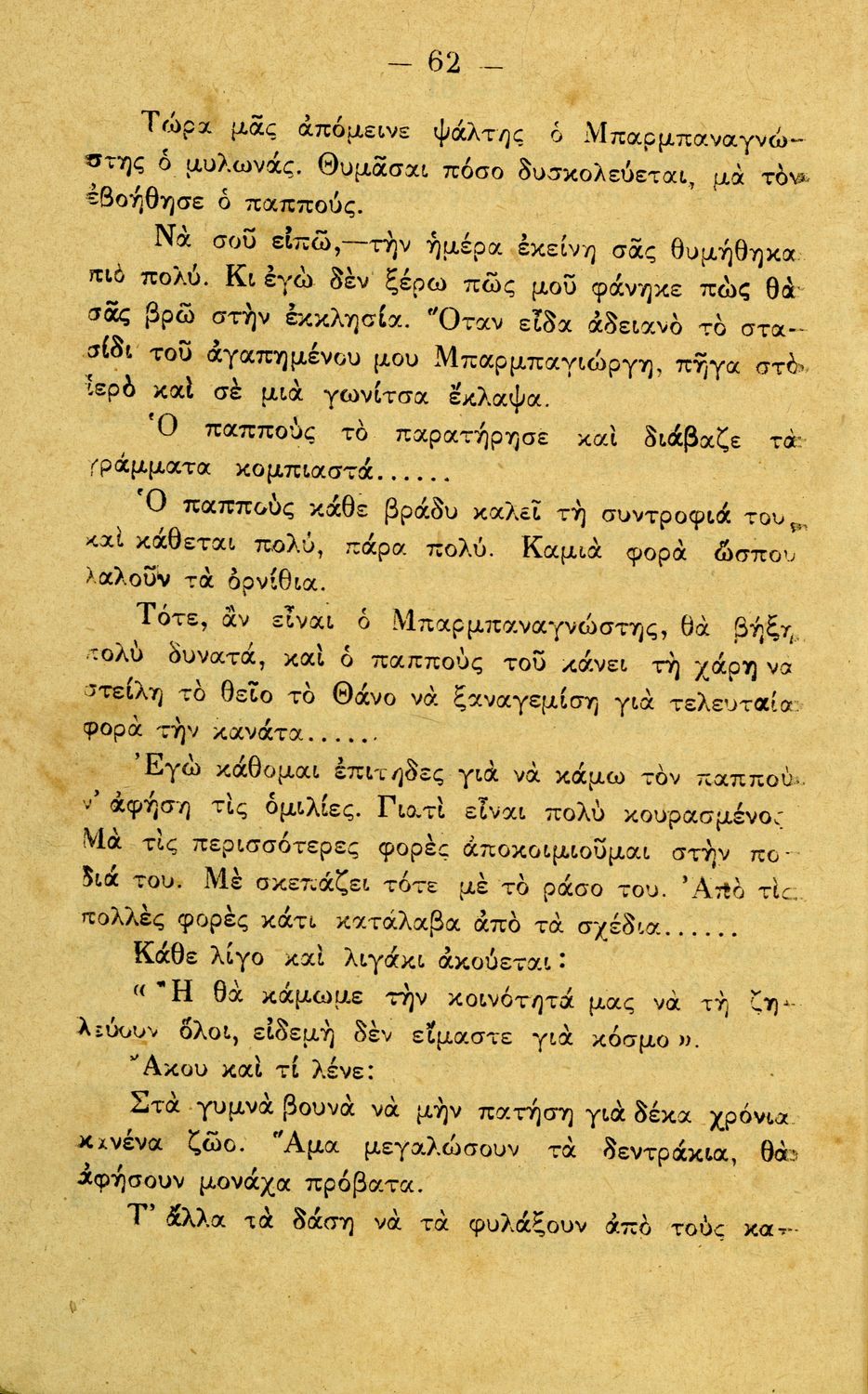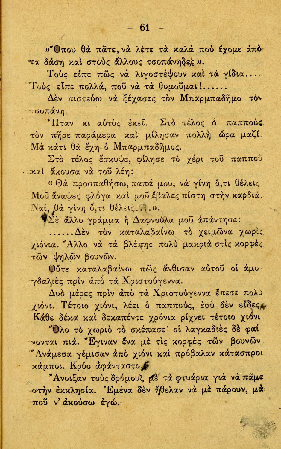 Αναγνωστικό Γ΄ Δημοτικού που περιλαμβάνει διηγήματα εμπνευσμένα από την οικογενειακή ζωή, την ελληνική ύπαιθρο, τις διαπροσωπικές σχέσεις και τα επαγγέλματα και τις ασχολίες των ανθρώπων. Περιέχει και 6 τραγούδια με τις παρτιτούρες τους.