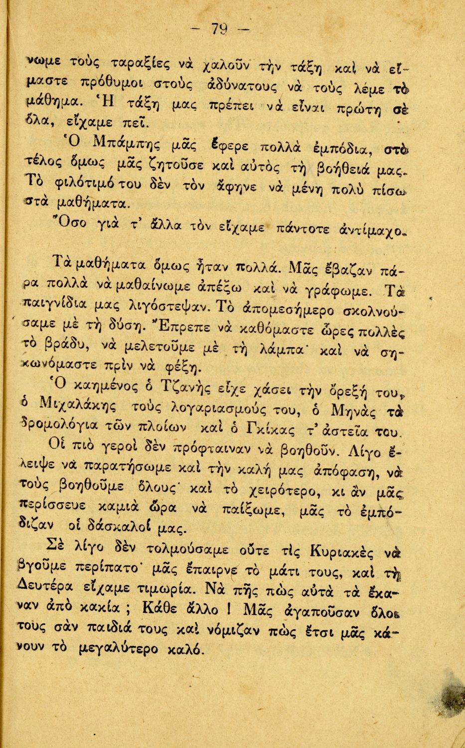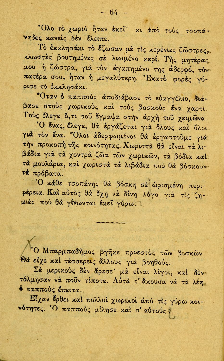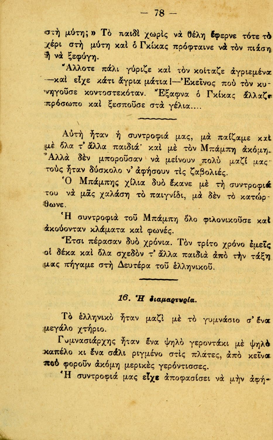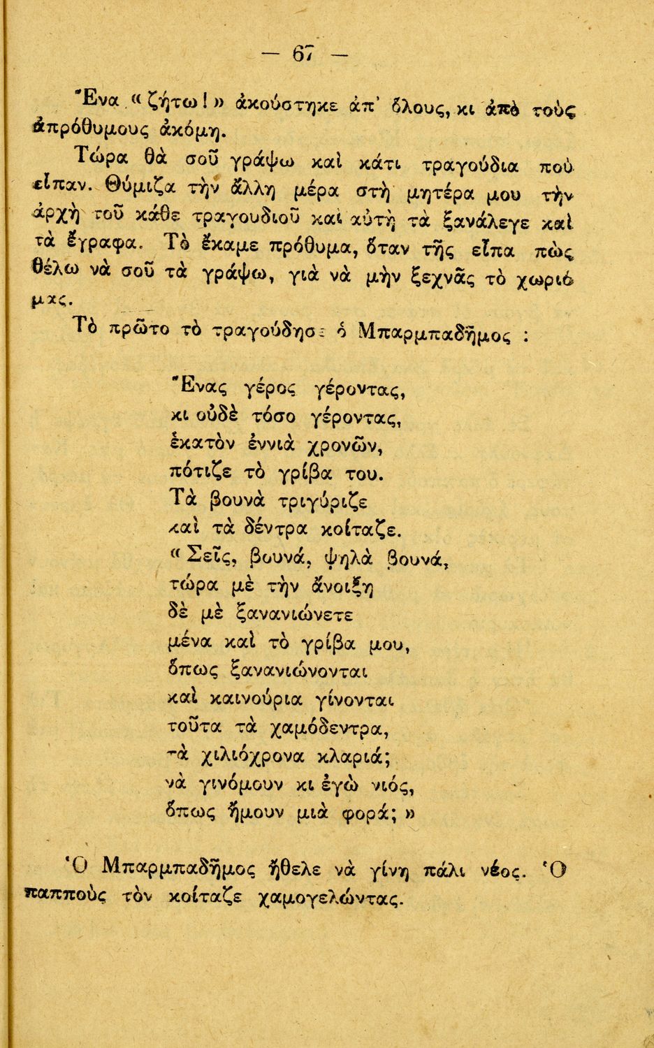 Αναγνωστικό Γ΄ Δημοτικού που περιλαμβάνει διηγήματα εμπνευσμένα από την οικογενειακή ζωή, την ελληνική ύπαιθρο, τις διαπροσωπικές σχέσεις και τα επαγγέλματα και τις ασχολίες των ανθρώπων. Περιέχει και 6 τραγούδια με τις παρτιτούρες τους.