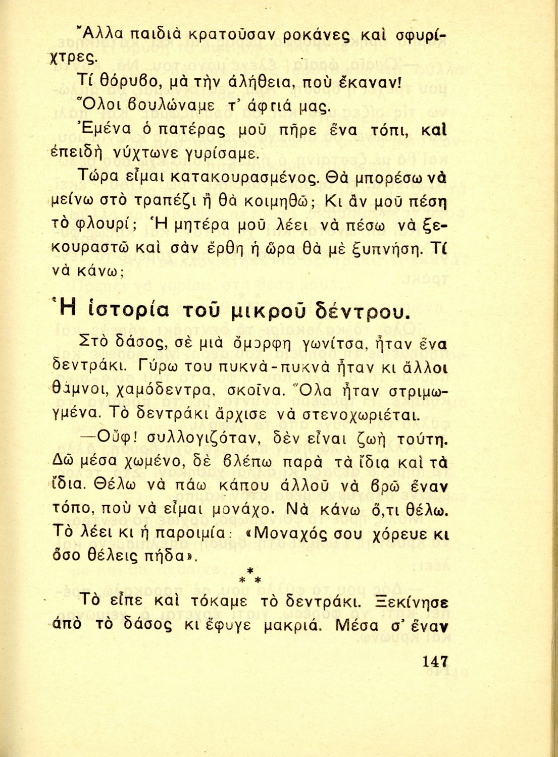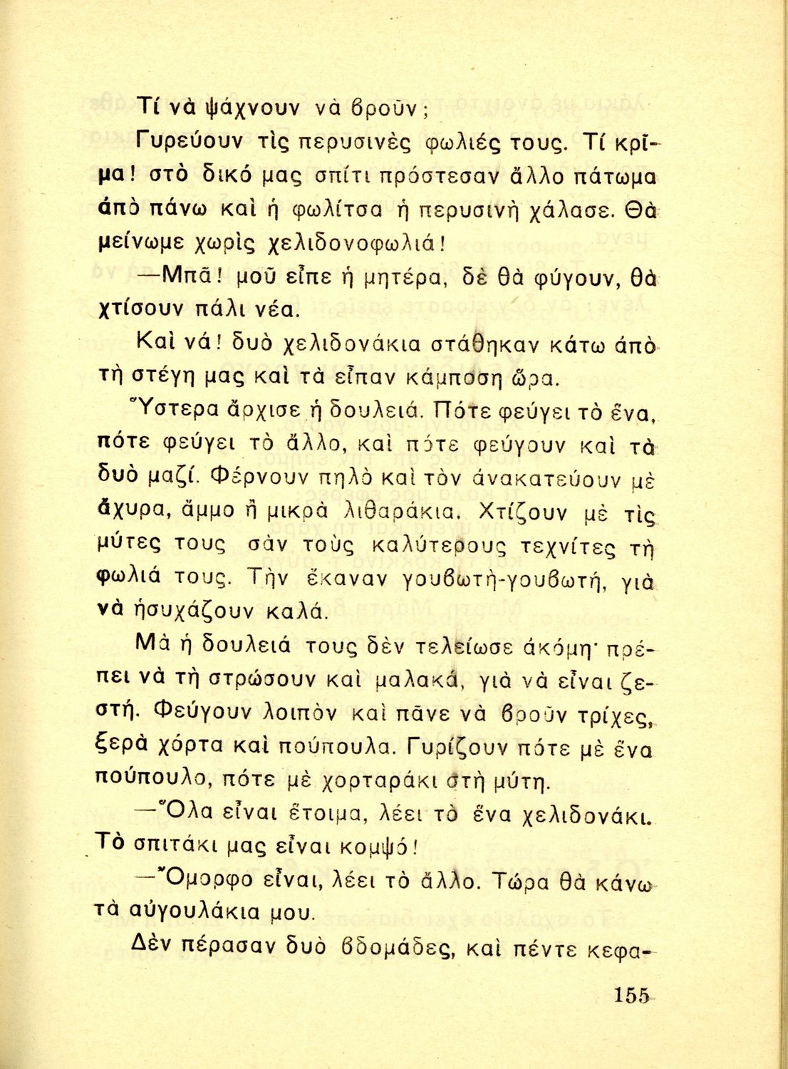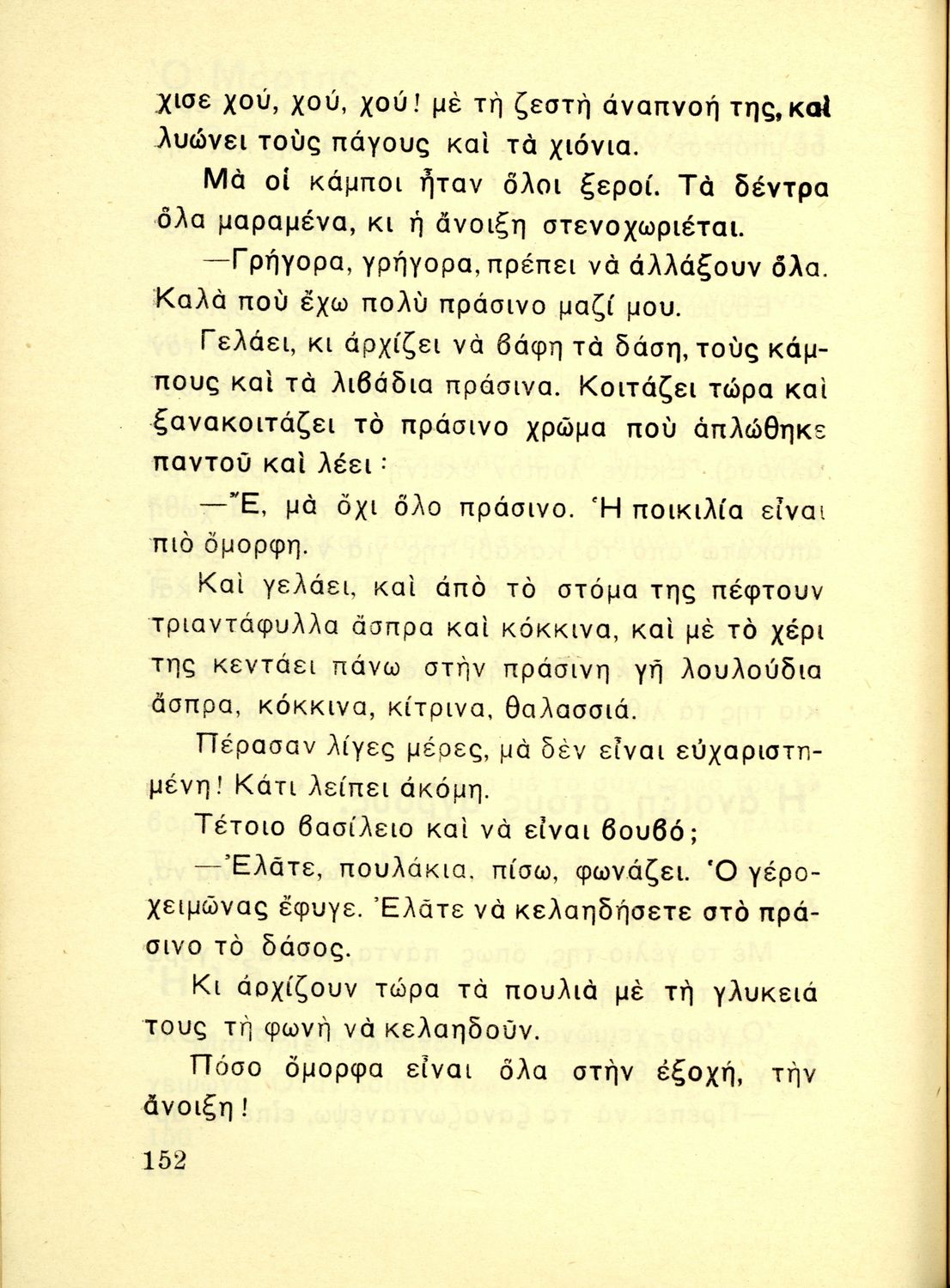 Αναγνωστικό Β΄ Δημοτικού που περιέχει ποιήματα και πεζά που αντλούν τα θέματά τους από τη φύση και την παράδοση της Ελλάδας και την κοινωνική και επαγγελματική ζωή των κατοίκων της.