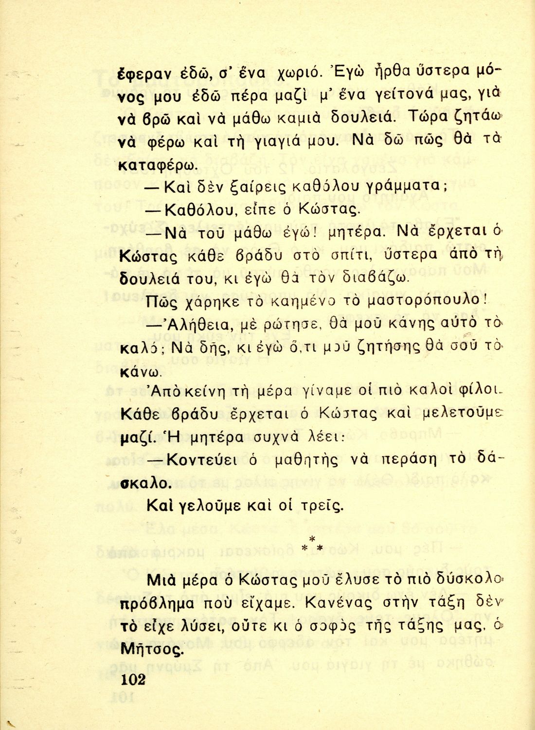 Αναγνωστικό Β' Δημοτικού που περιλαμβάνει ποιήματα και πεζά που αντλούν τα θέματά του από την καθημερινή ζωή των ανθρώπων.