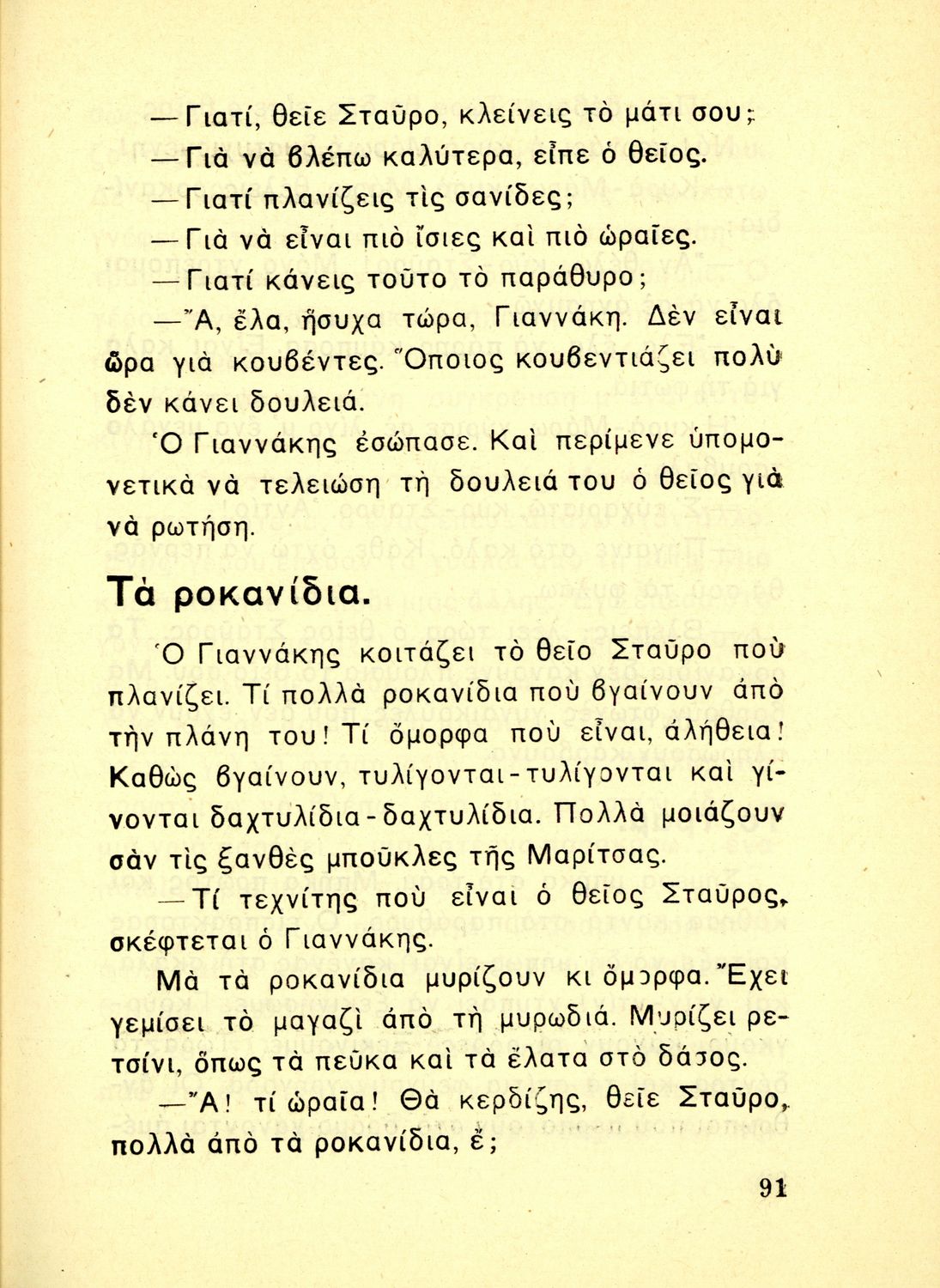 Αναγνωστικό για τους μαθητές της Β' τάξης του Δημοτικού. Περιέχει κείμενα που αντλούν τα θέματα τους από τη φύση και την παράδοση του τόπου.