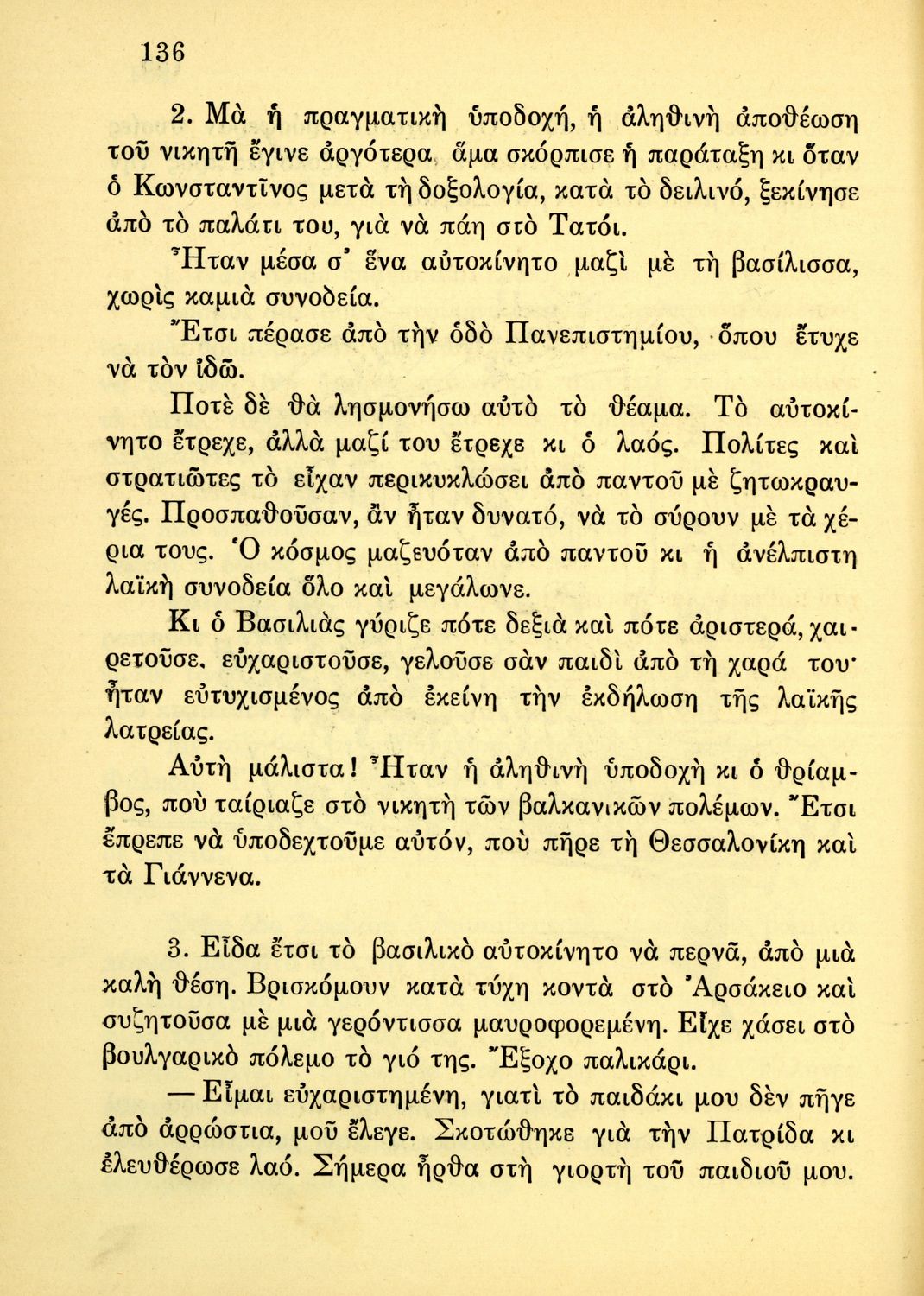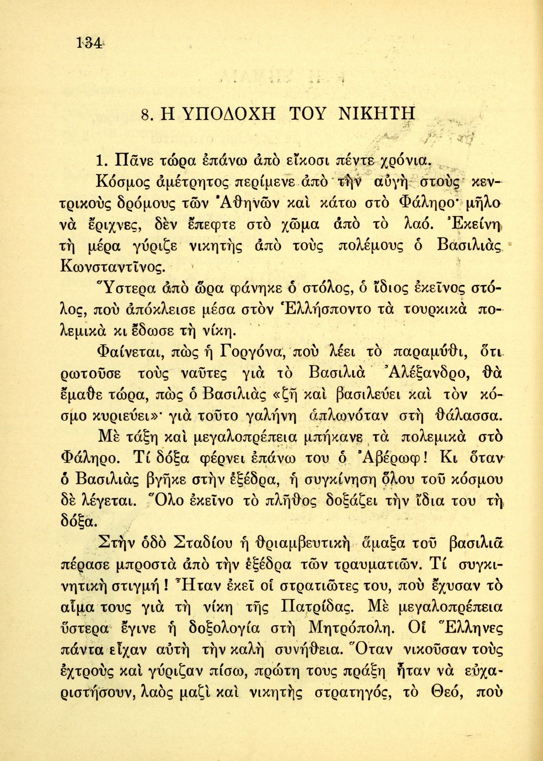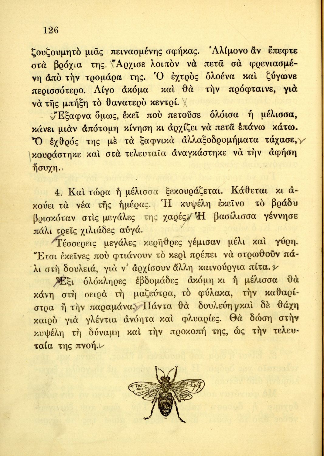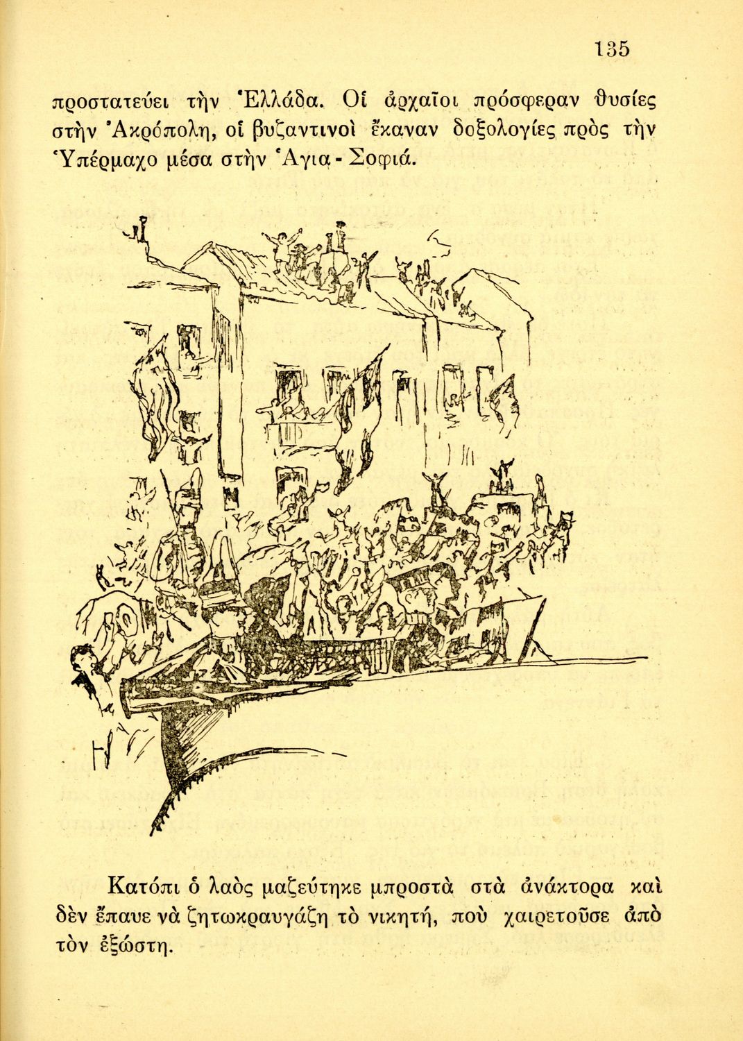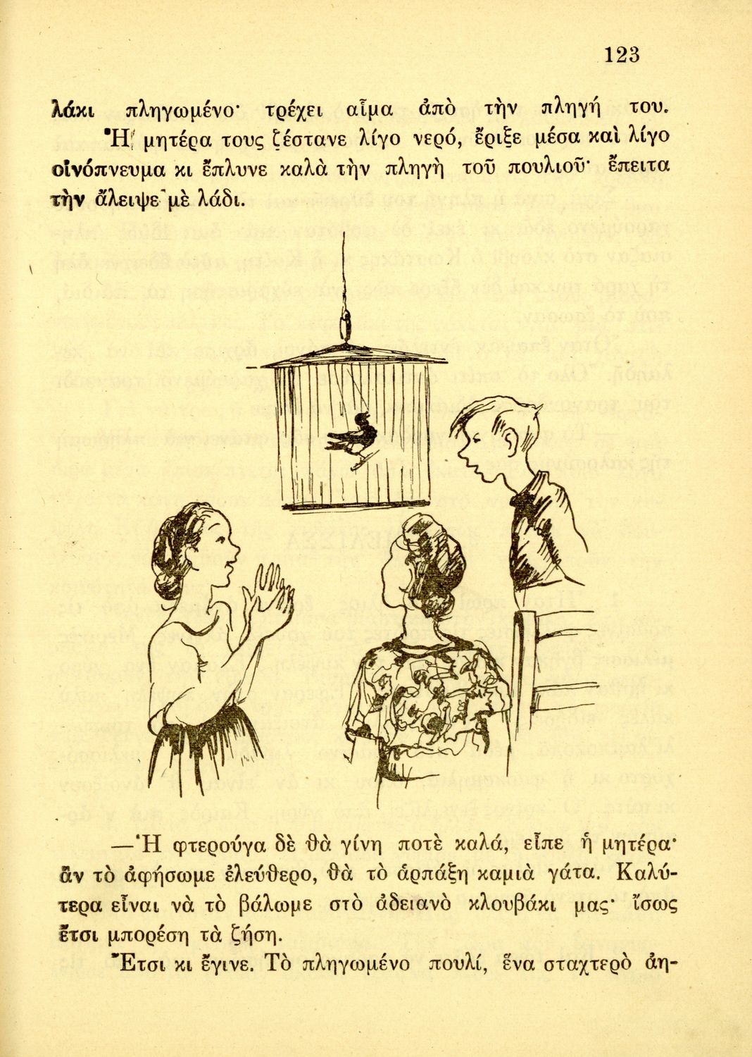 Αναγνωστικό Δ΄ Δημοτικού που περιέχει κείμενα εμπνευσμένα από την ζωή στην ύπαιθρο, την οικογενειακή ζωή, την αγάπη για τα ζώα, τη θρησκευτική παράδοση, την κοινωνική ζωή, την εθνική ζωή και προσήλωση στα εθνικά σύμβολα. 'Όντας σχολικό βιβλίο του μεταξικού καθεστώτος περιέχει χαρακτηριστικά δείγματα της μεταξικής προπαγάνδας και λογικής που παρουσιάζουν τον Ι. Μεταξά, ως μάγο, αρχηγό και κυβερνήτη της Ελλάδας. Όπως όλα τα βιβλία του καθεστώτος φέρει τη ρήση του Μεταξά "Είστε Ελληνόπουλα και είναι μεγάλο πράγμα να είναι κανείς Έλλην".