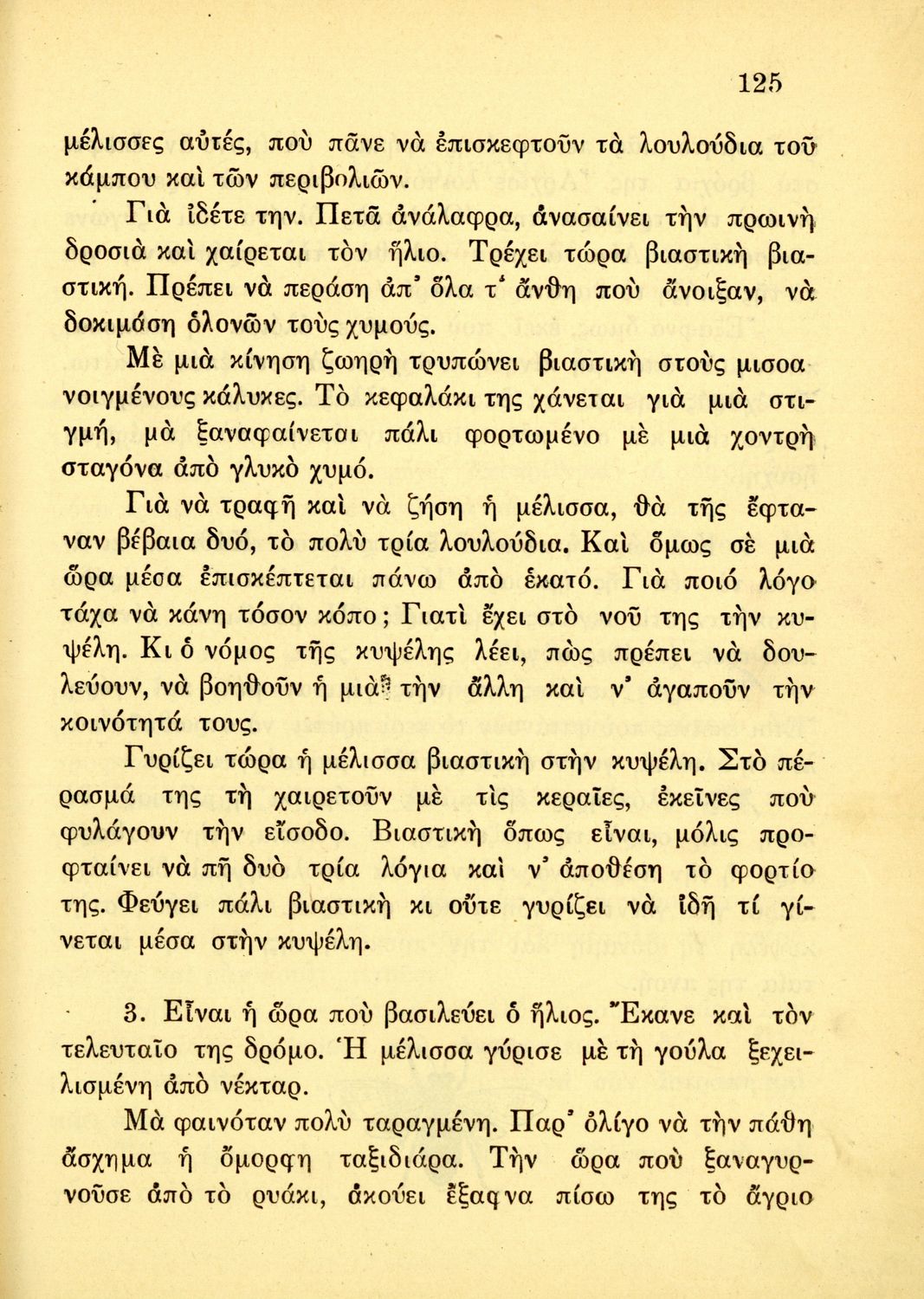 Αναγνωστικό Γ΄ Δημοτικού που περιλαμβάνει ποιήματα και πεζά εμπνευσμένα από τη ζωή της υπαίθρου, την οικογενειακή και κοινωνική ζωή και το εθνικό παρελθόν. Αποτυπώνει τις ιδεολογικές προκείμενες του μεταξικού ...