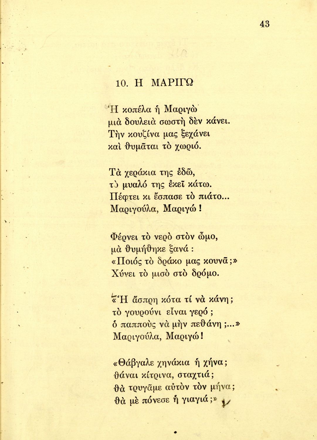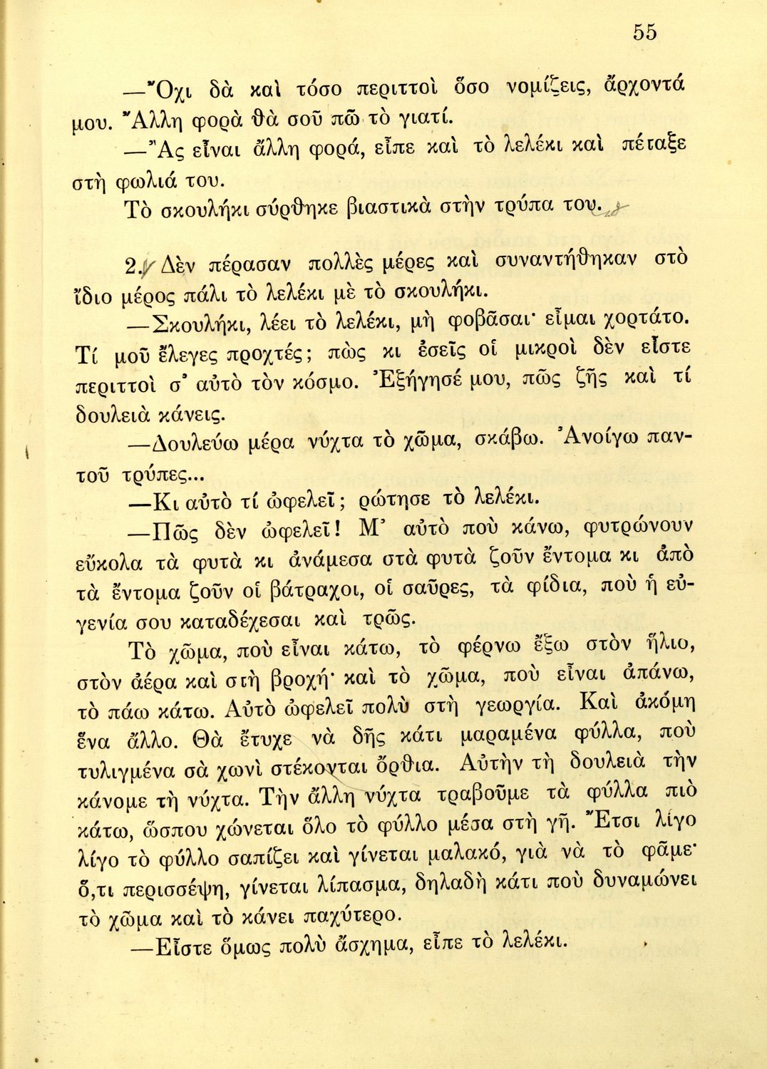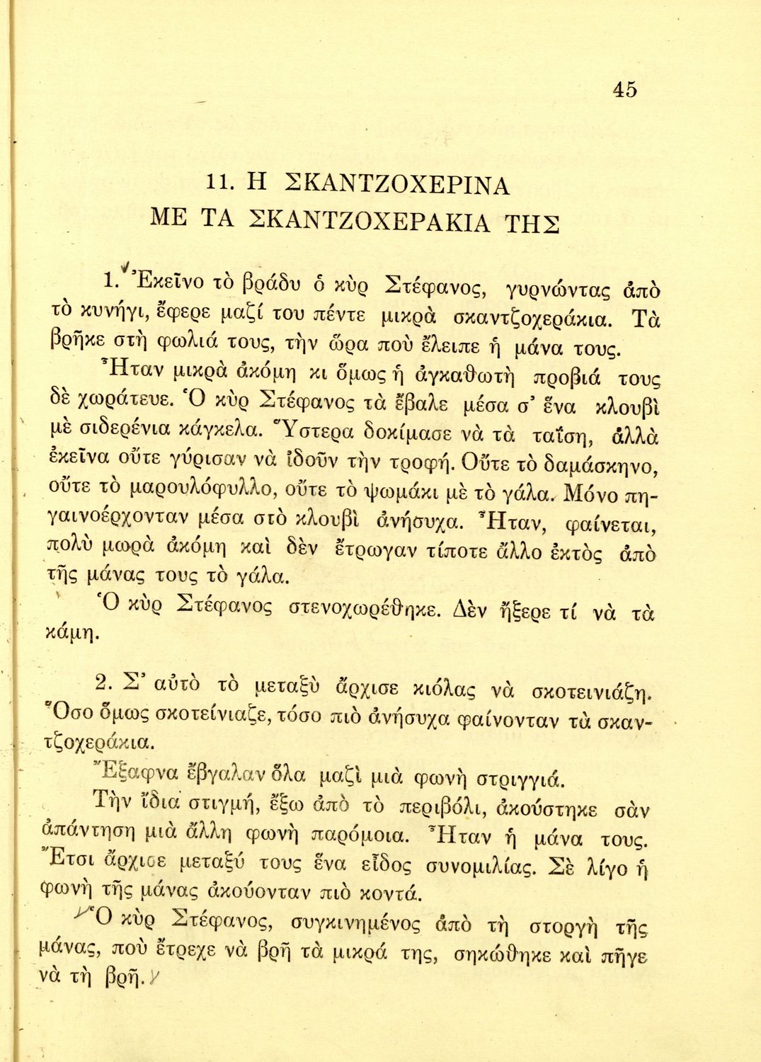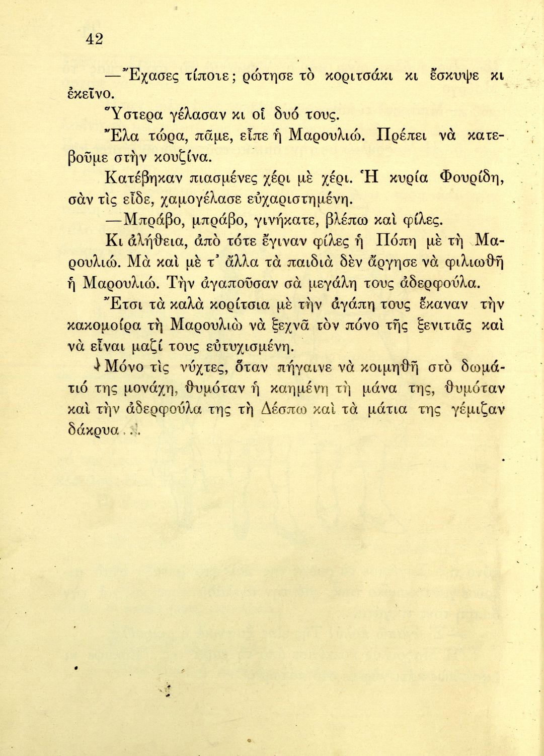 Αναγνωστικό Δ΄ Δημοτικού που περιέχει κείμενα εμπνευσμένα από την ζωή στην ύπαιθρο, την οικογενειακή ζωή, την αγάπη για τα ζώα, τη θρησκευτική παράδοση, την κοινωνική ζωή, την εθνική ζωή και προσήλωση στα εθνικά σύμβολα. 'Όντας σχολικό βιβλίο του μεταξικού καθεστώτος περιέχει χαρακτηριστικά δείγματα της μεταξικής προπαγάνδας και λογικής που παρουσιάζουν τον Ι. Μεταξά, ως μάγο, αρχηγό και κυβερνήτη της Ελλάδας. Όπως όλα τα βιβλία του καθεστώτος φέρει τη ρήση του Μεταξά "Είστε Ελληνόπουλα και είναι μεγάλο πράγμα να είναι κανείς Έλλην".