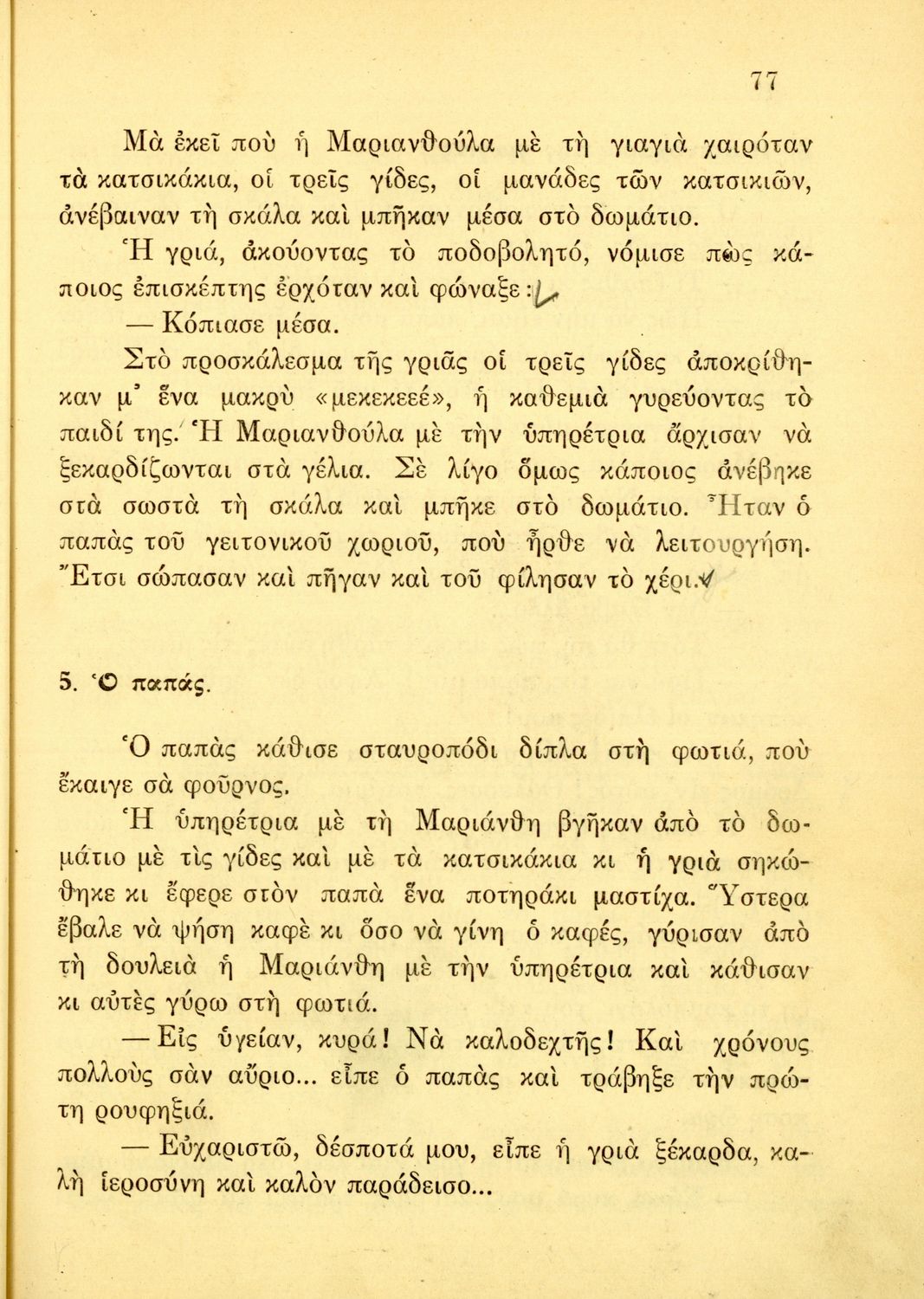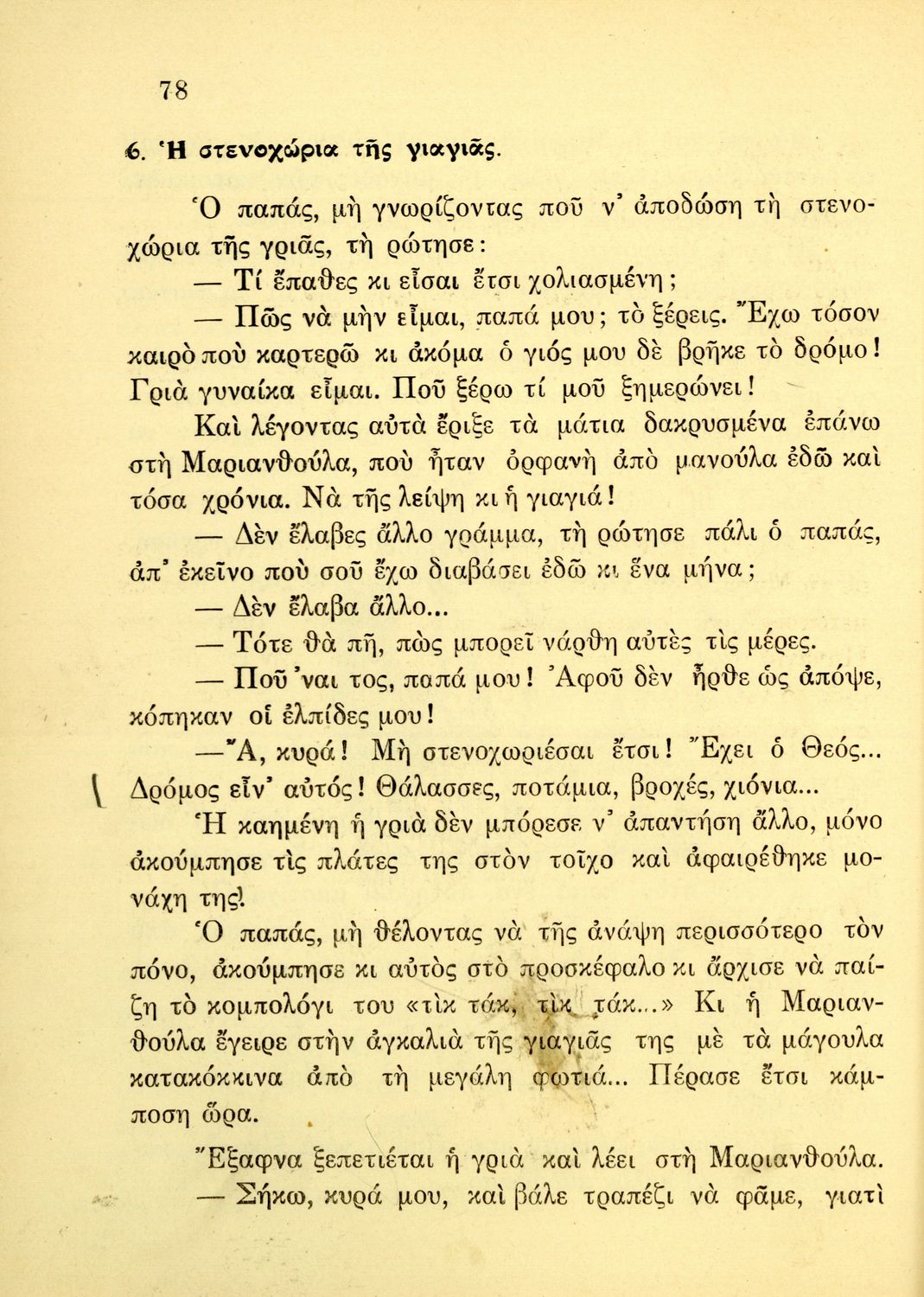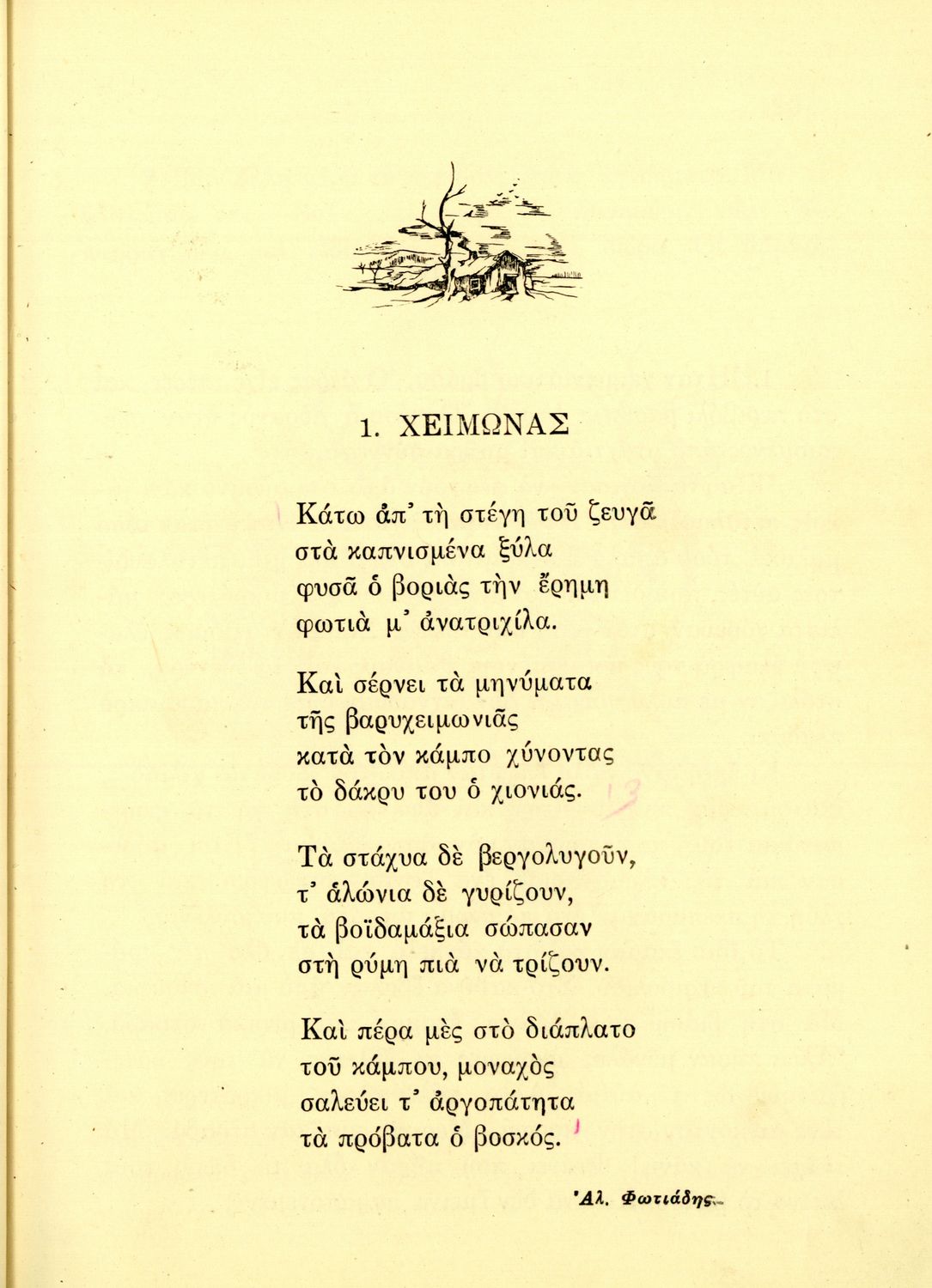 Αναγνωστικό Δ΄ Δημοτικού που περιέχει κείμενα εμπνευσμένα από την ζωή στην ύπαιθρο, την οικογενειακή ζωή, την αγάπη για τα ζώα, τη θρησκευτική παράδοση, την κοινωνική ζωή, την εθνική ζωή και προσήλωση στα εθνικά σύμβολα. 'Όντας σχολικό βιβλίο του μεταξικού καθεστώτος περιέχει χαρακτηριστικά δείγματα της μεταξικής προπαγάνδας και λογικής που παρουσιάζουν τον Ι. Μεταξά, ως μάγο, αρχηγό και κυβερνήτη της Ελλάδας. Όπως όλα τα βιβλία του καθεστώτος φέρει τη ρήση του Μεταξά "Είστε Ελληνόπουλα και είναι μεγάλο πράγμα να είναι κανείς Έλλην".