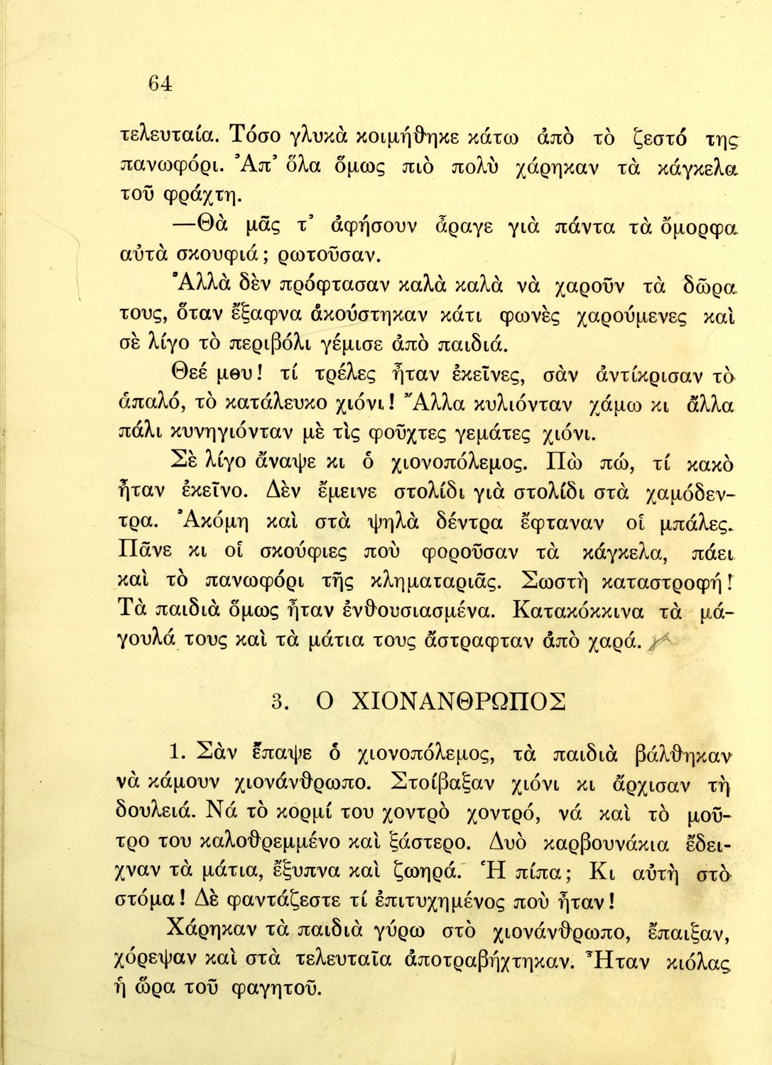 Αναγνωστικό Γ΄ Δημοτικού που περιλαμβάνει ποιήματα και πεζά εμπνευσμένα από τη ζωή της υπαίθρου, την οικογενειακή και κοινωνική ζωή και το εθνικό παρελθόν. Αποτυπώνει τις ιδεολογικές προκείμενες του μεταξικού ...
