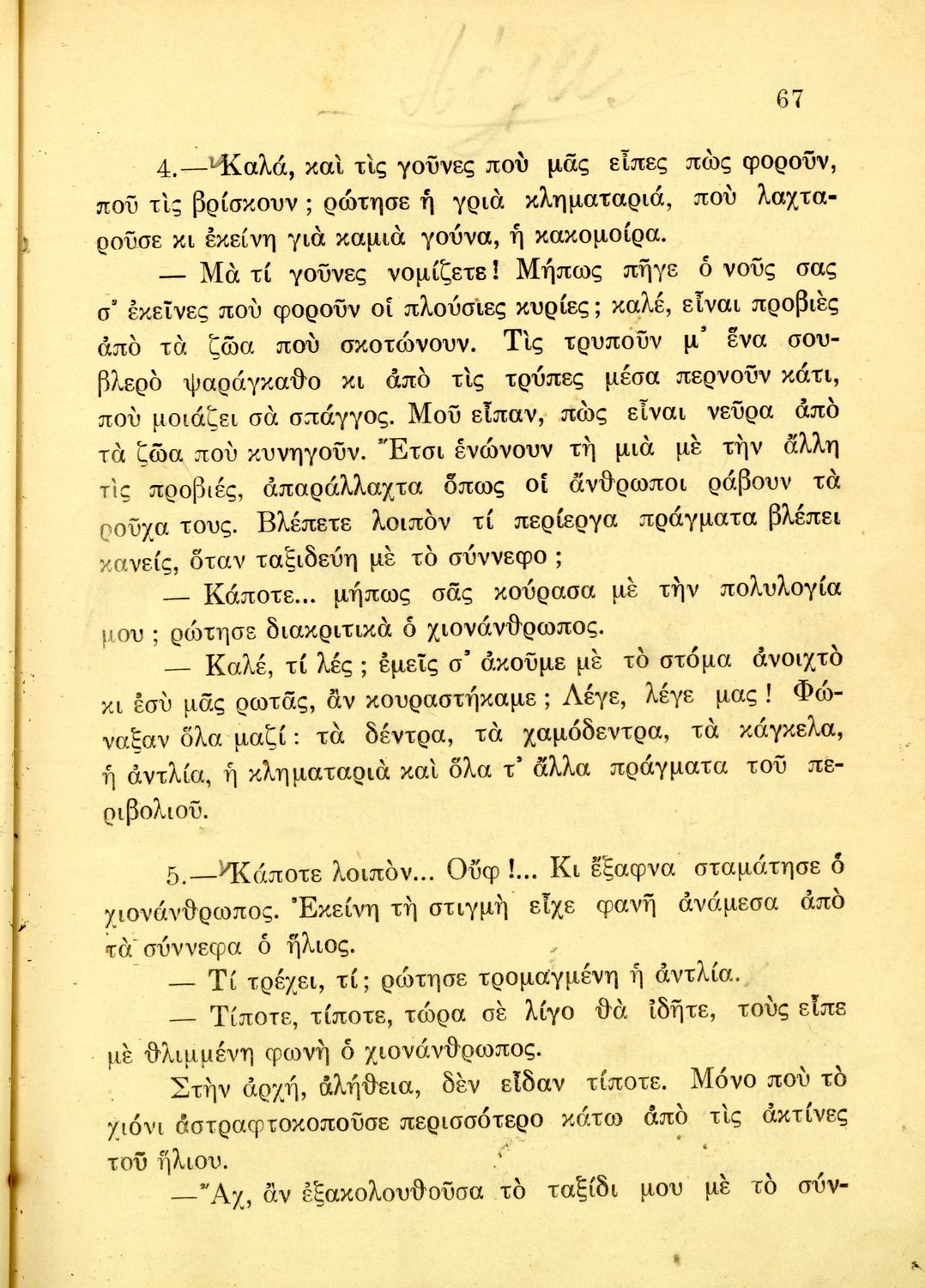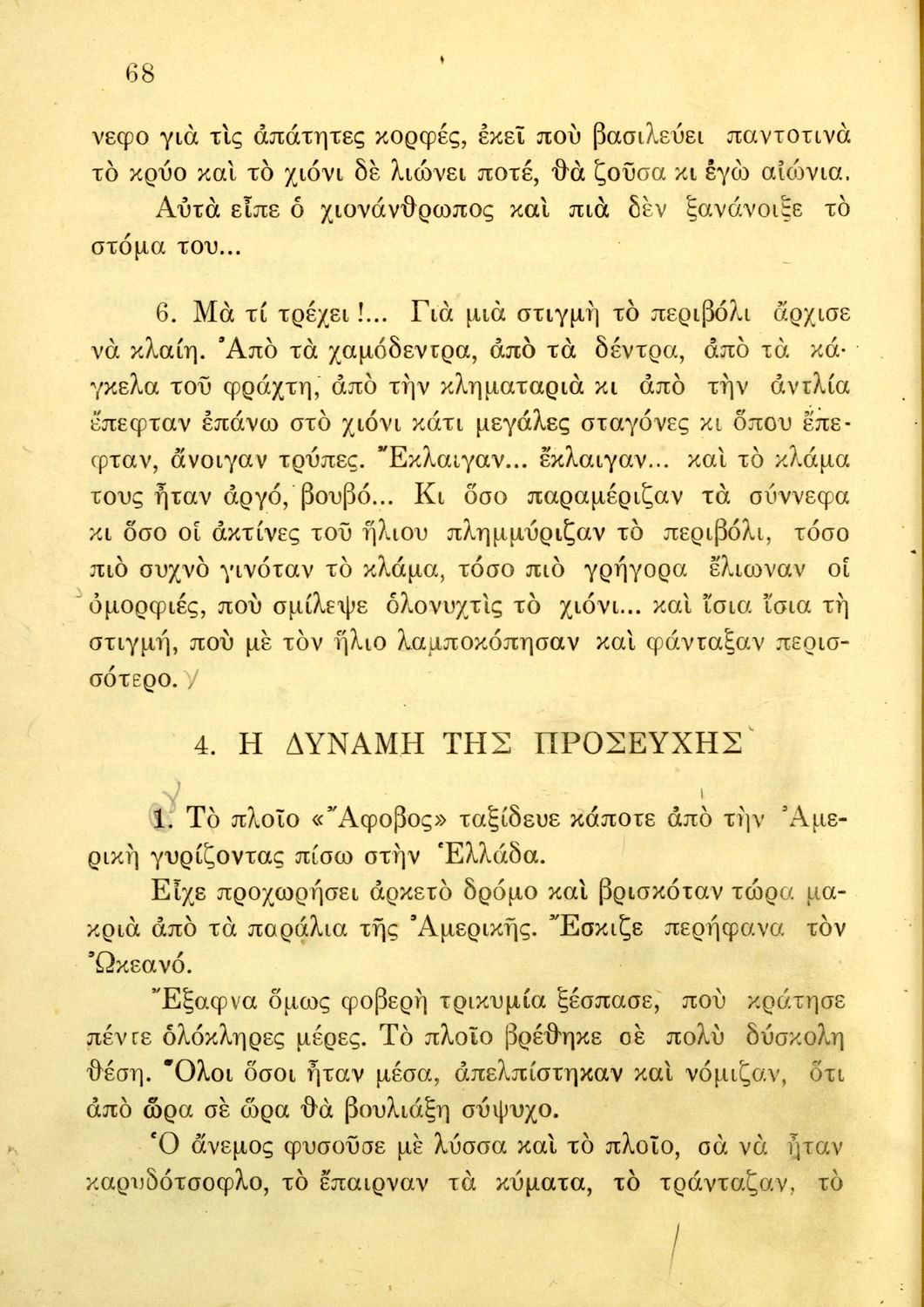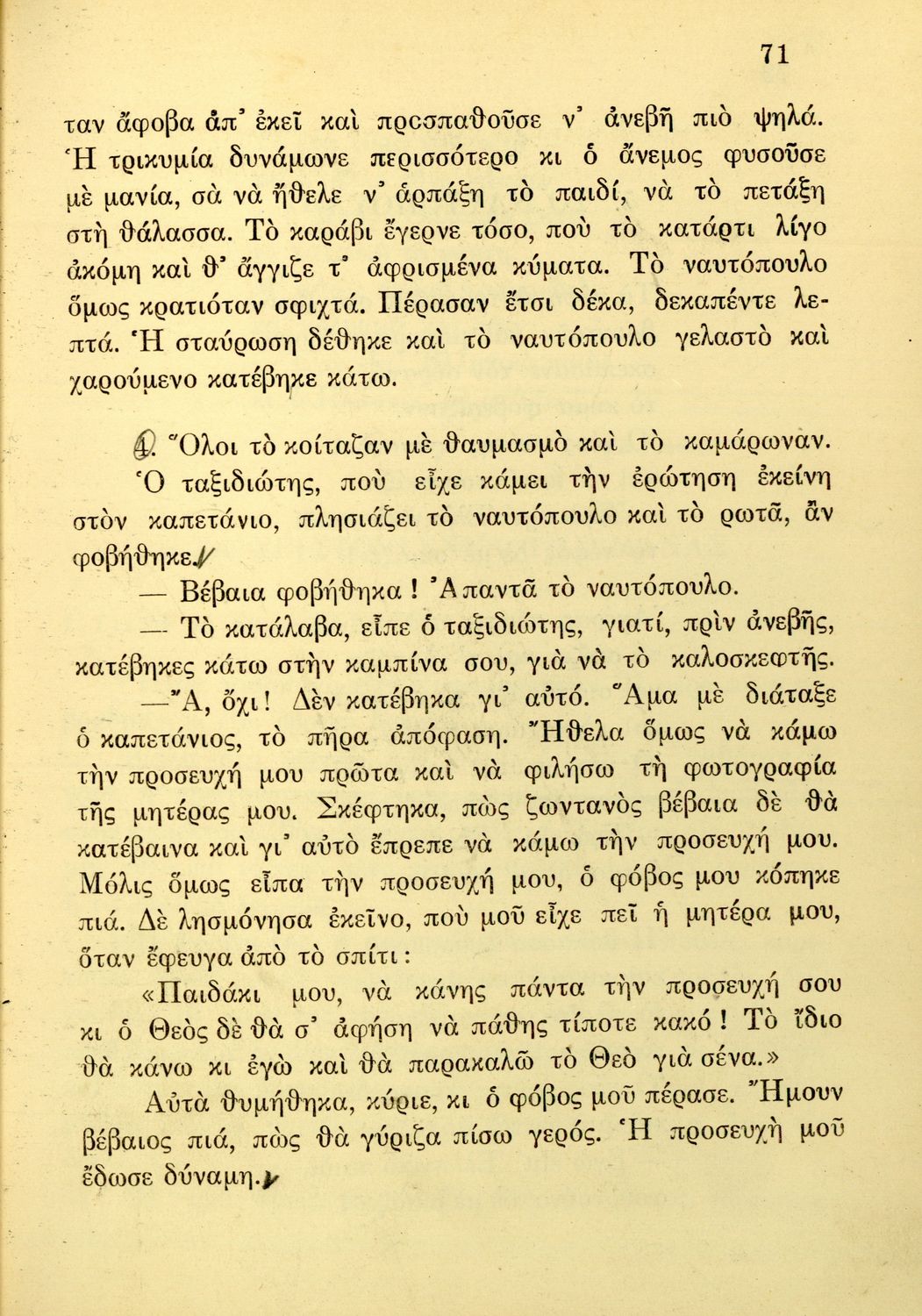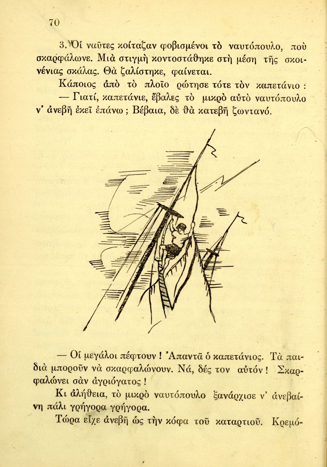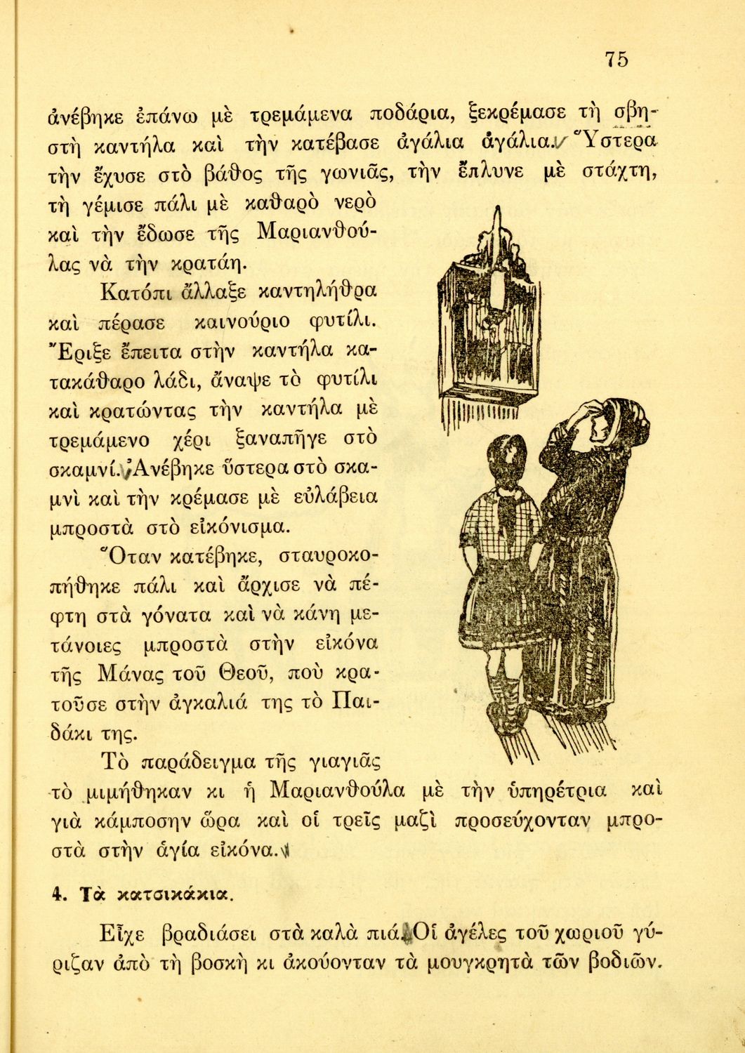 Αναγνωστικό Δ΄ Δημοτικού που περιλαμβάνει θέματα από την θρησκευτική, οικογενειακή και σχολική ζωή του παιδιού, την ελληνική μυθολογία και ιστορία και τη ζωή των ζώων.