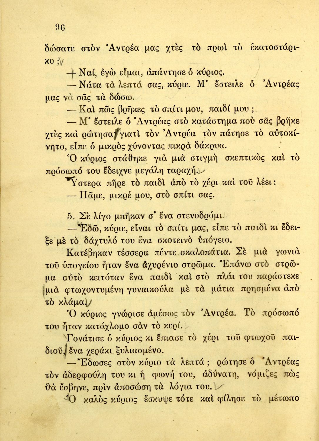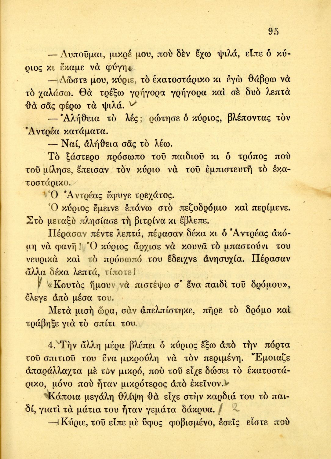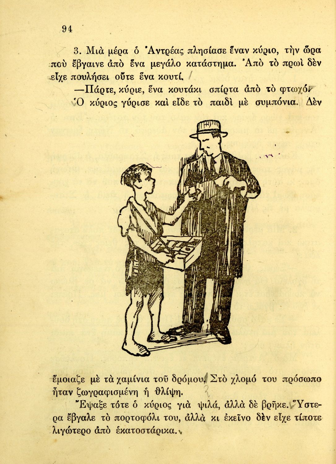 Αναγνωστικό Δ΄ Δημοτικού που περιλαμβάνει θέματα από την θρησκευτική, οικογενειακή και σχολική ζωή του παιδιού, την ελληνική μυθολογία και ιστορία και τη ζωή των ζώων.