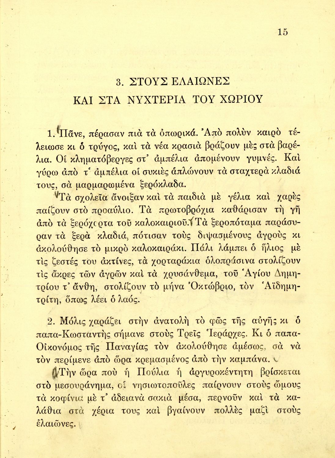 Αναγνωστικό Γ΄ Δημοτικού που περιλαμβάνει ποιήματα και πεζά εμπνευσμένα από τη ζωή της υπαίθρου, την οικογενειακή και κοινωνική ζωή και το εθνικό παρελθόν. Αποτυπώνει τις ιδεολογικές προκείμενες του μεταξικού ...