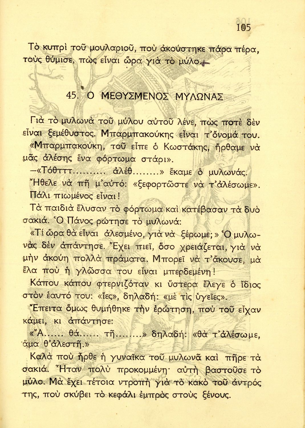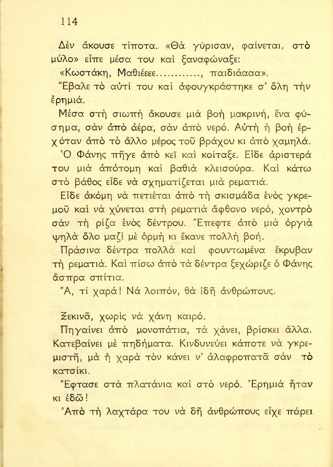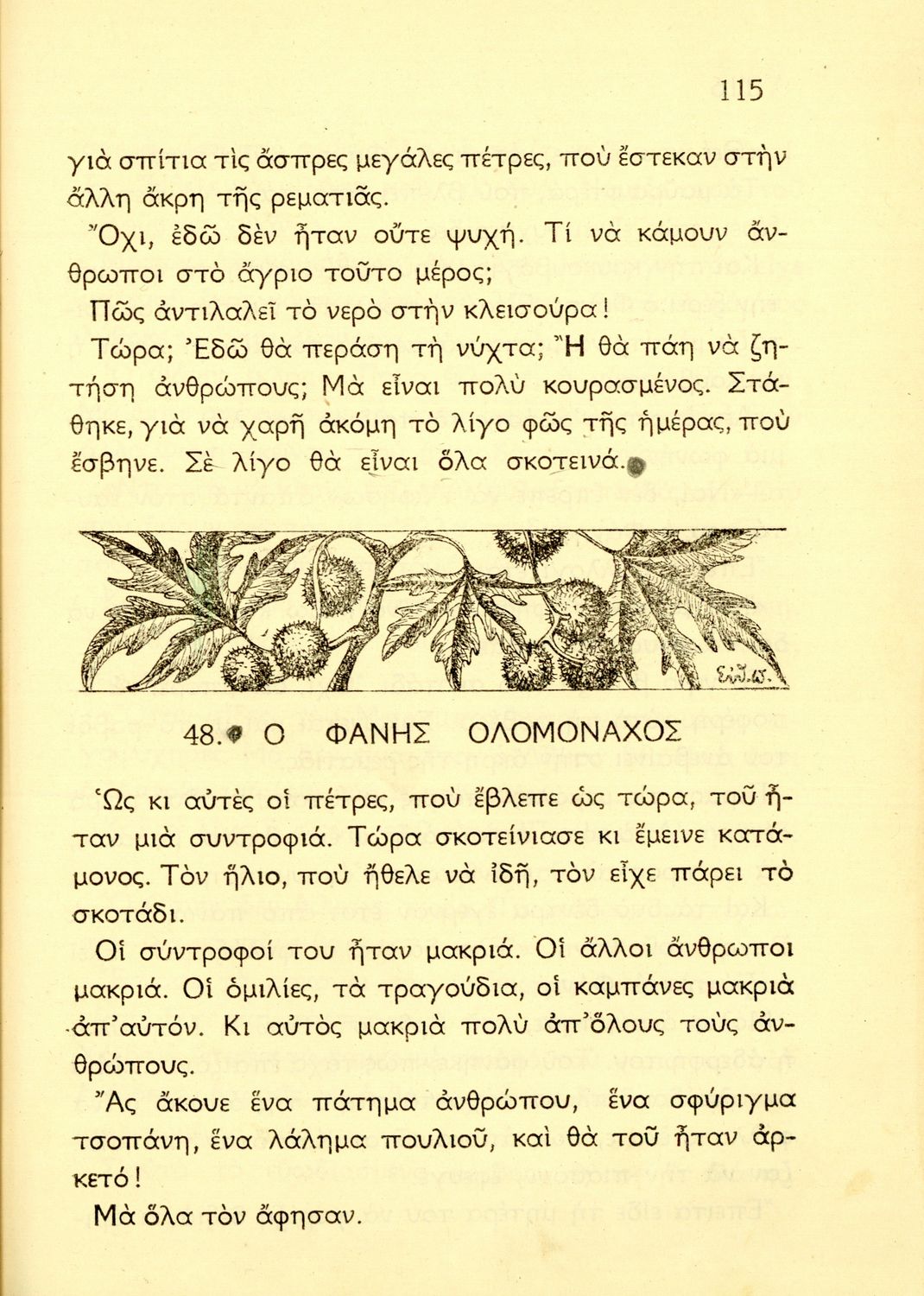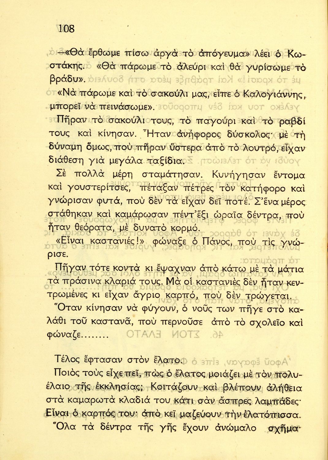 Αναγνωστικό Δ΄ Δημοτικού που περιέχει πεζά και ποιήματα με περιεχόμενο διδακτικό και ηθικοπλαστικό εμπνευσμένα από την ελληνική ιστορία και μυθολογία, και την αγροτική και κοινωνική ζωή.