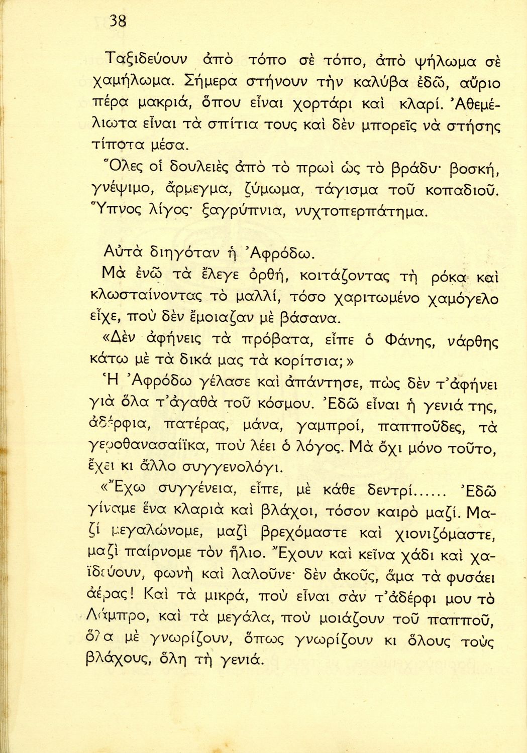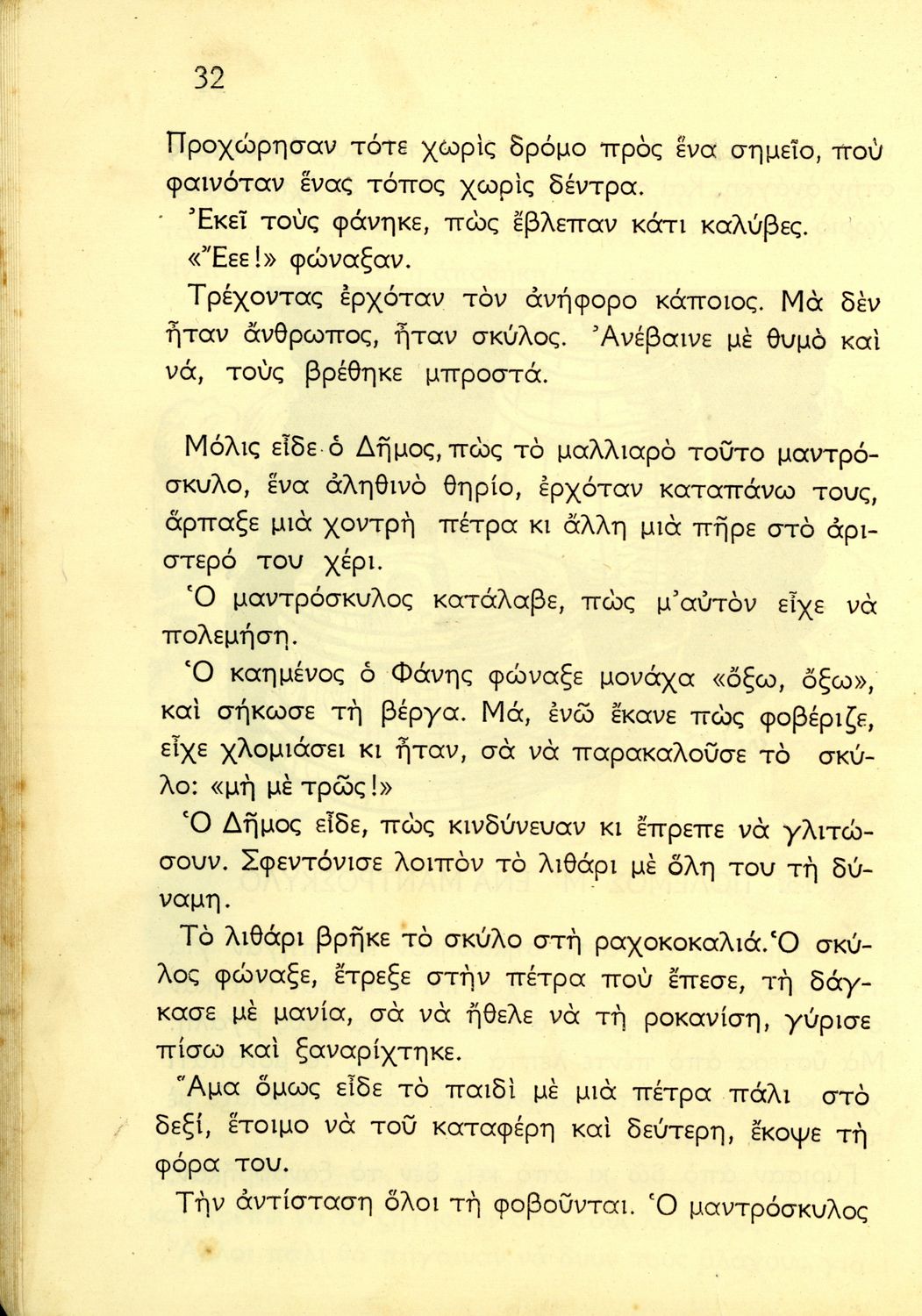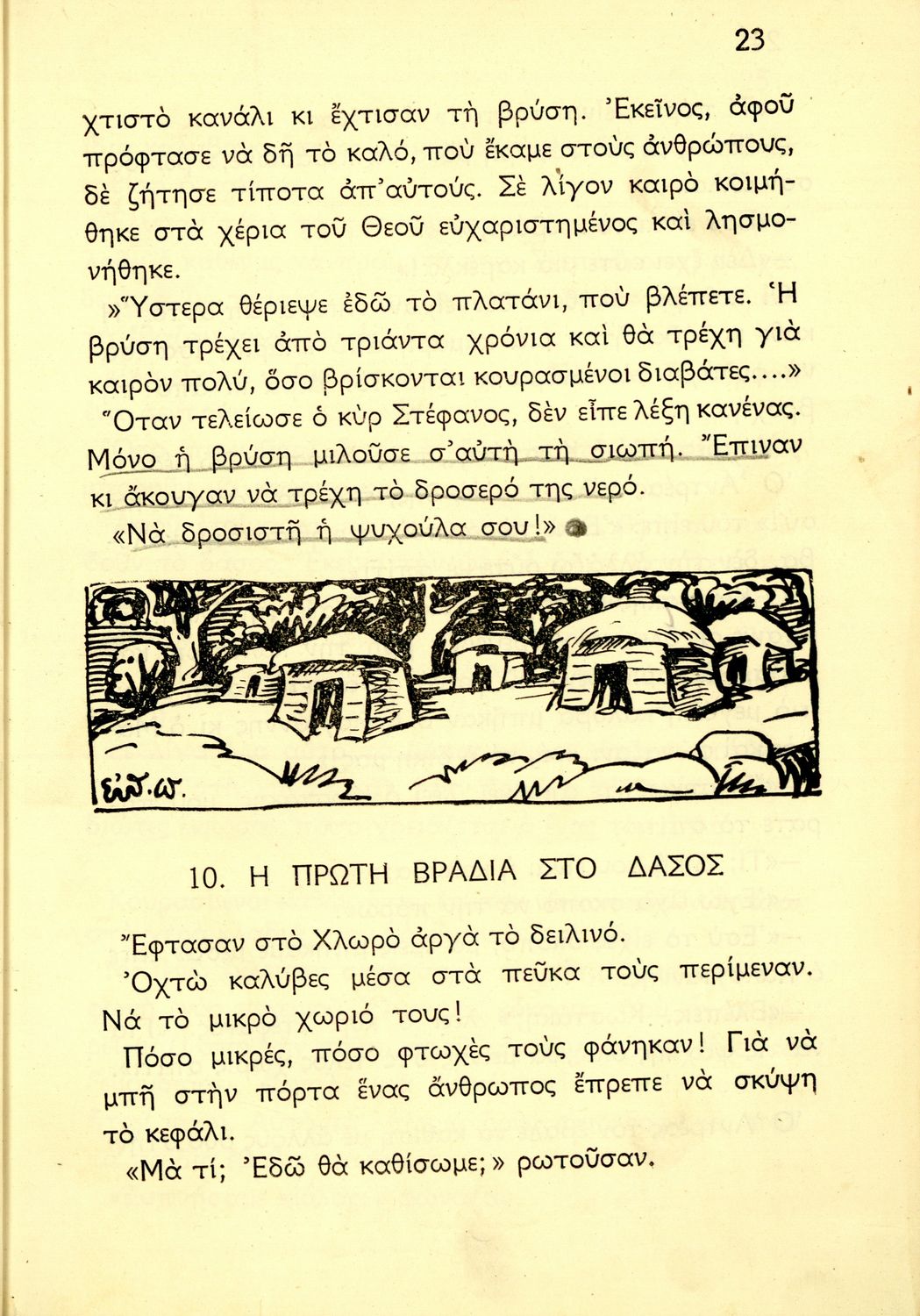 Αναγνωστικό Δ΄ Δημοτικού που περιέχει πεζά και ποιήματα με περιεχόμενο διδακτικό και ηθικοπλαστικό εμπνευσμένα από την ελληνική ιστορία και μυθολογία, και την αγροτική και κοινωνική ζωή.
