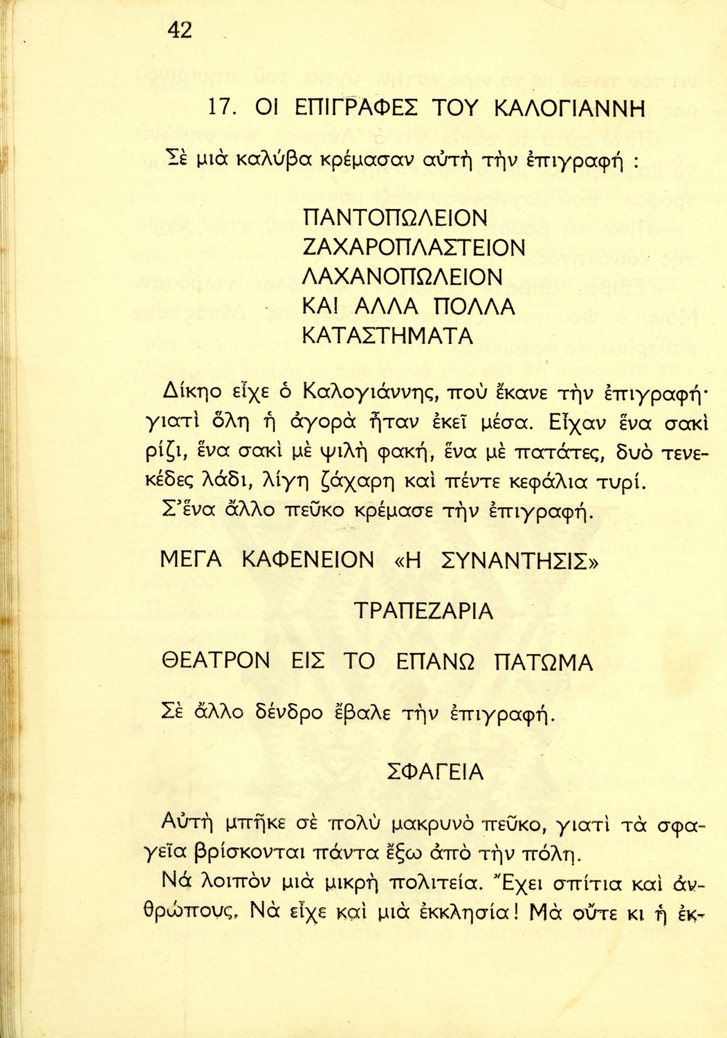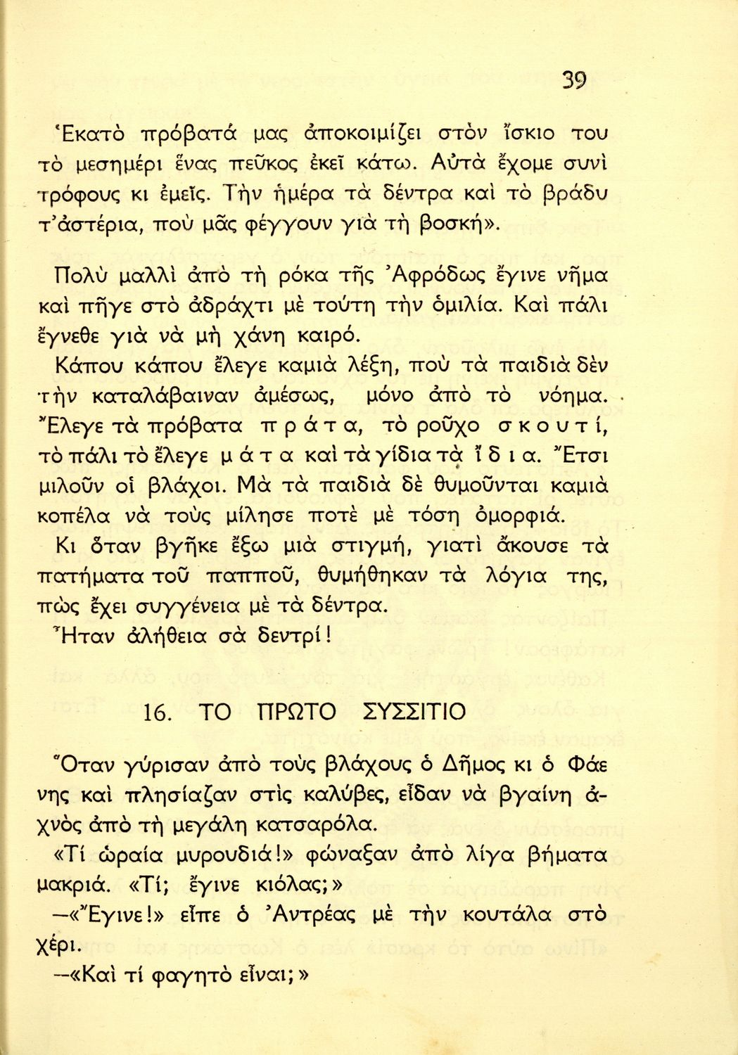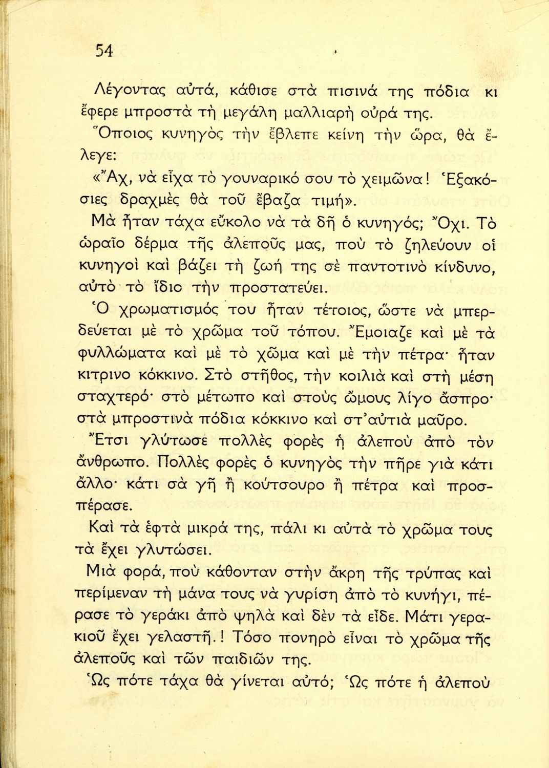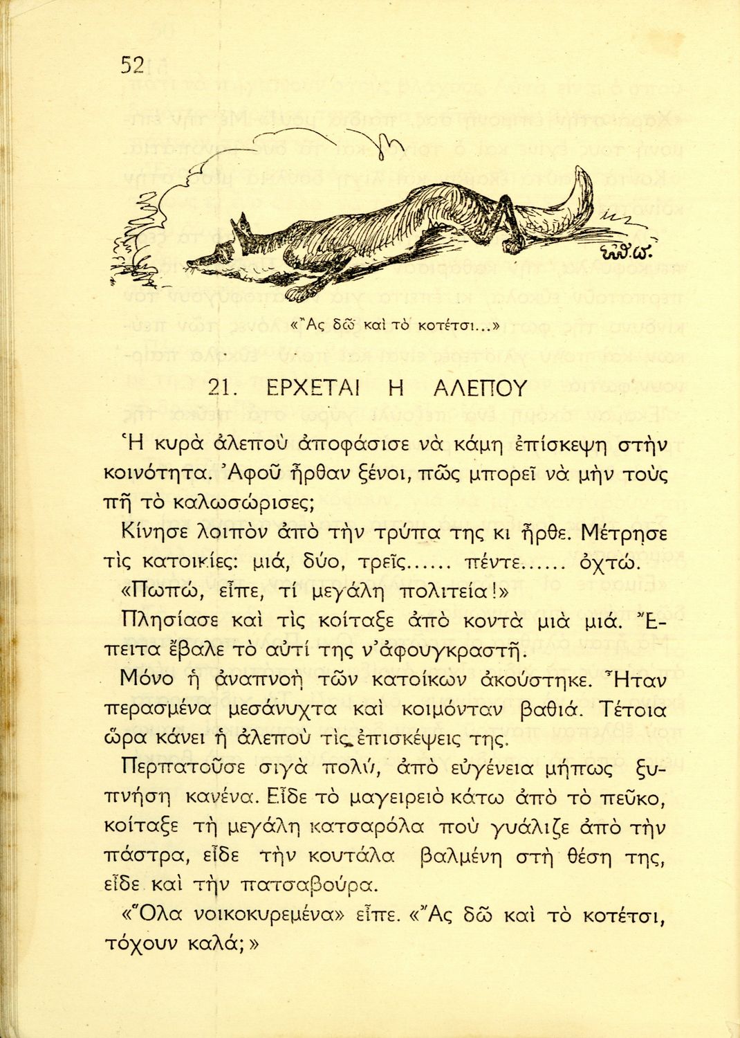 Αναγνωστικό Δ΄ Δημοτικού που περιέχει πεζά και ποιήματα με περιεχόμενο διδακτικό και ηθικοπλαστικό εμπνευσμένα από την ελληνική ιστορία και μυθολογία, και την αγροτική και κοινωνική ζωή.
