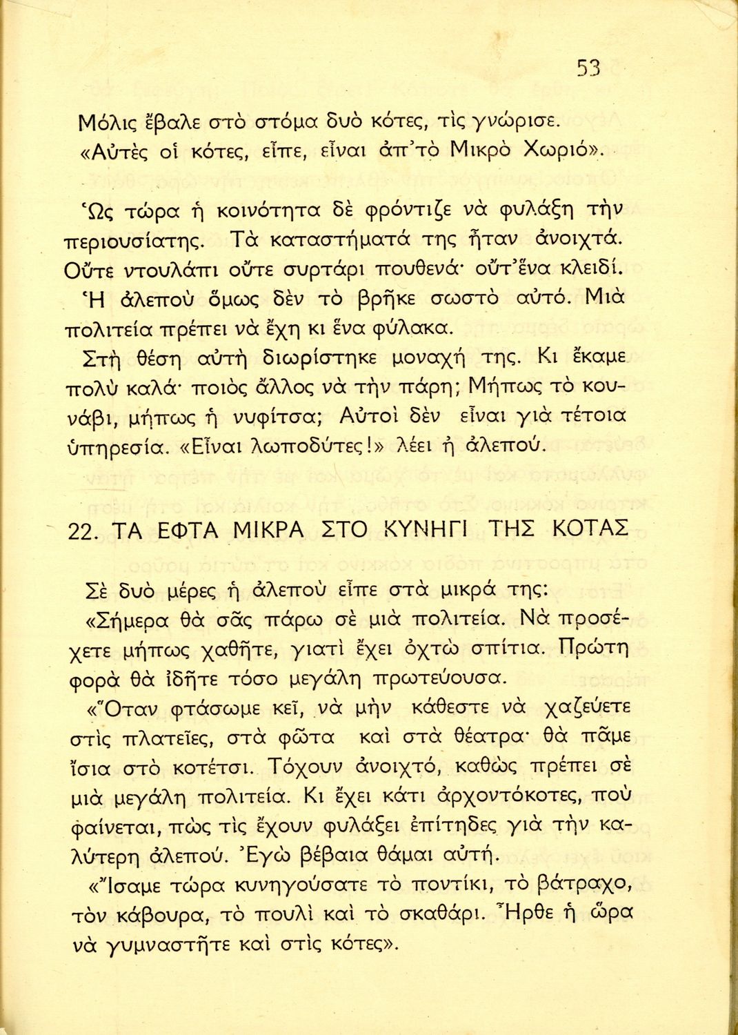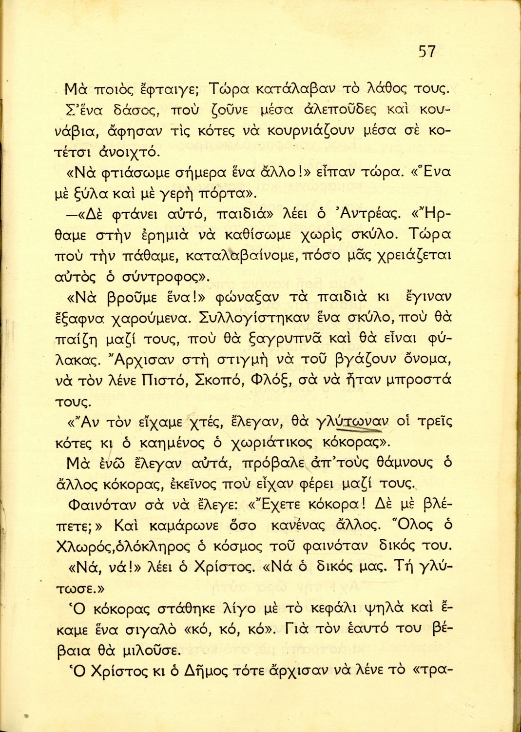 Αναγνωστικό για την Γ΄ Δημοτικού. Περιλαμβάνει μια αφηγηματική ιστορία, η οποία εμπεριέχει ηθικά διδάγματα για την ηθικοπλαστική καλλιέργεια των μαθητών. Η γλώσσα είναι δημοτική και το ύφος απλό. Στο παράρτημα
